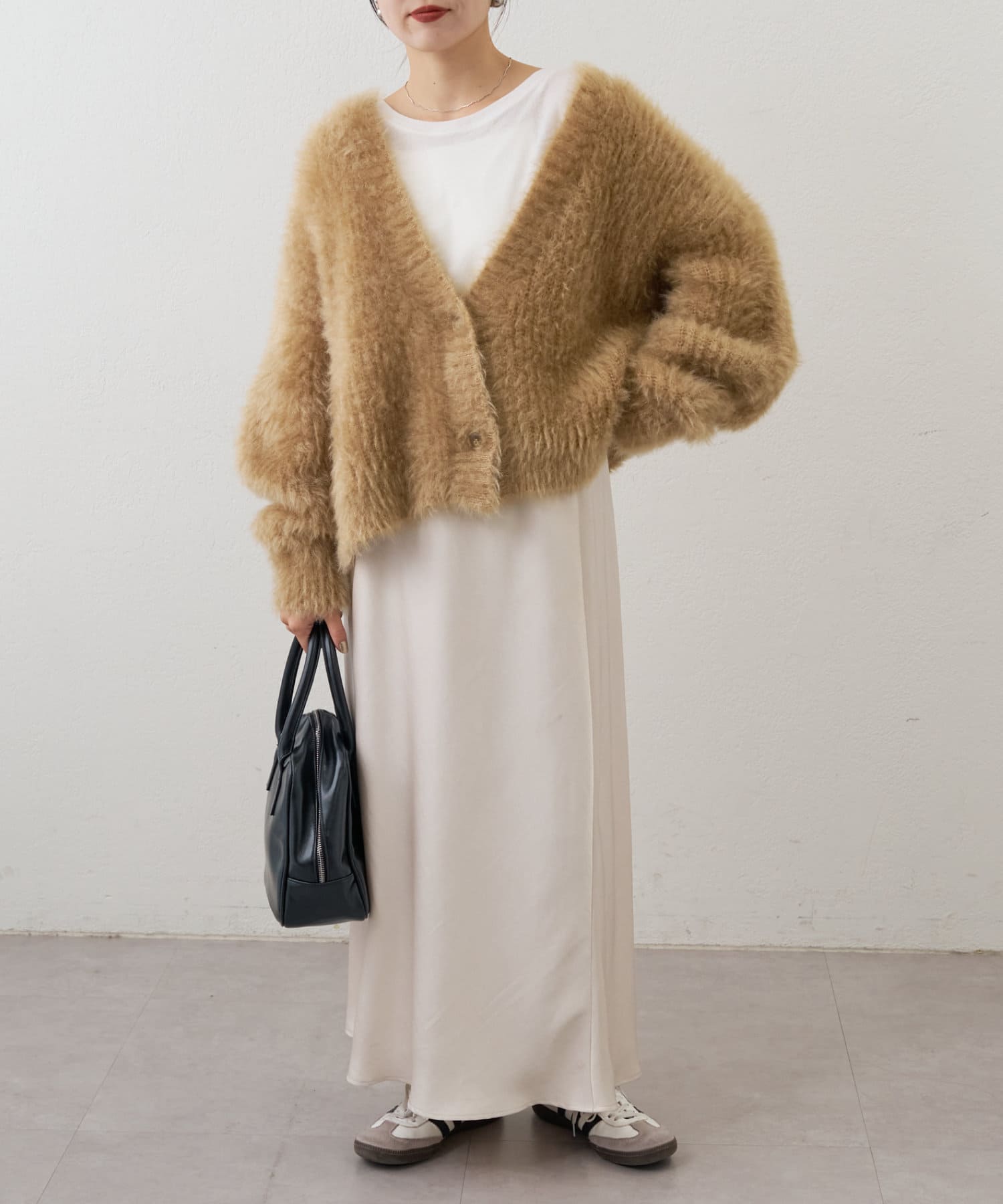 ボリューム感のあるニットともバランスよく着用でき、