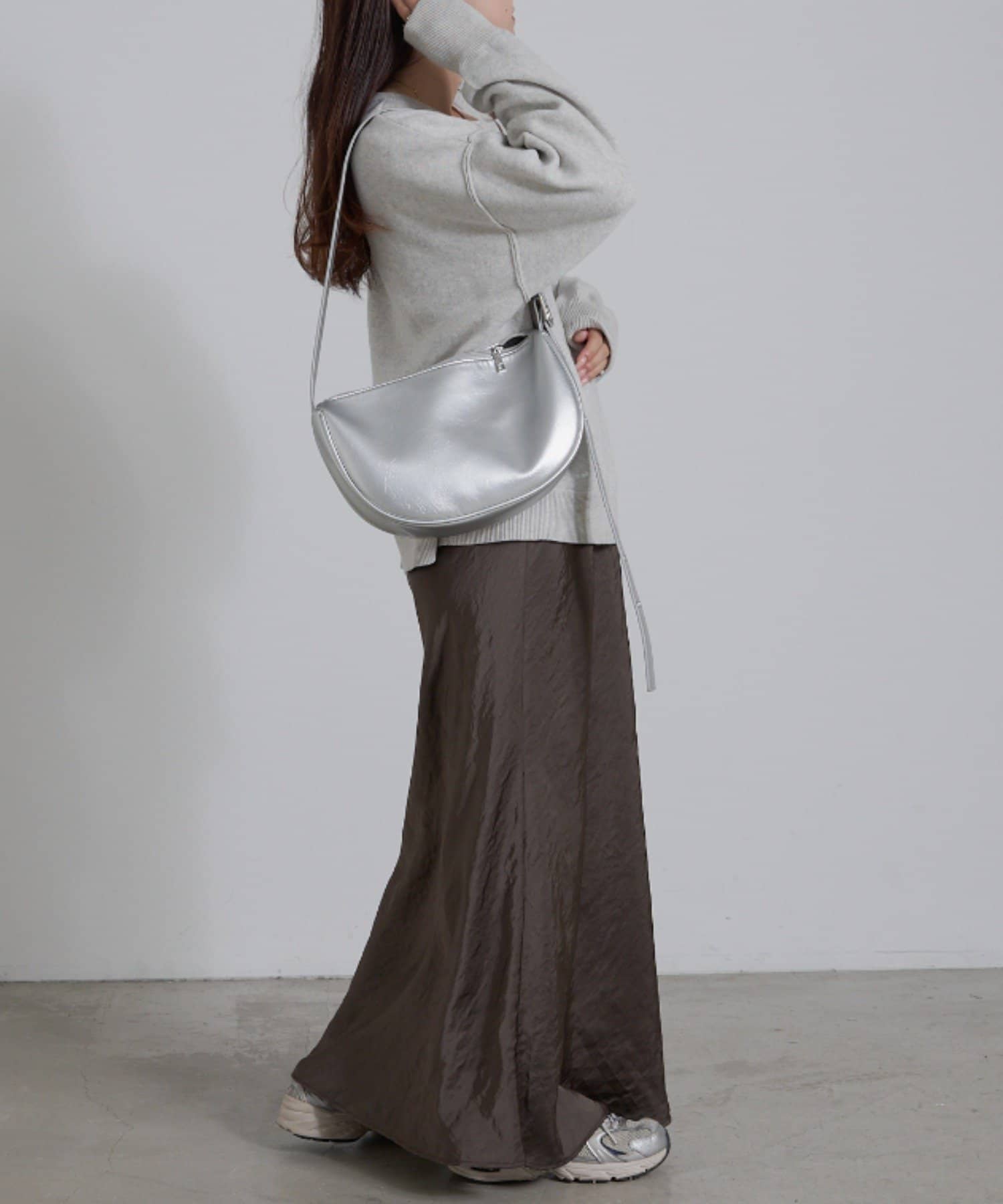 購入場所:店舗サテンスカートは生地が伸びない分大股で歩くのが難しい商品が多いですが、こちらのスカートは少しフレアになっているのでとても歩きやすいです。着痩せ効果も抜群です!