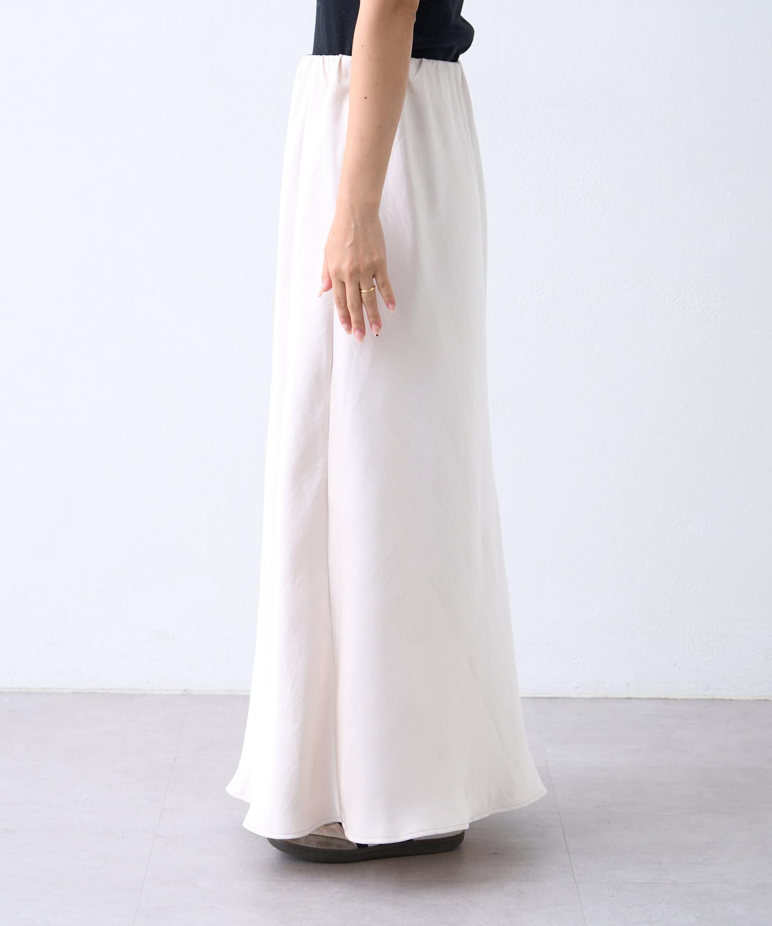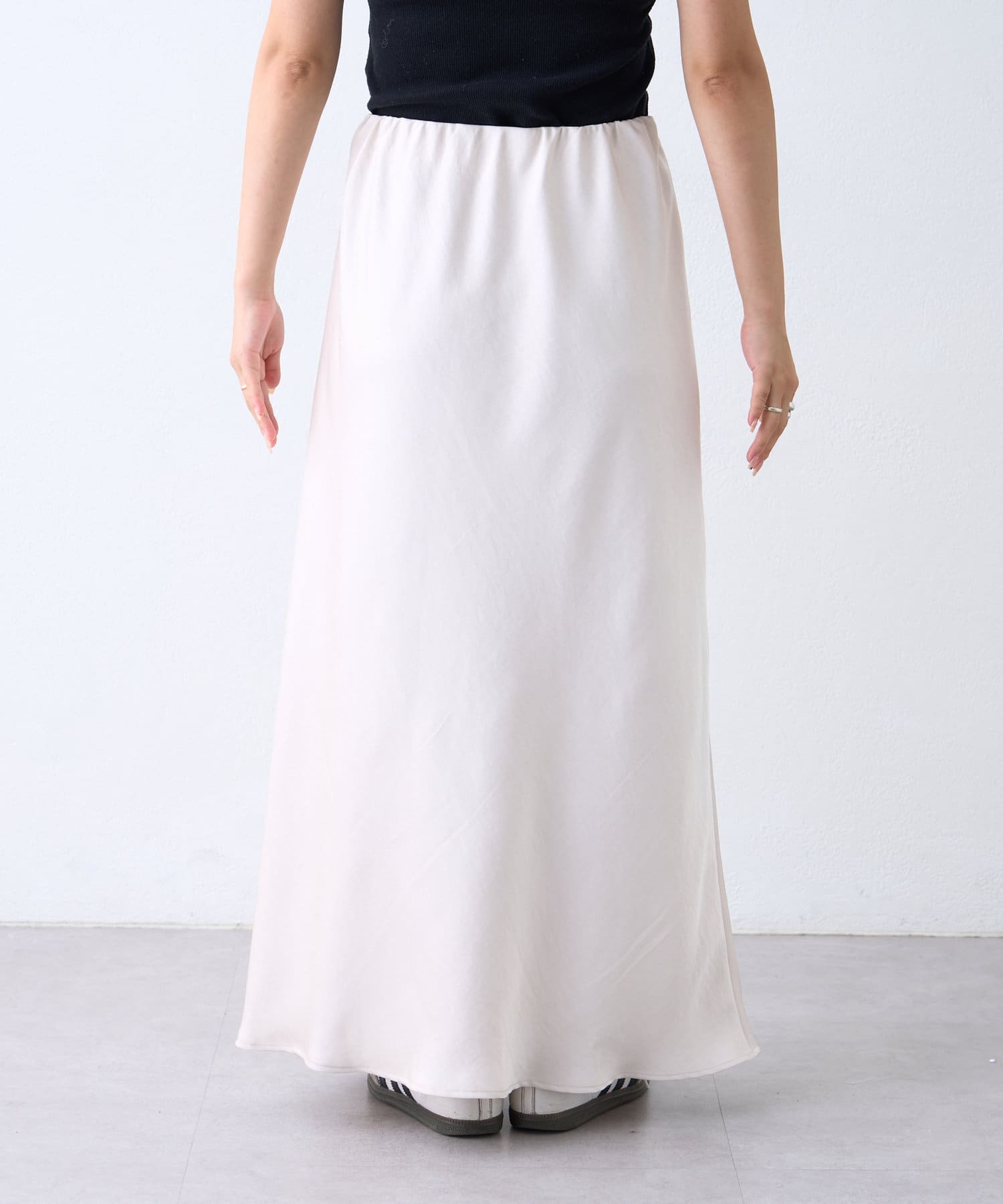上品な光沢感が魅力のサテンスカート。