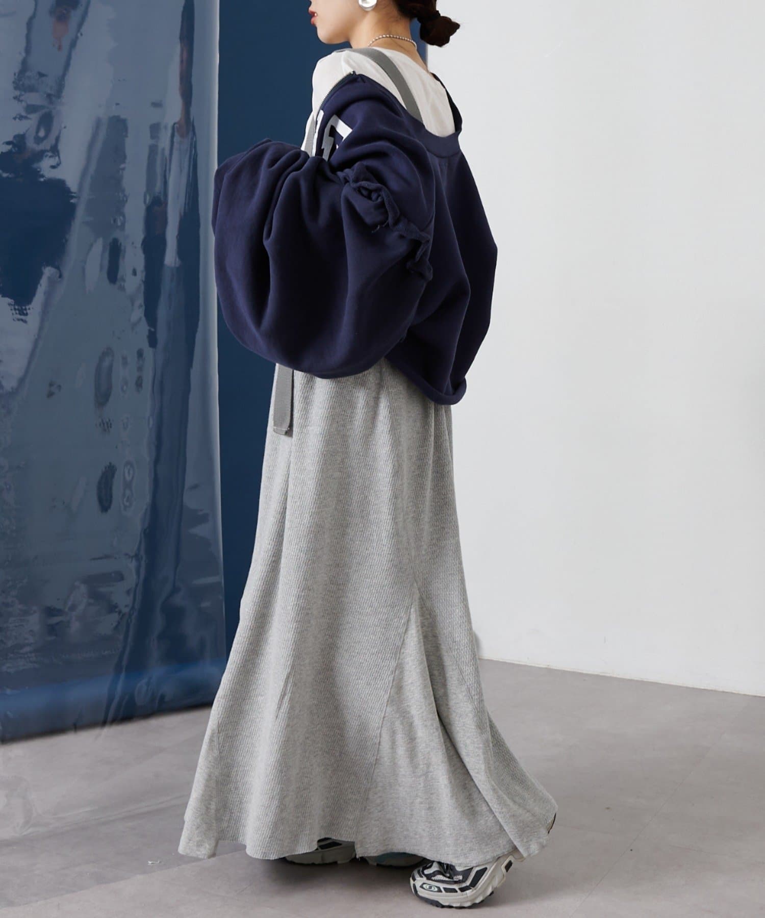 ゆったりシルエットなので、スウェットや厚みのあるアイテムとスタイリングも可能!