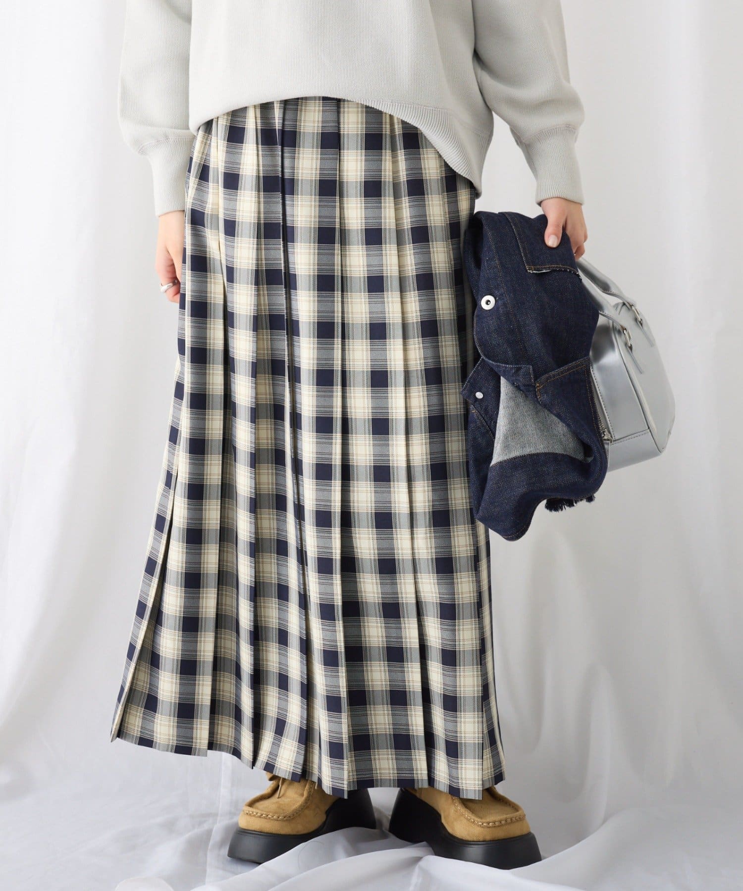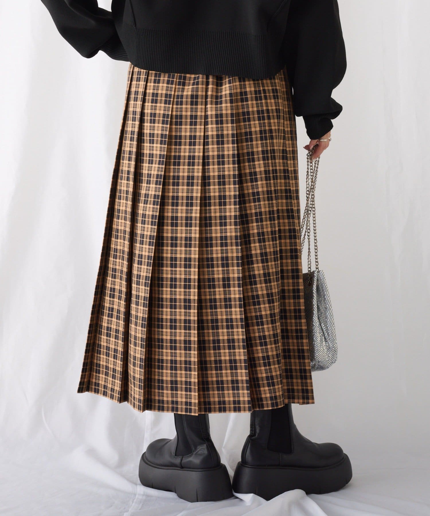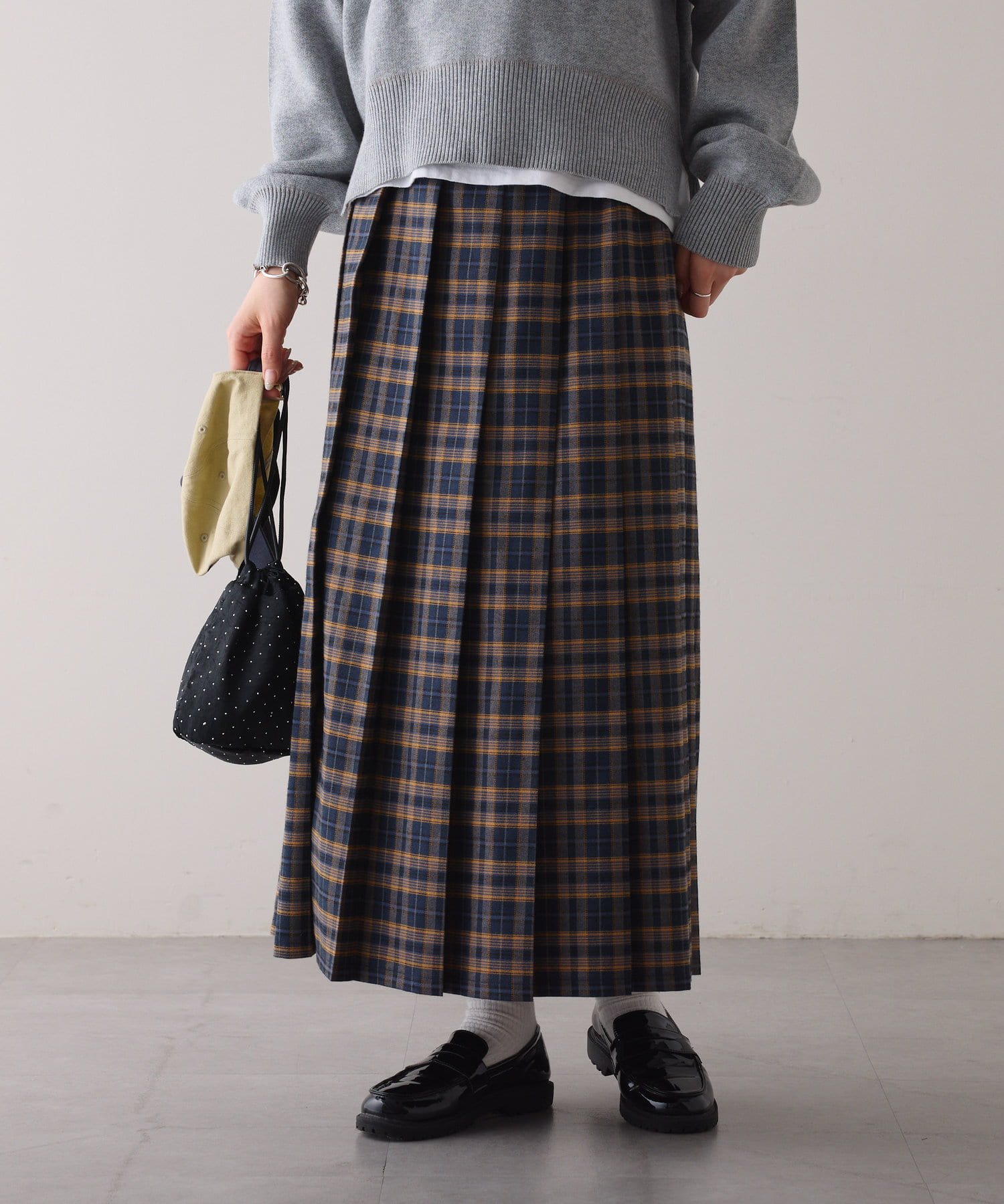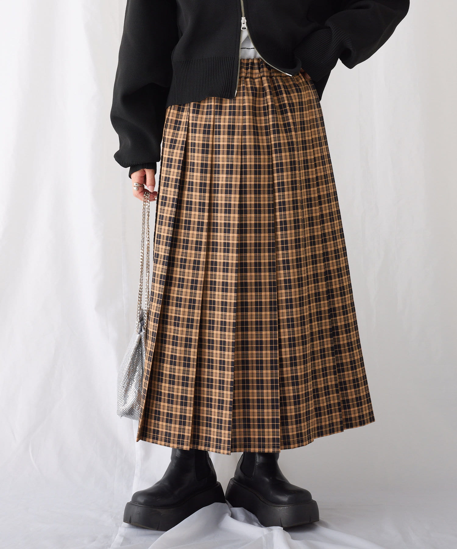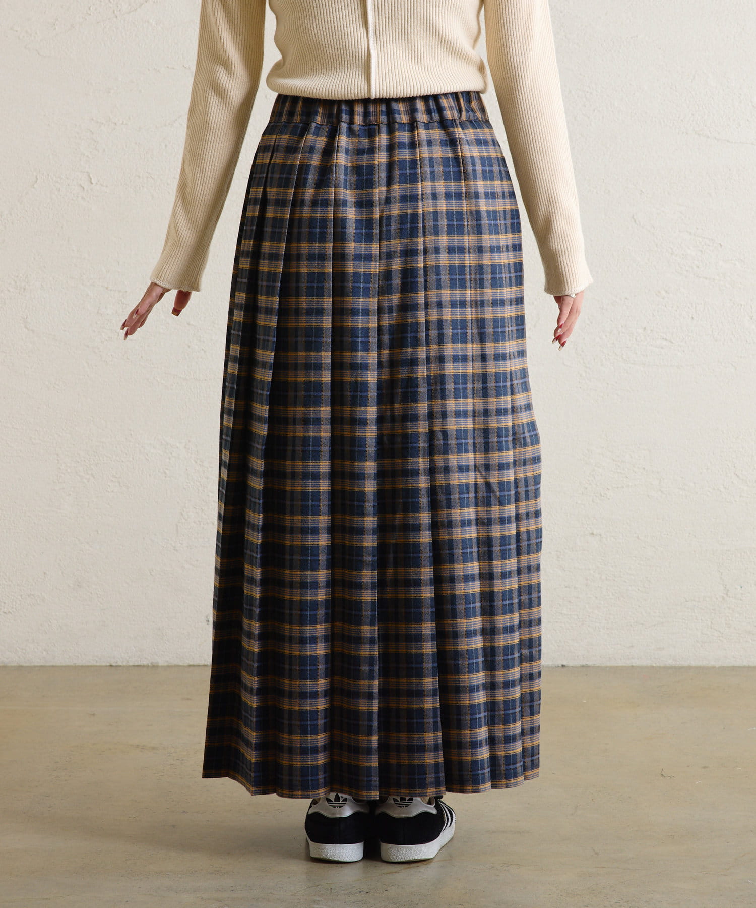 【新色登場!】すっきり見えチェックプリーツイージースカート