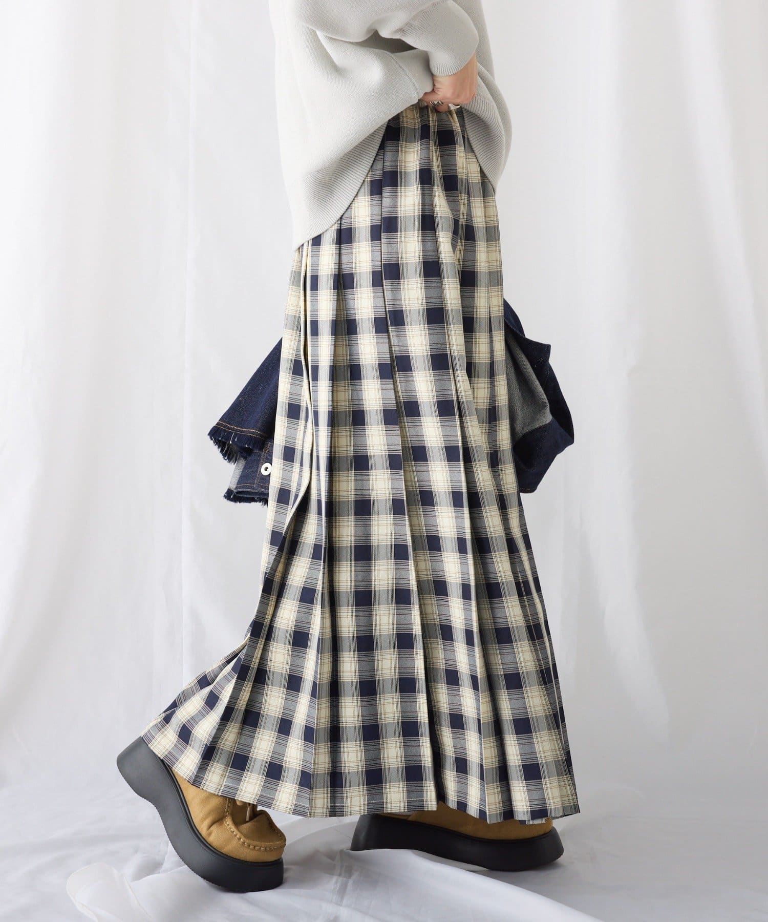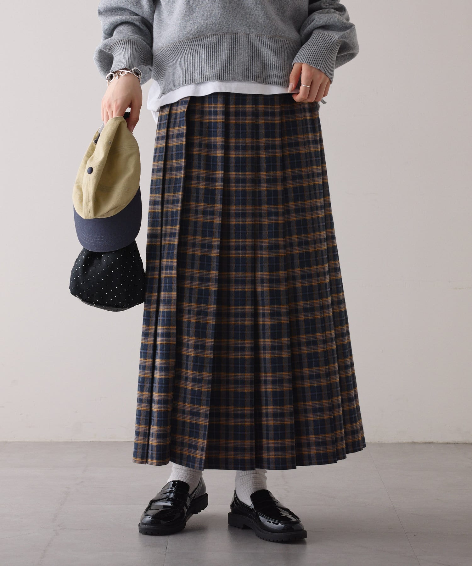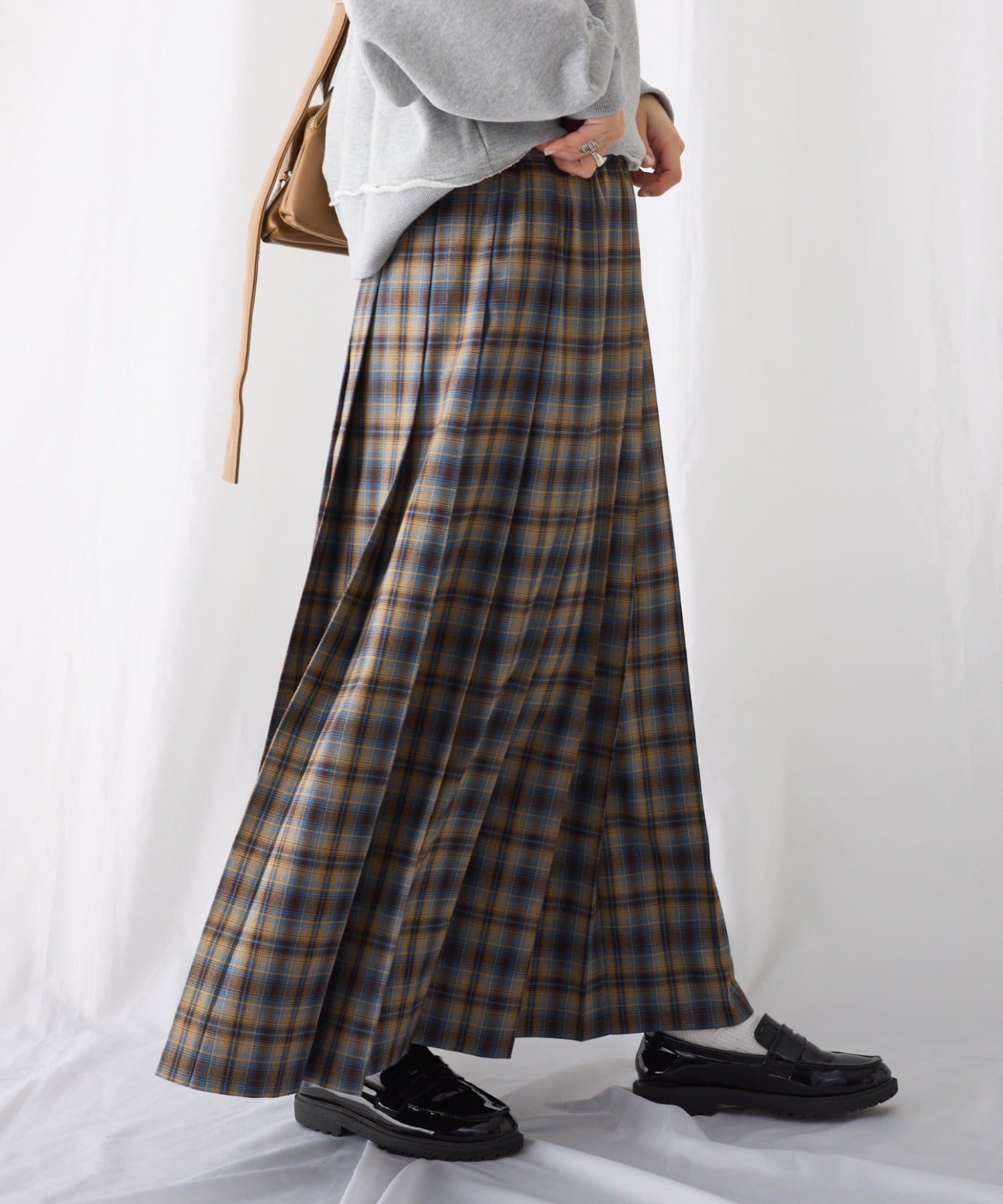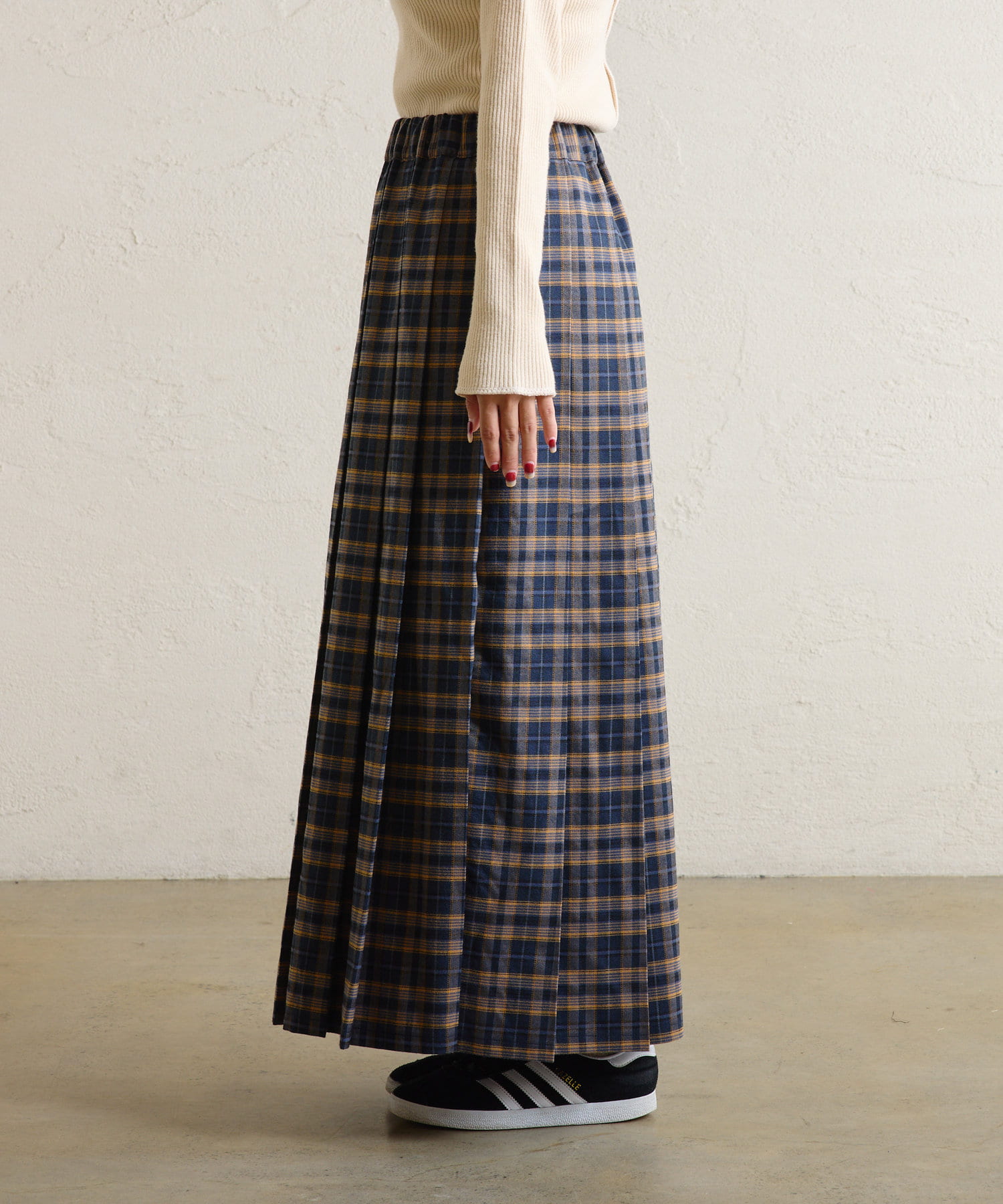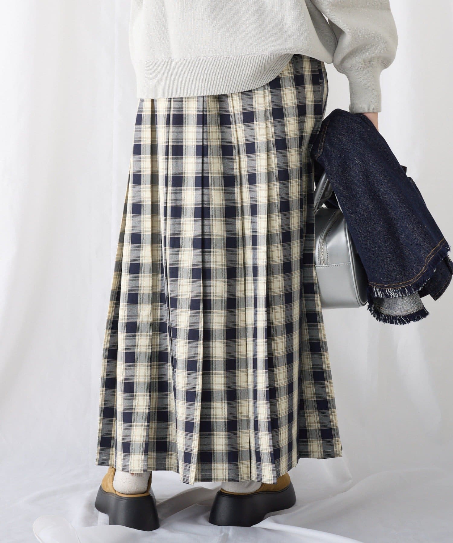 【新色登場!】すっきり見えチェックプリーツイージースカート
