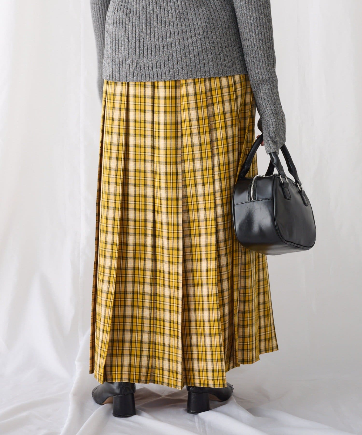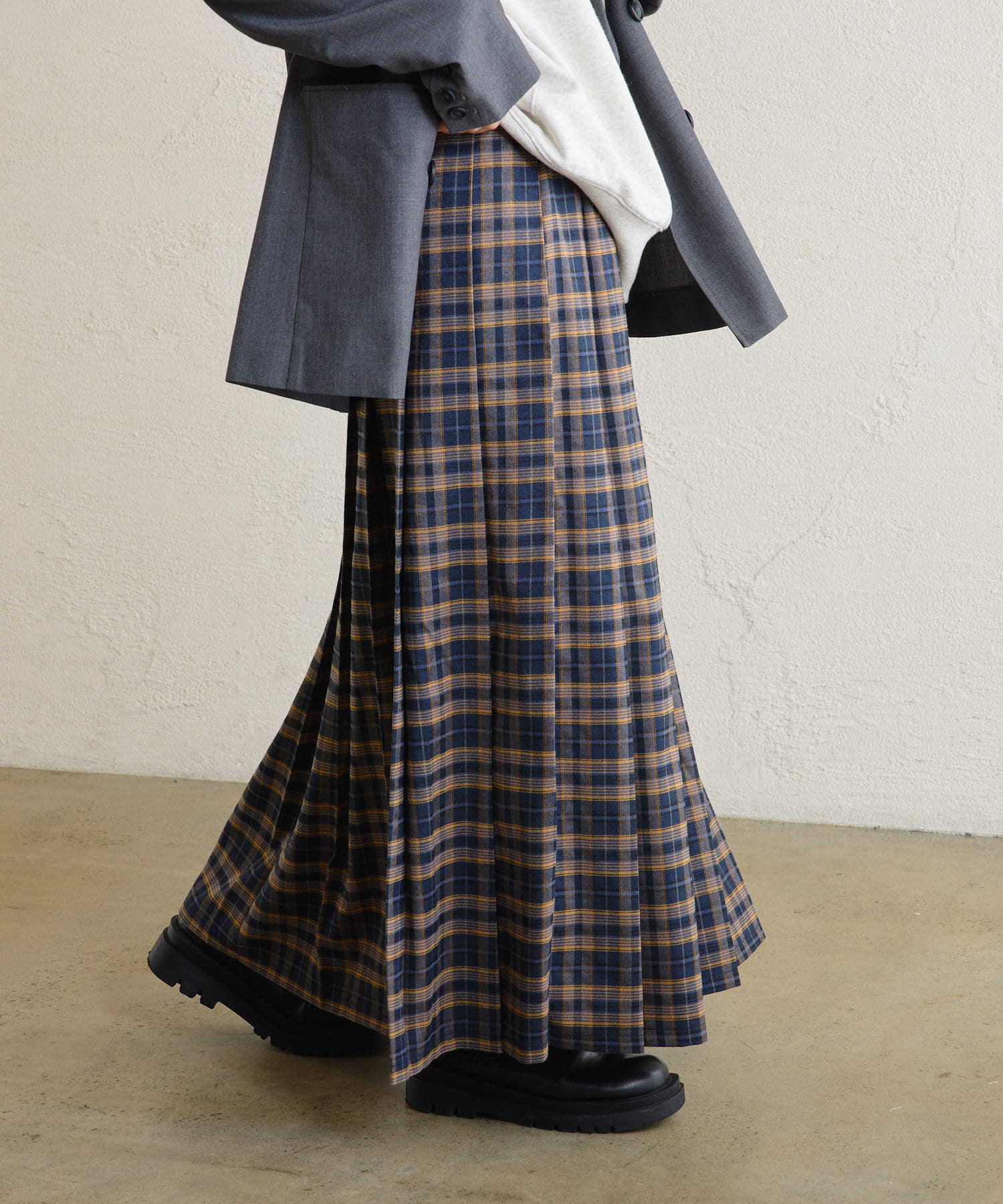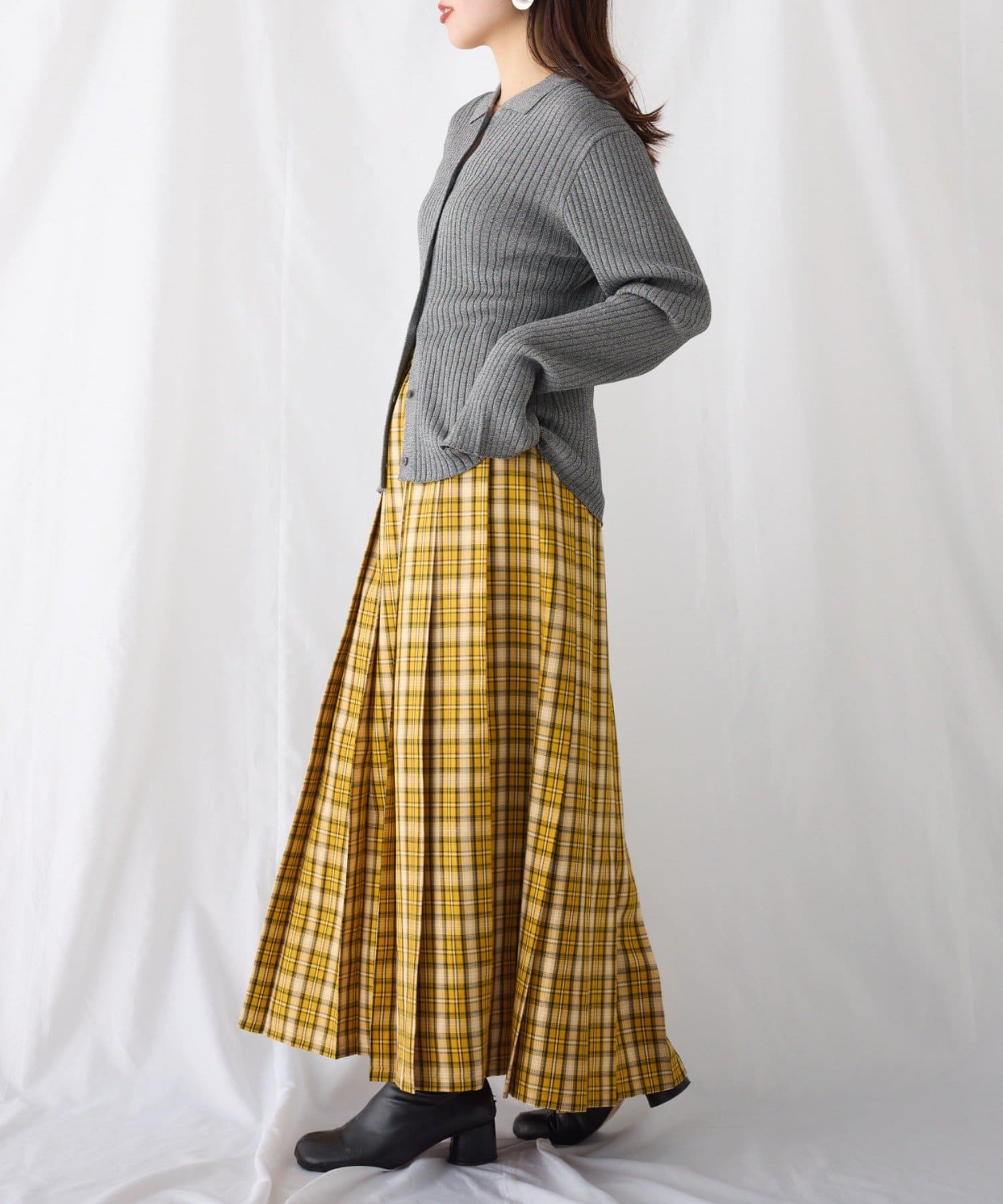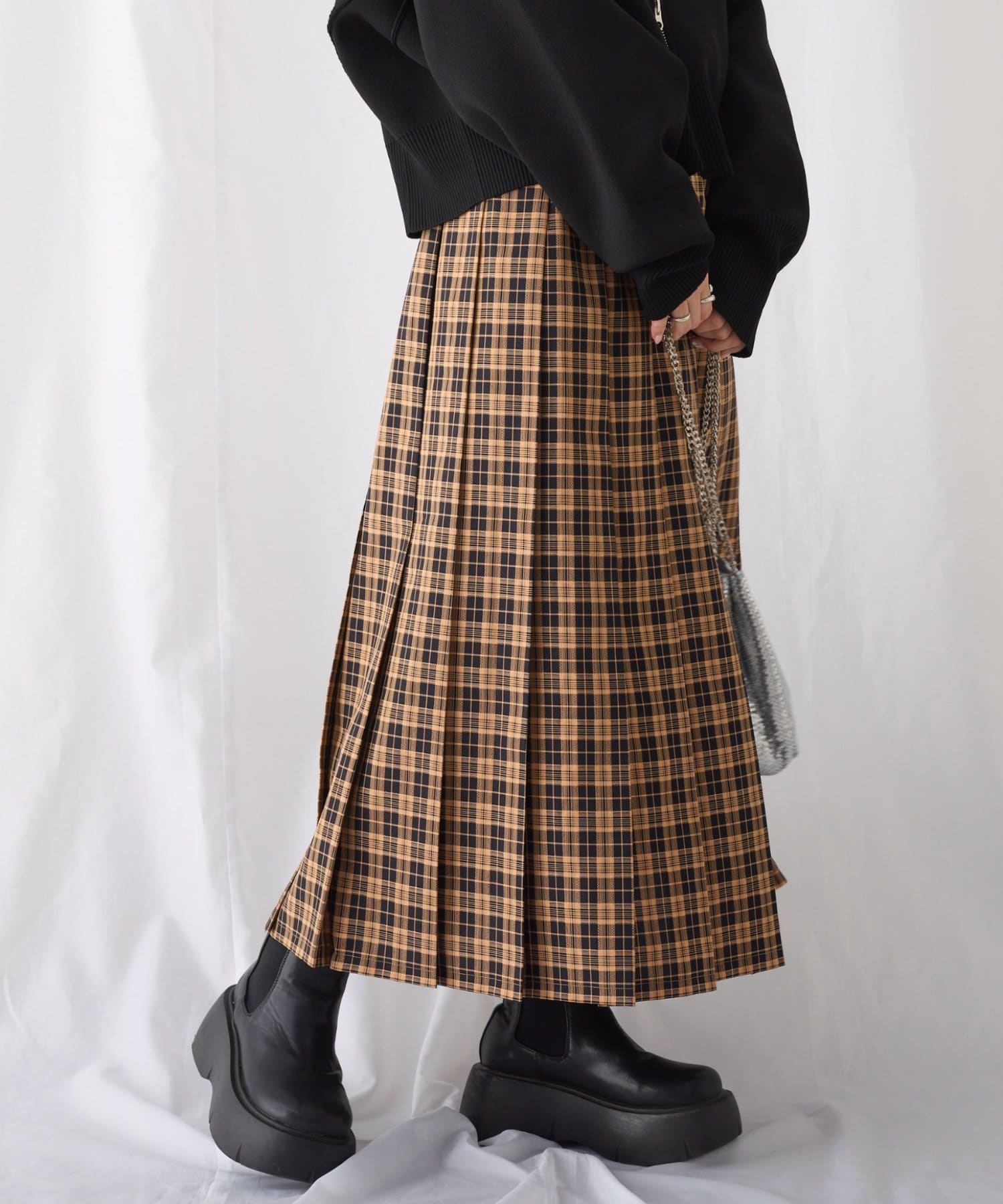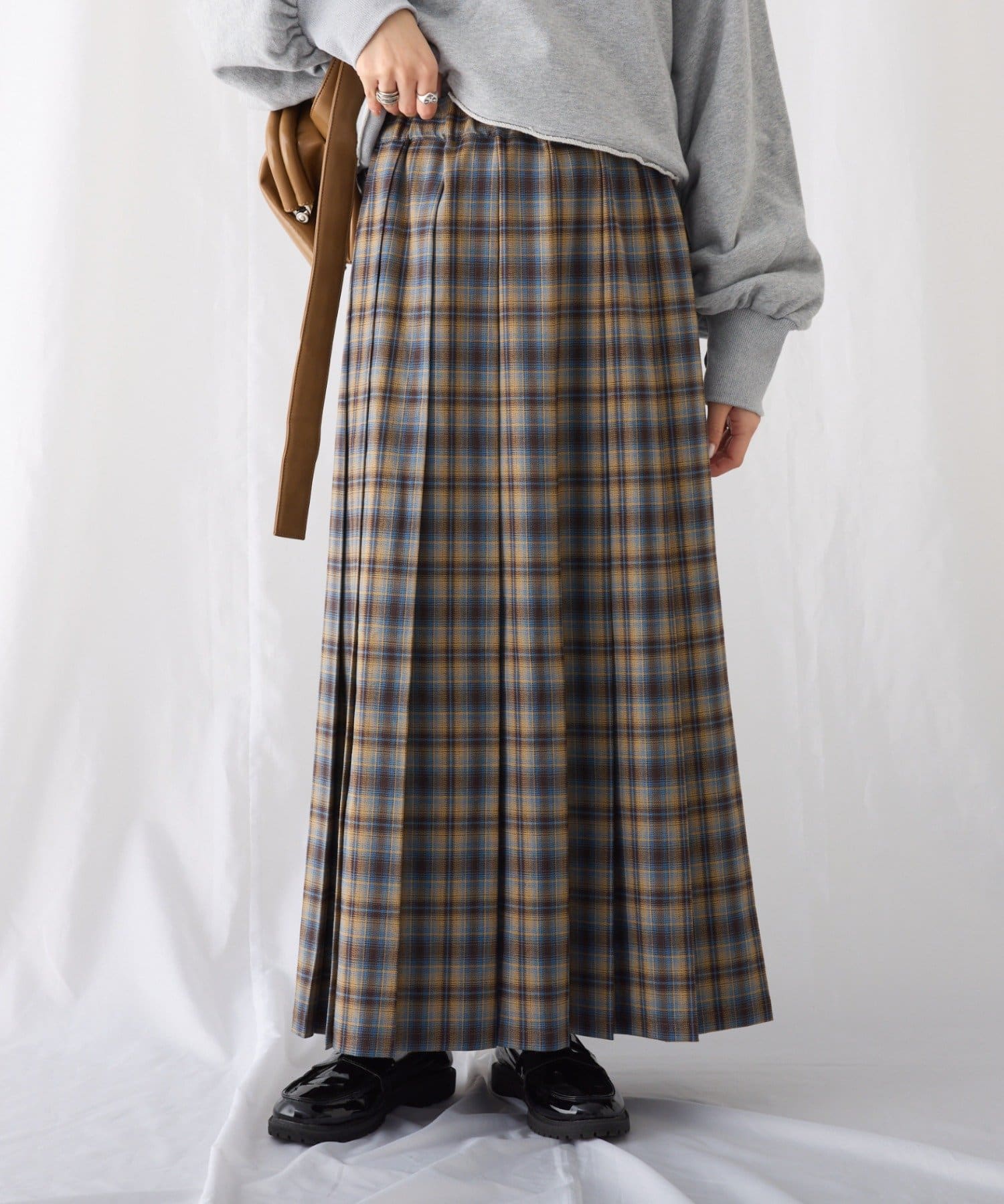 【新色登場!】すっきり見えチェックプリーツイージースカート