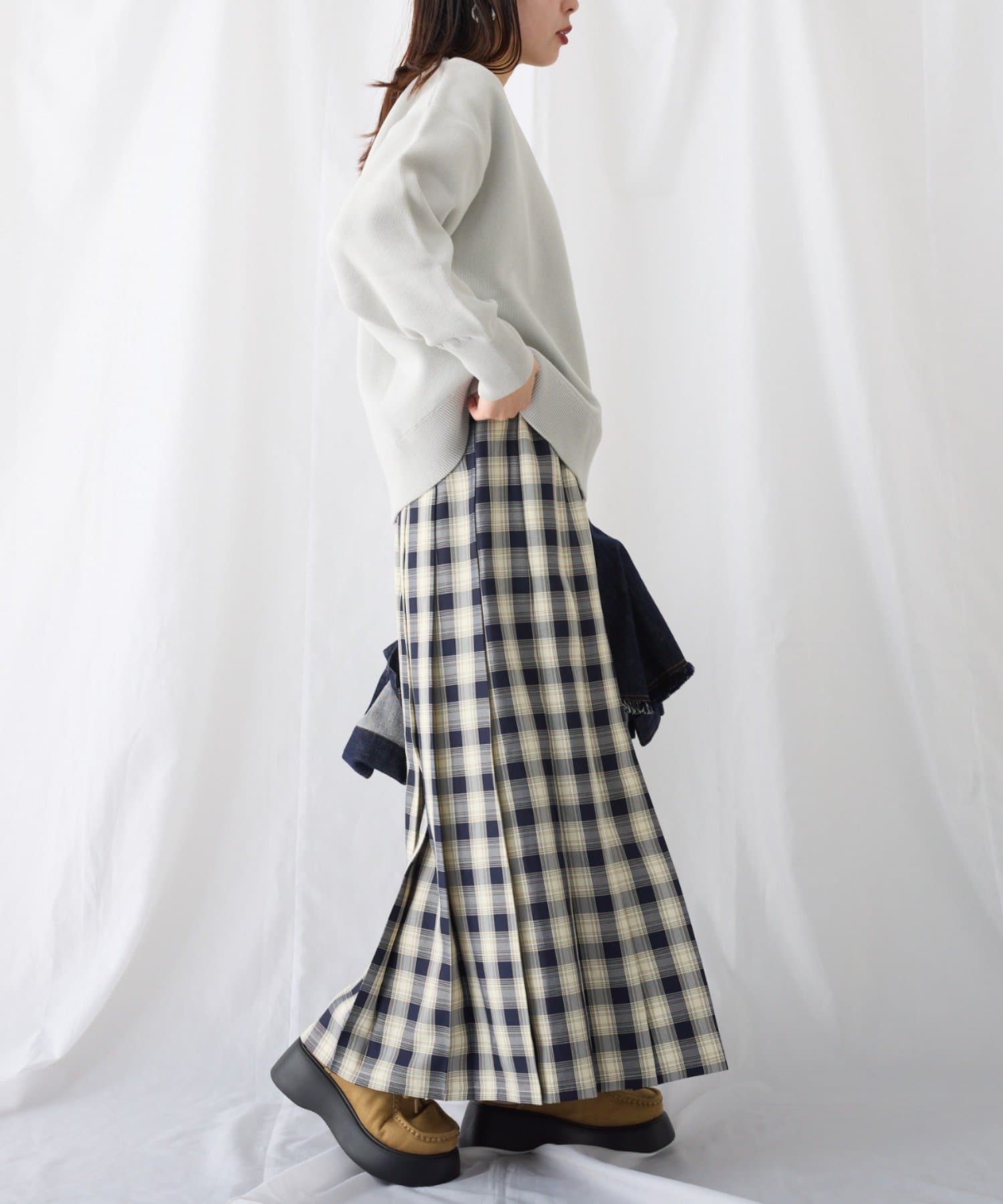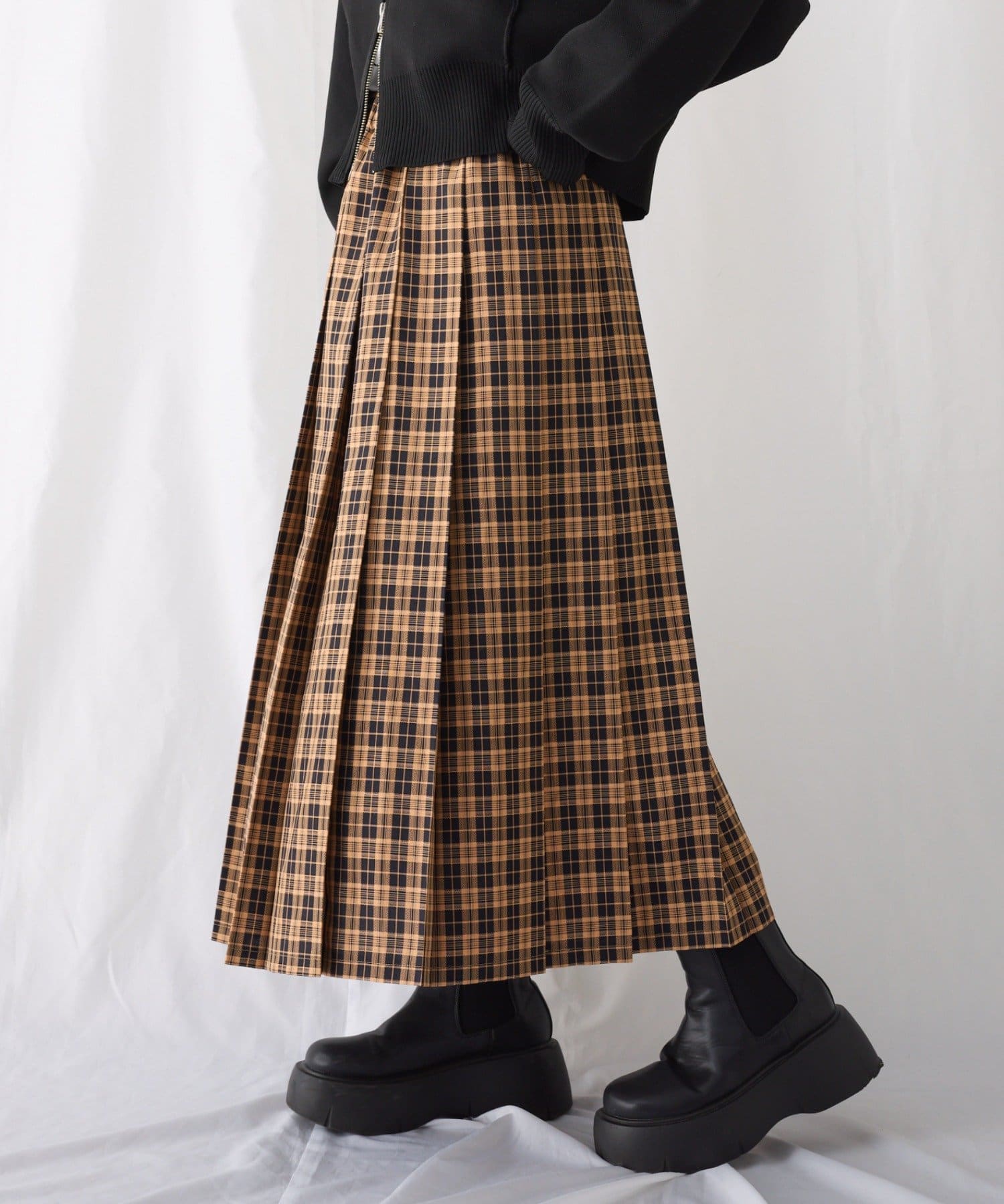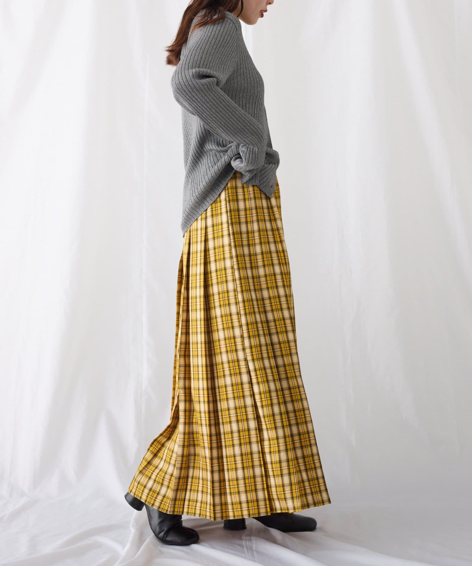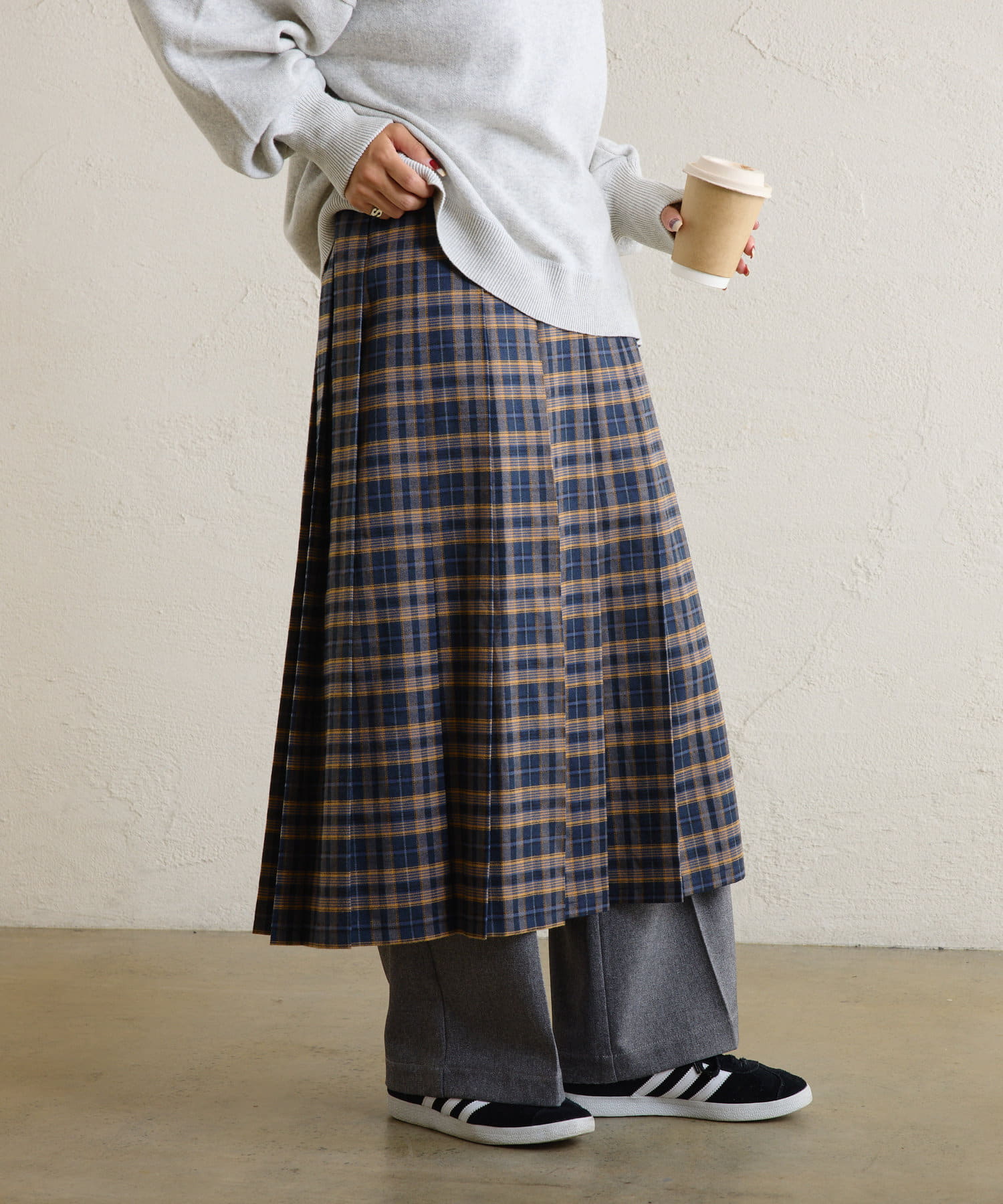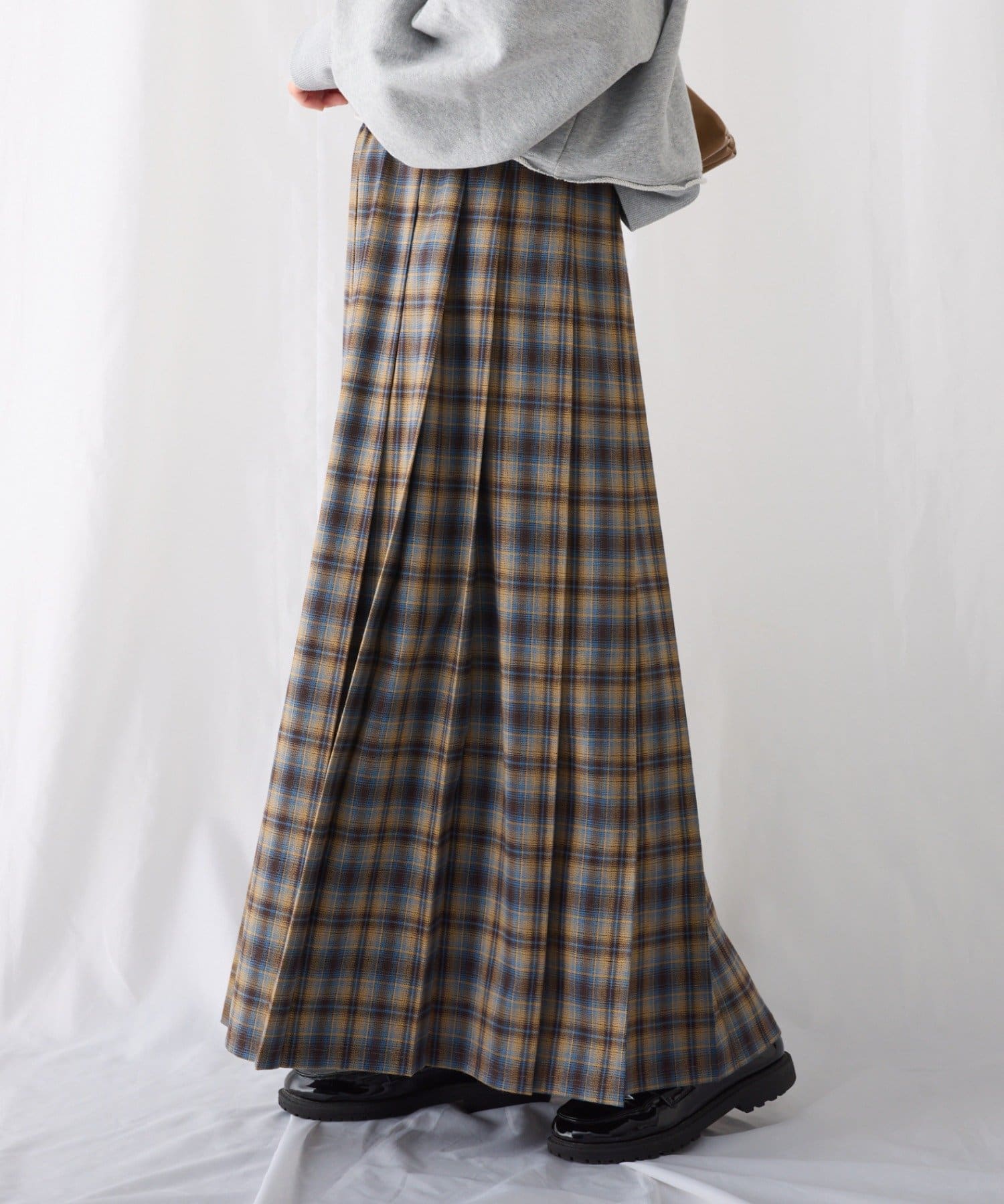 【新色登場!】すっきり見えチェックプリーツイージースカート
