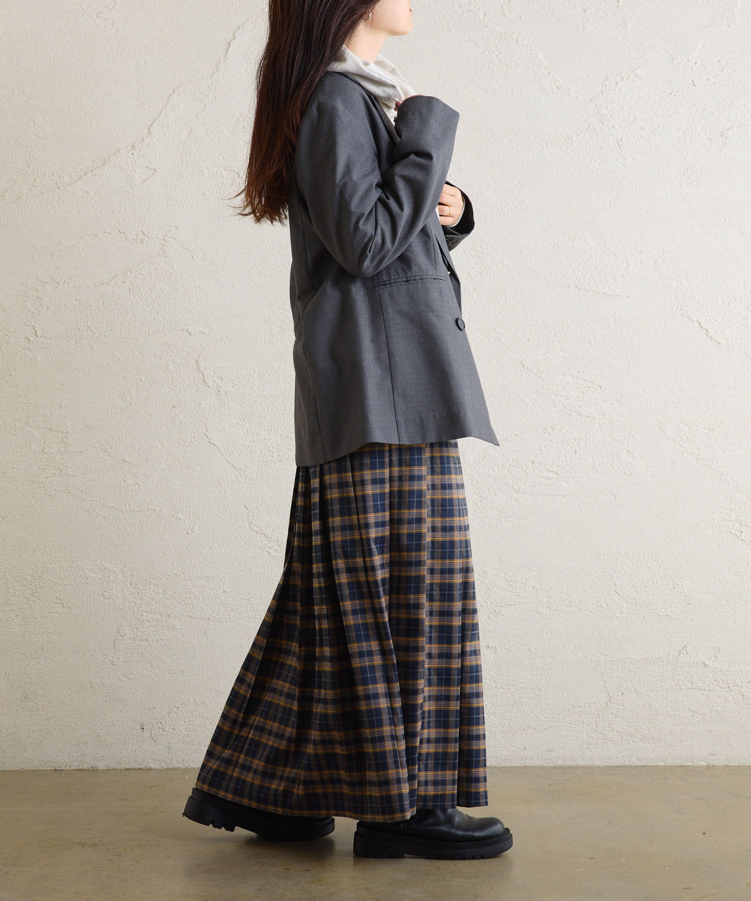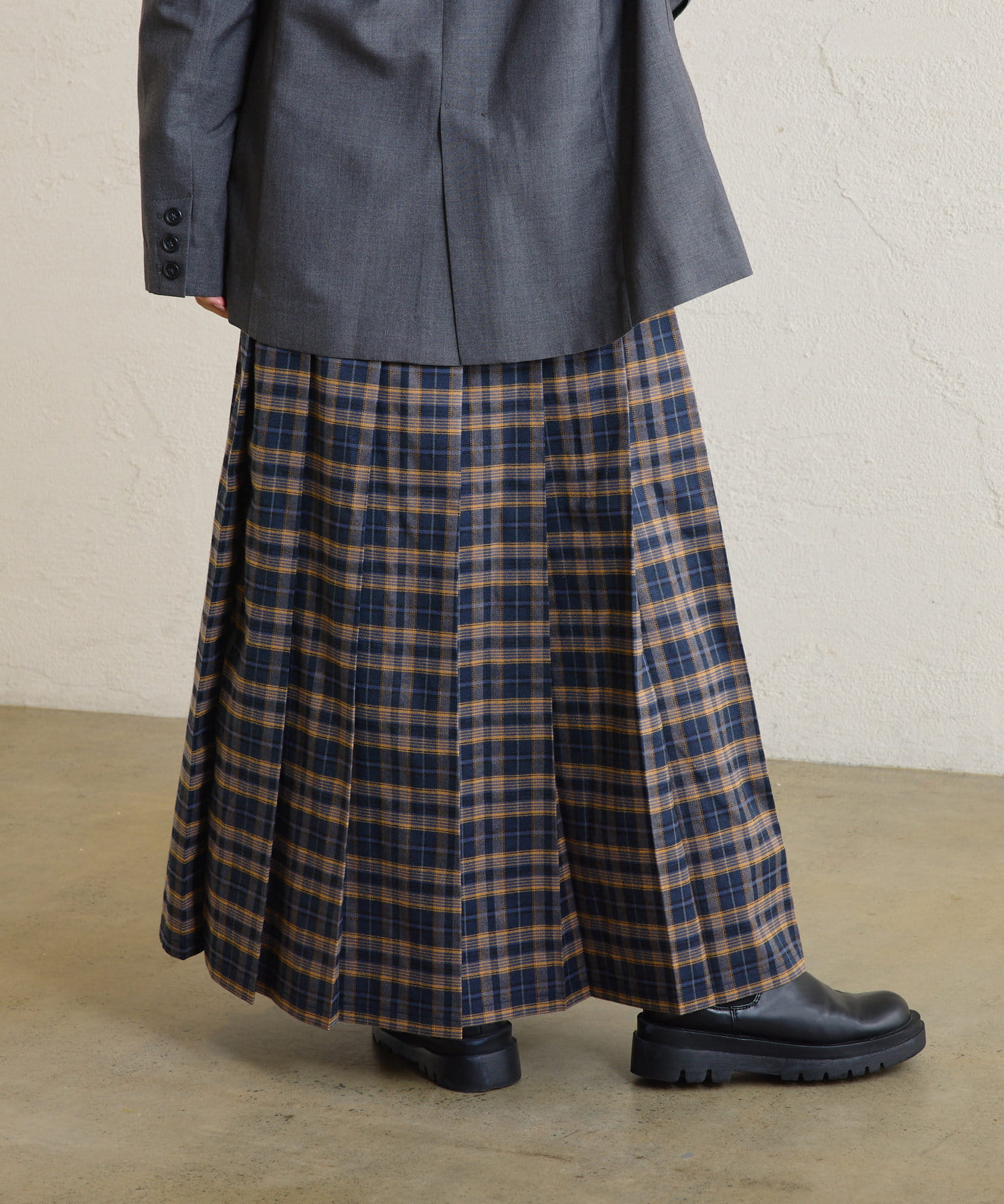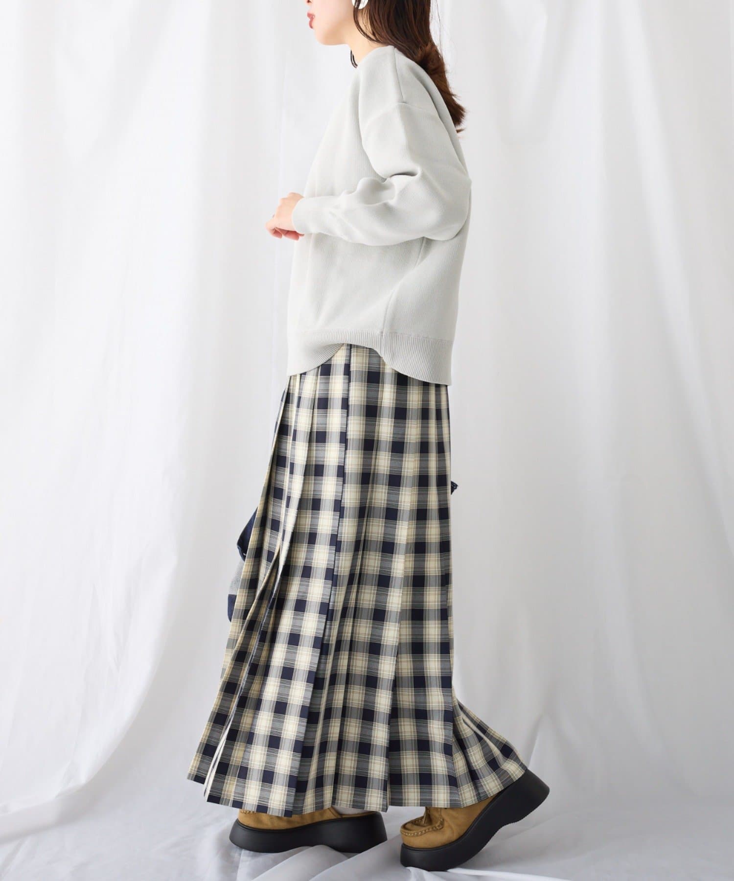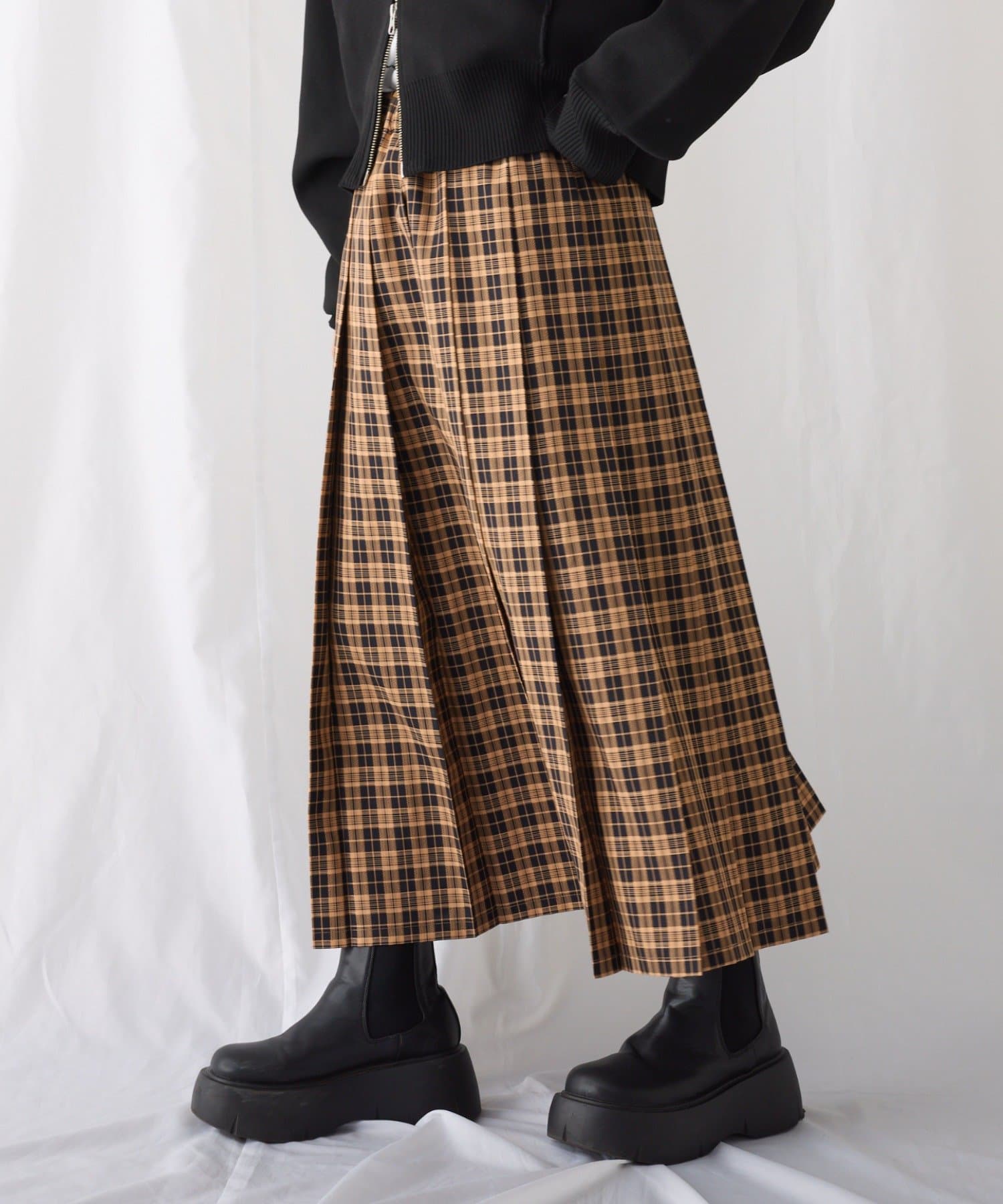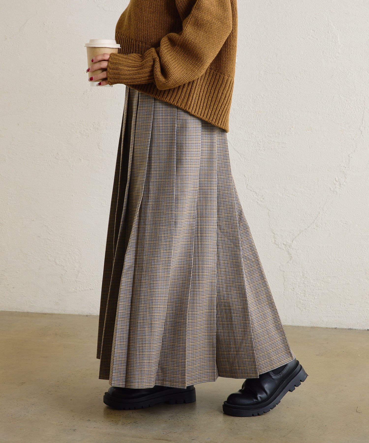 【新色登場!】すっきり見えチェックプリーツイージースカート