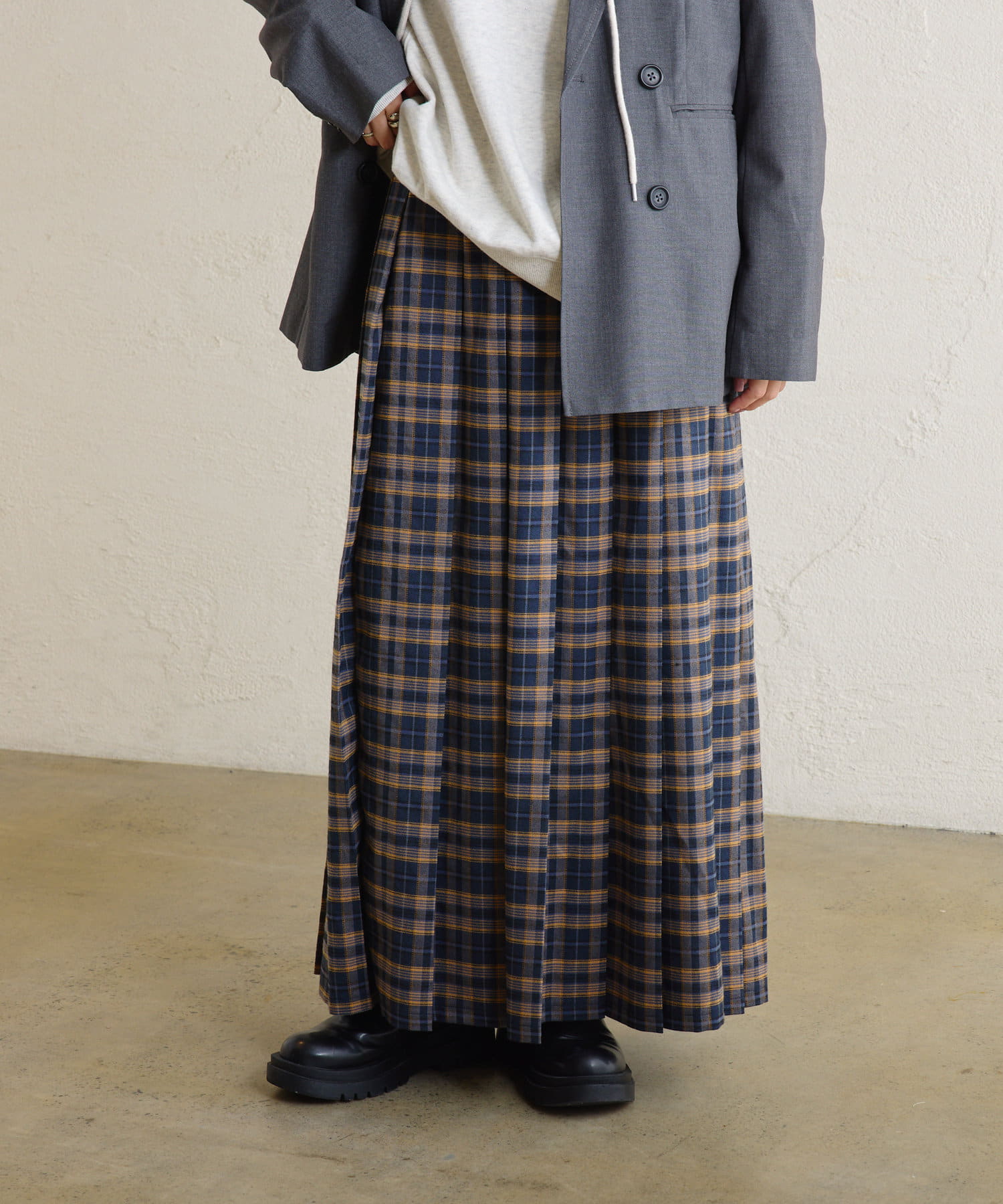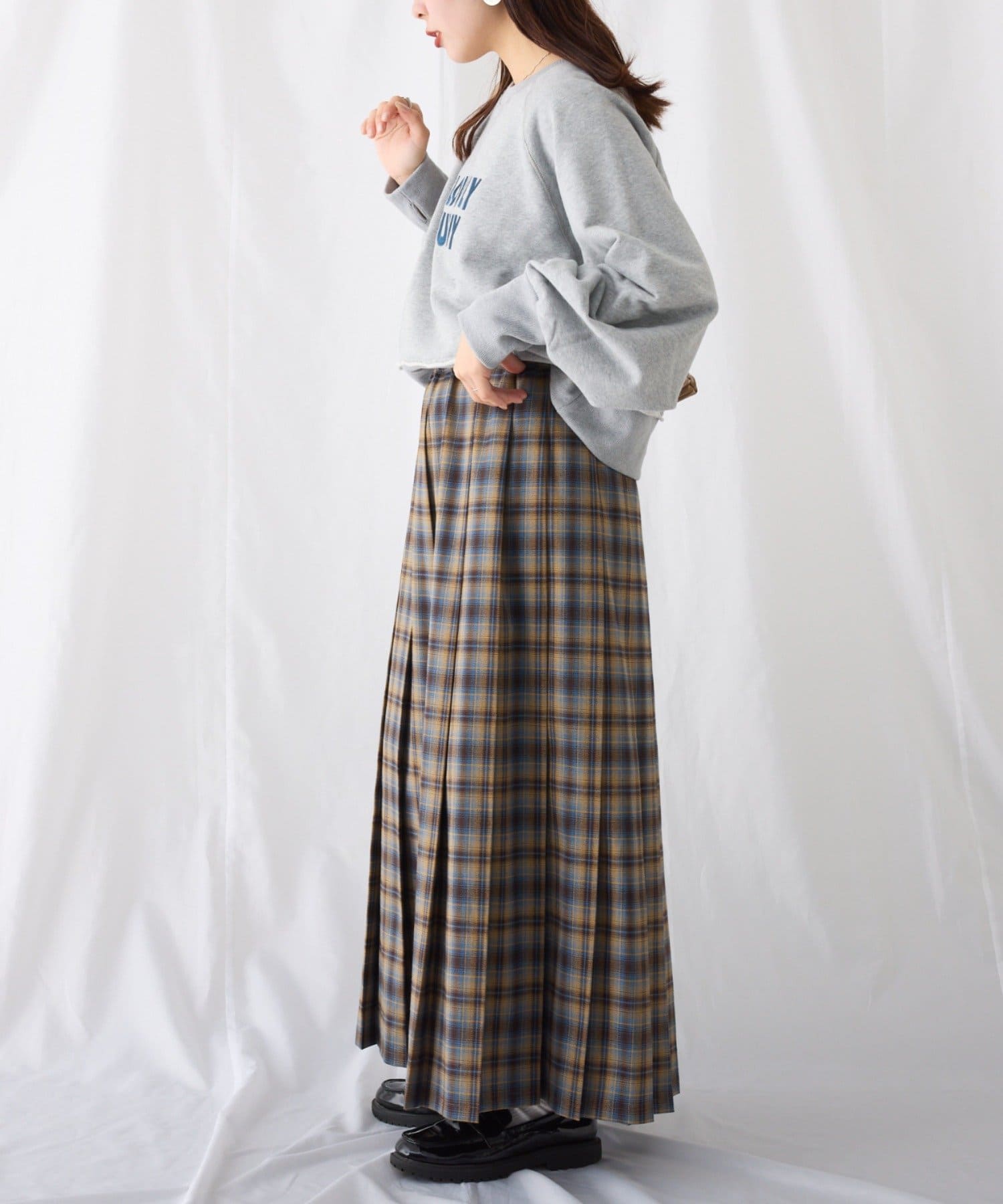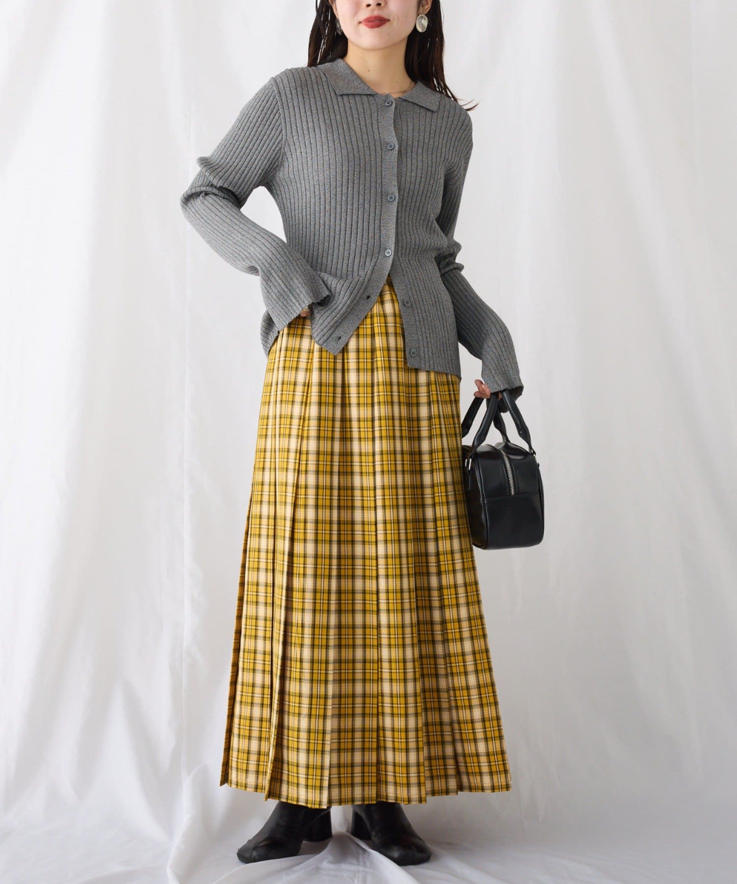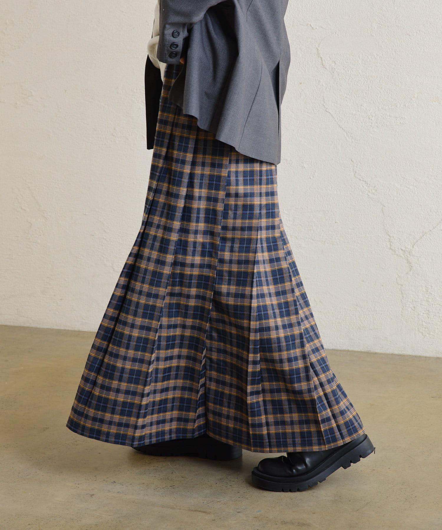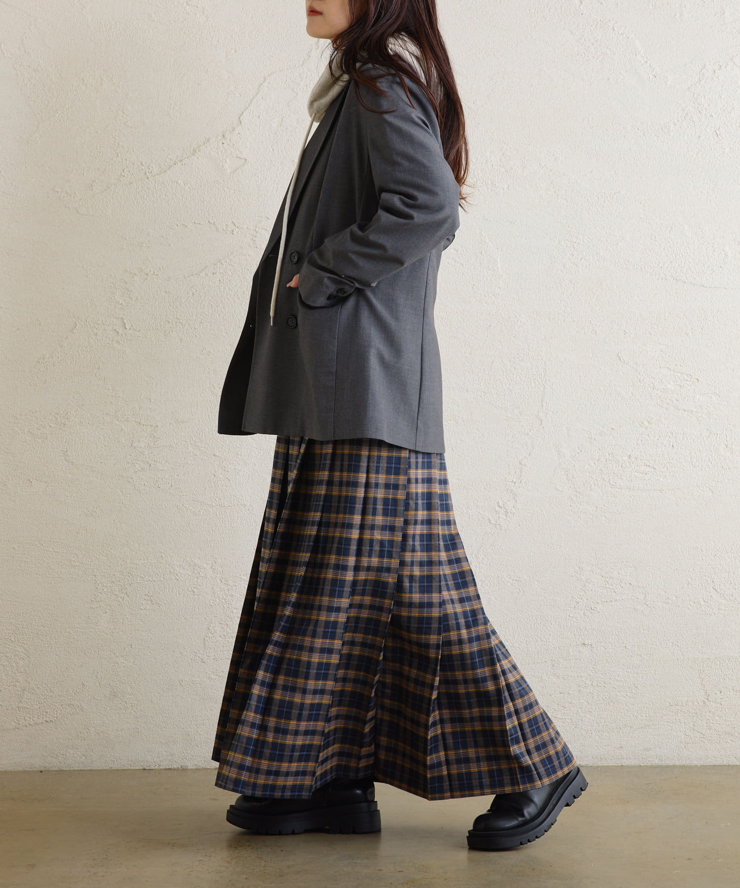 【新色登場!】すっきり見えチェックプリーツイージースカート