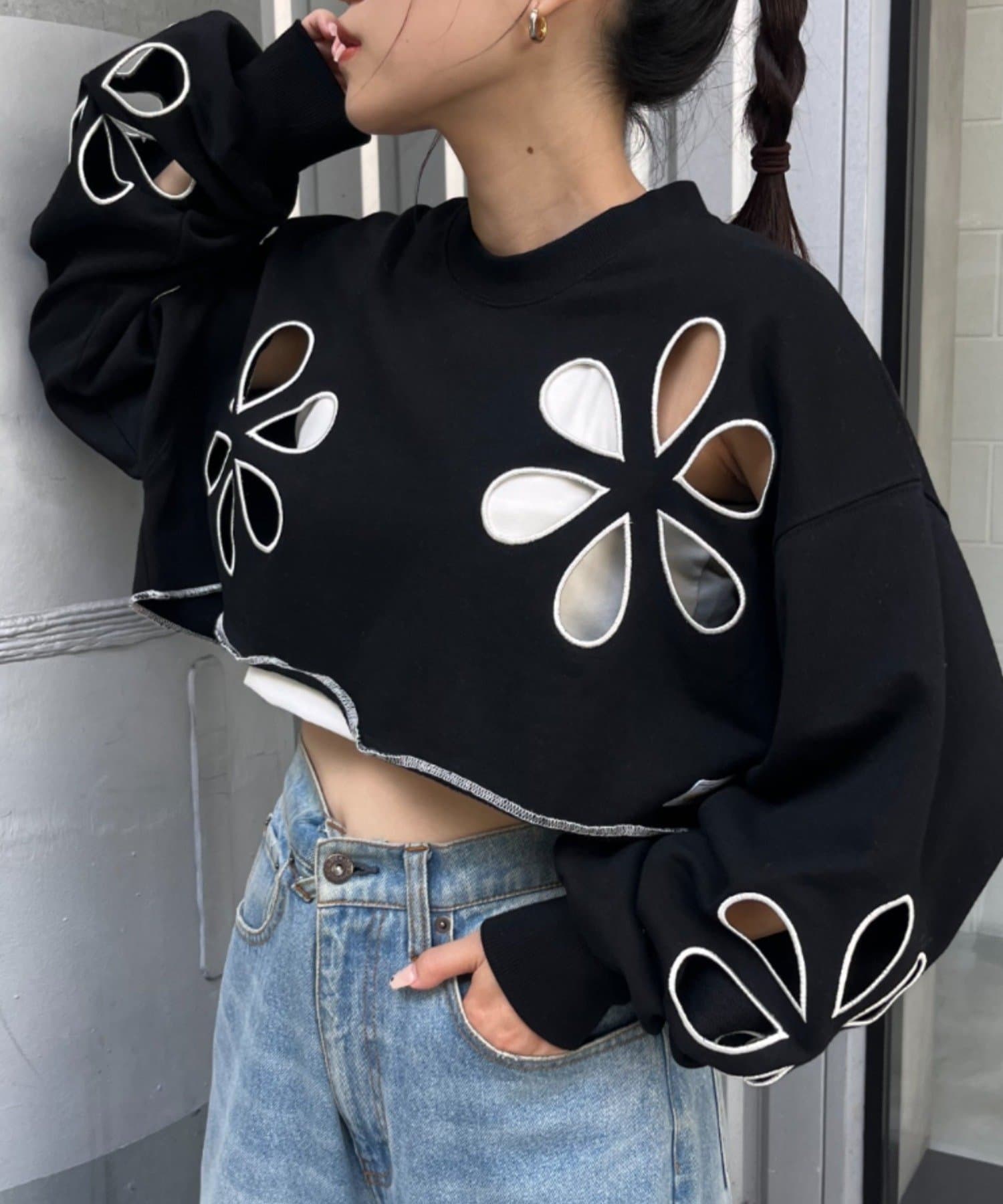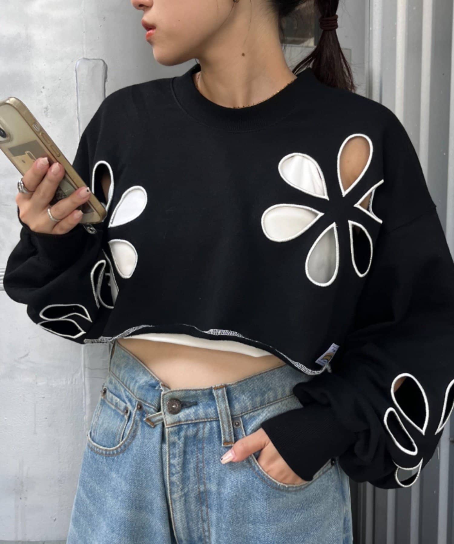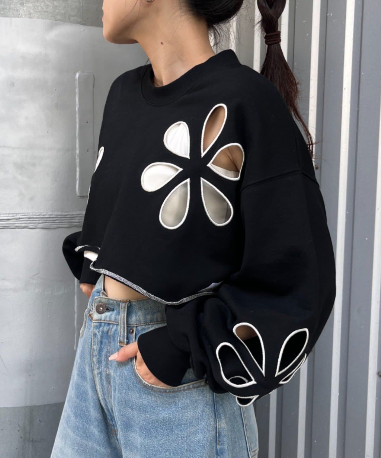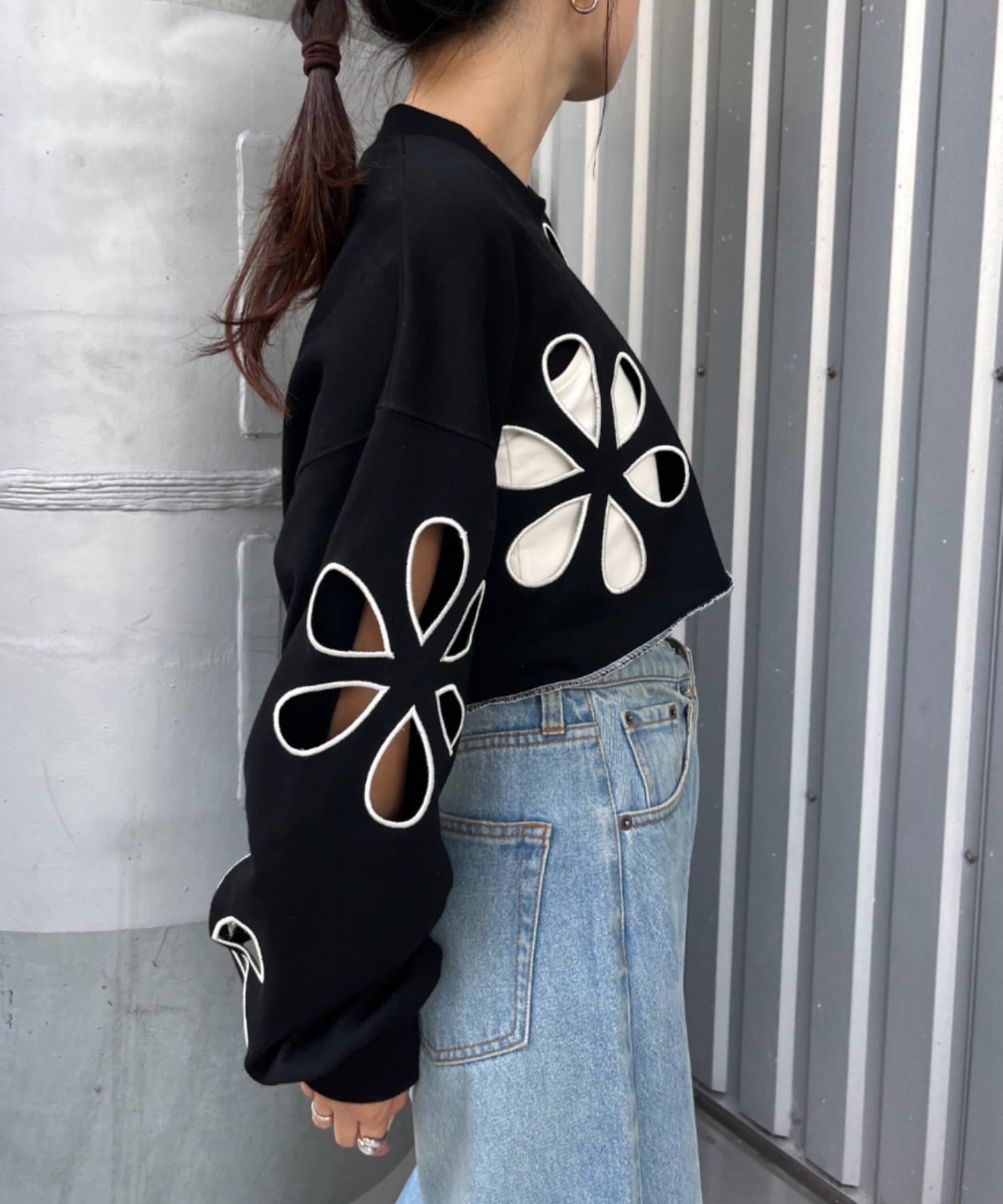 【HELLO.SANFRANCISCO】フラワーカットアウトクロップドスウェット