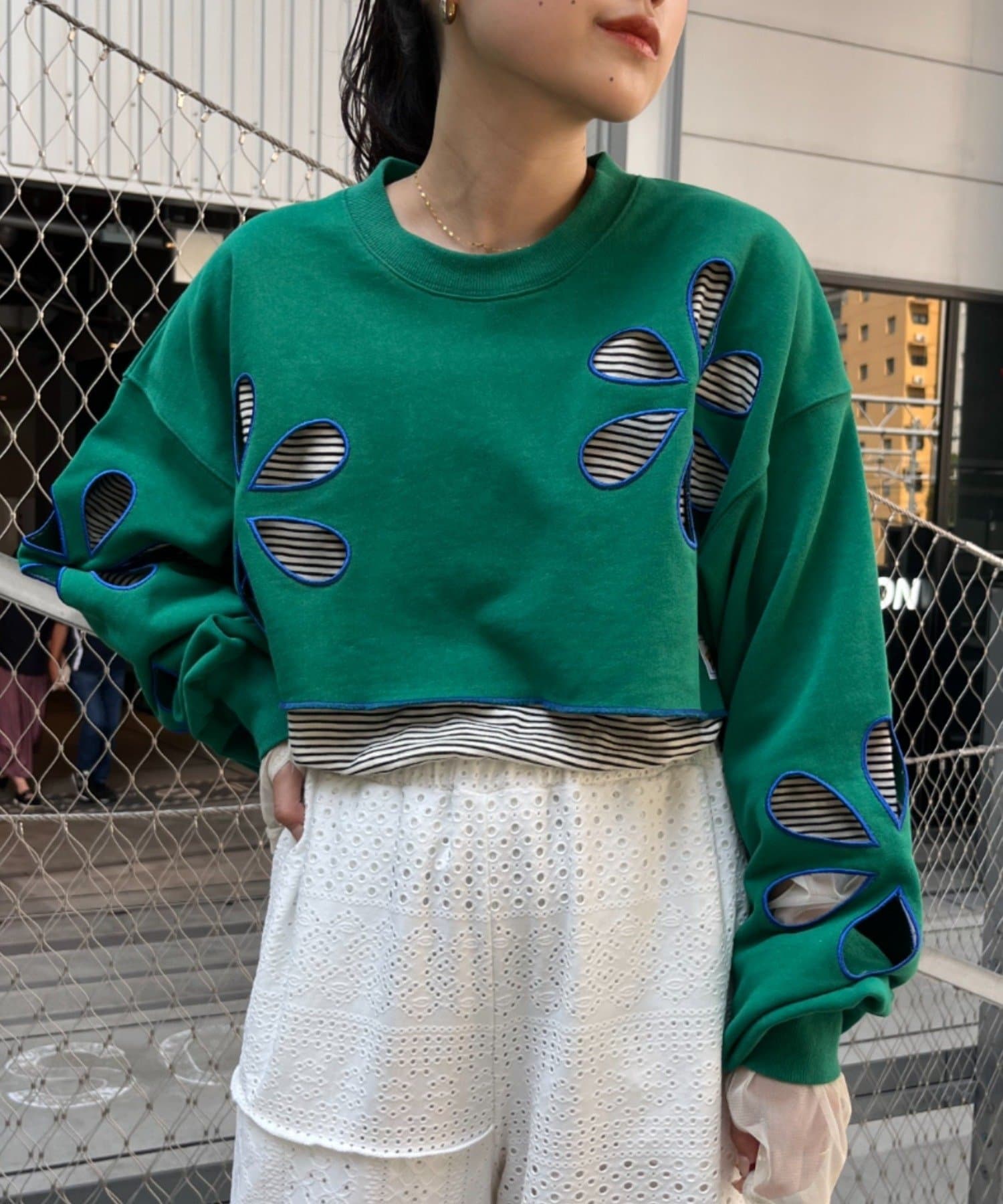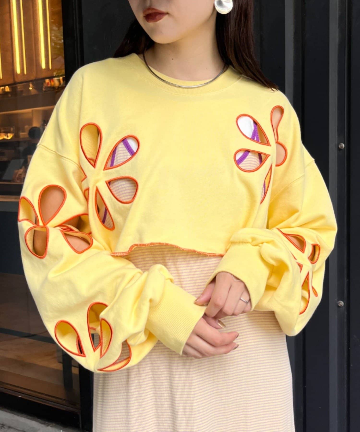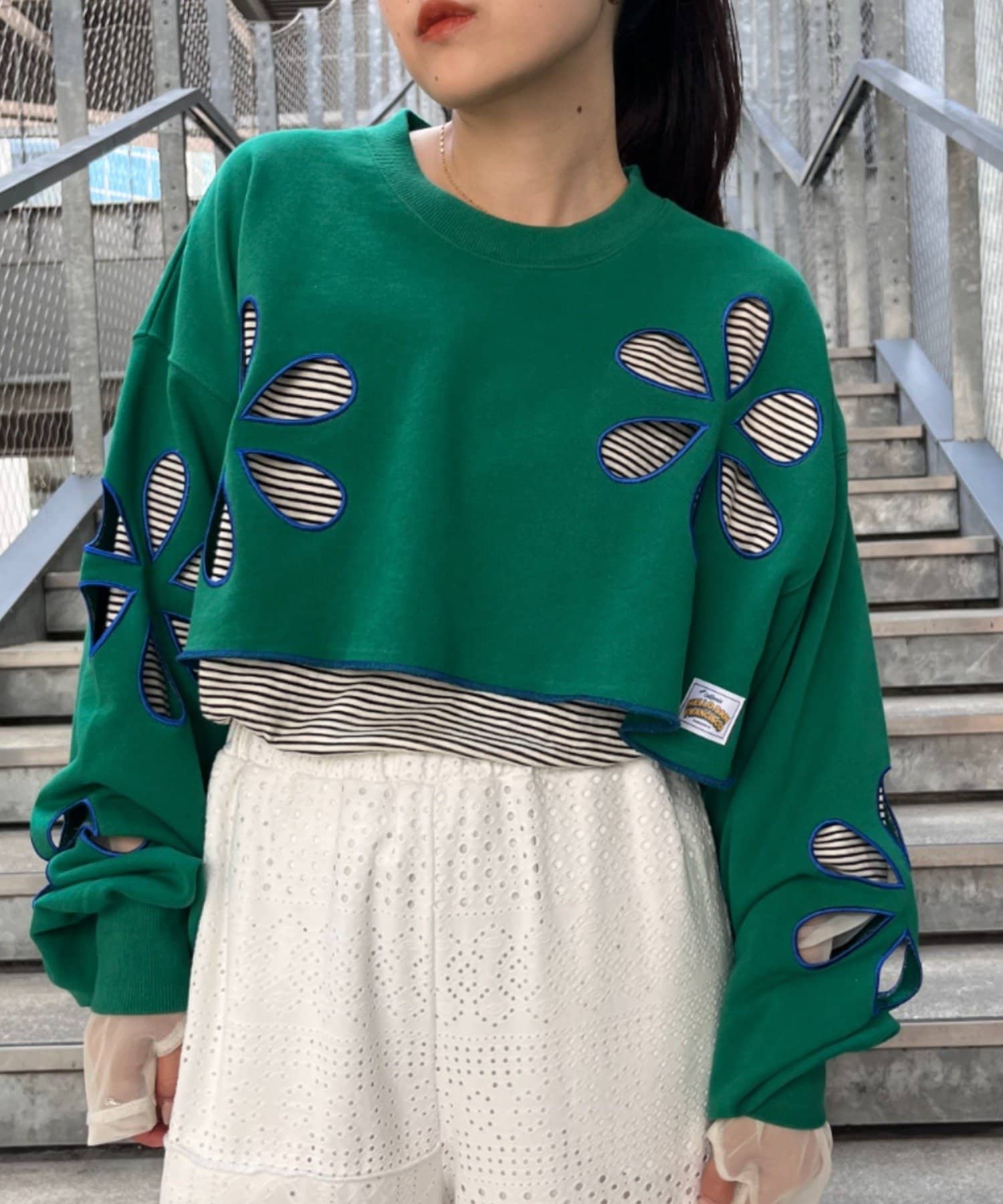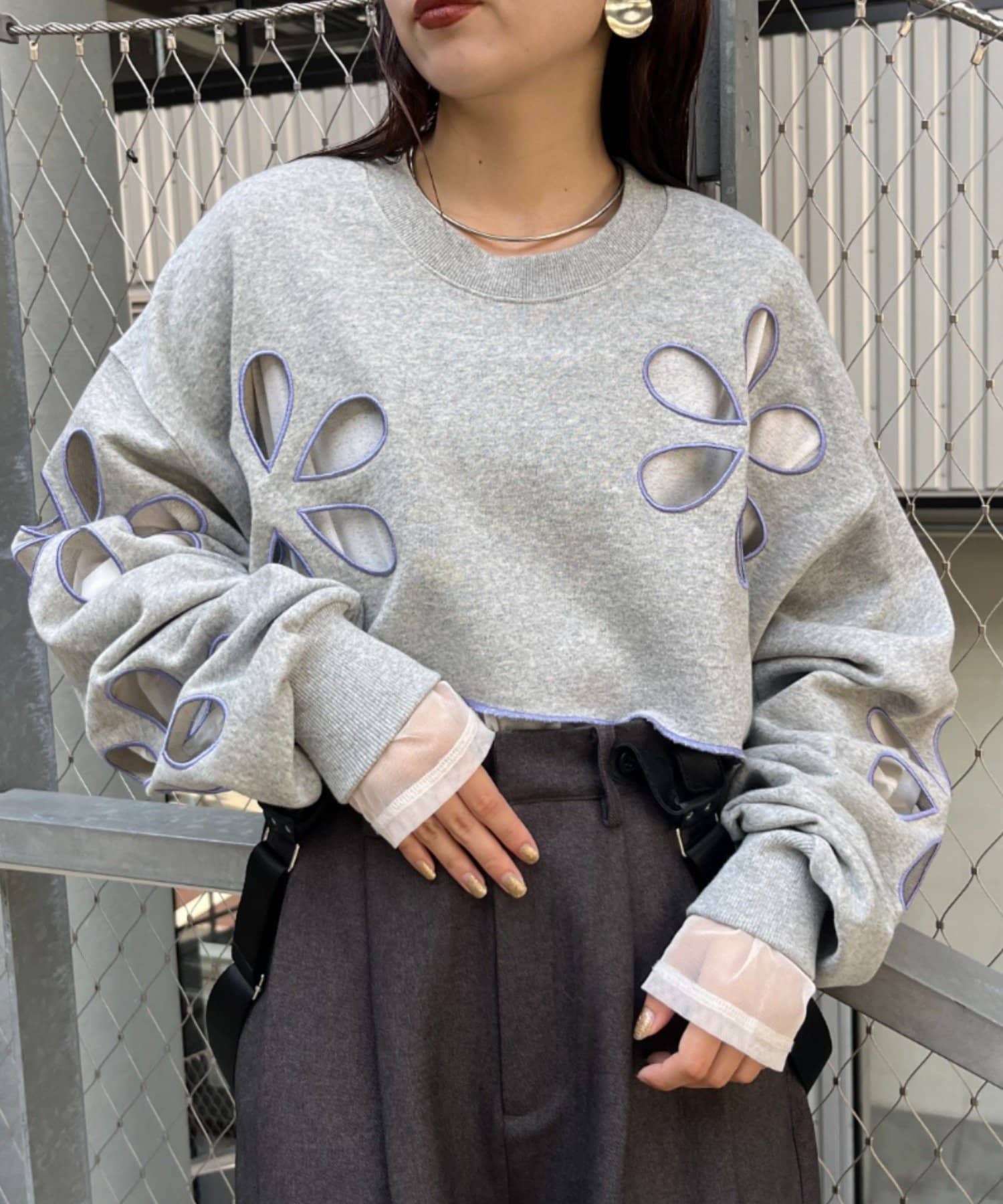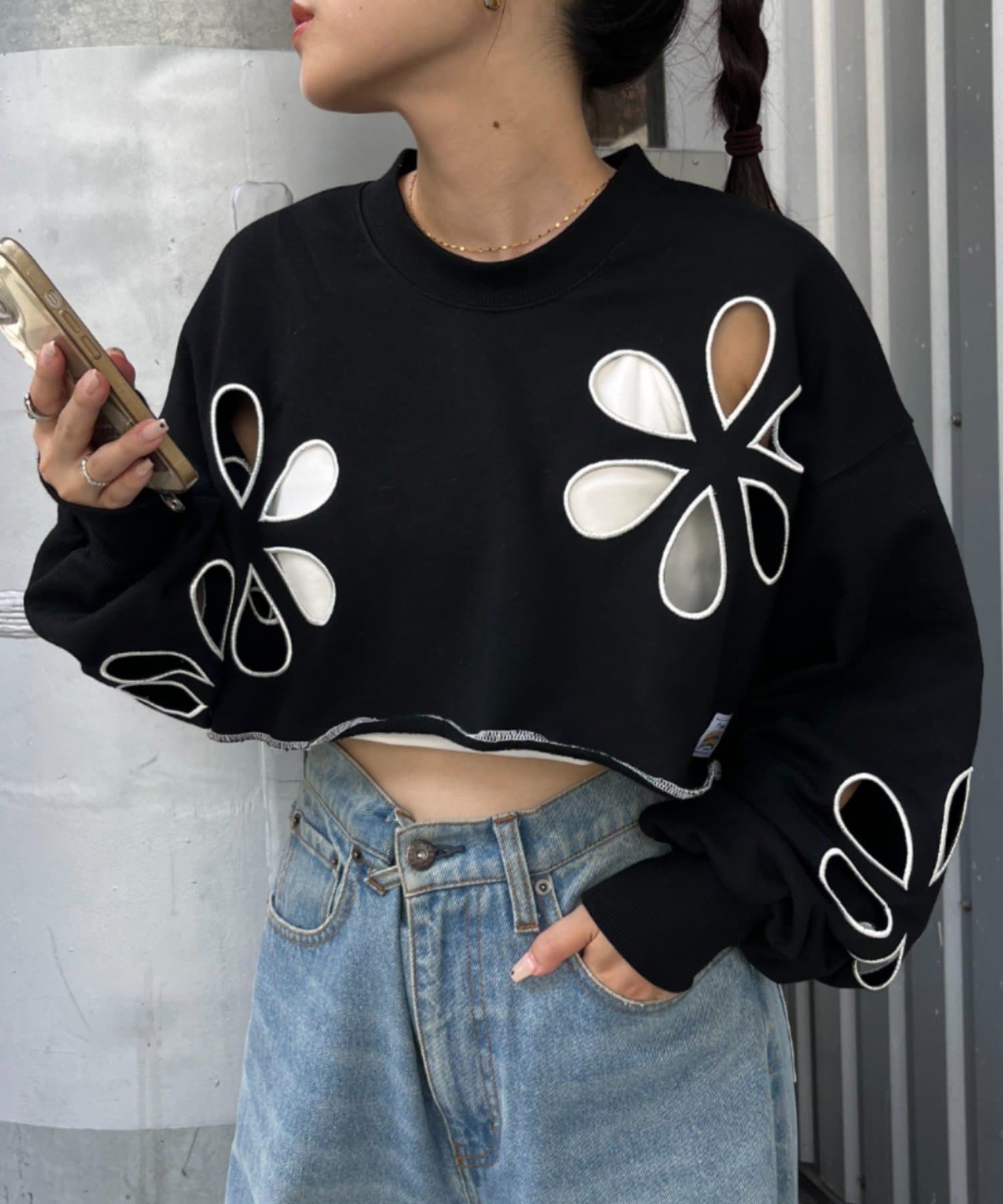 【HELLO.SANFRANCISCO】フラワーカットアウトクロップドスウェット
