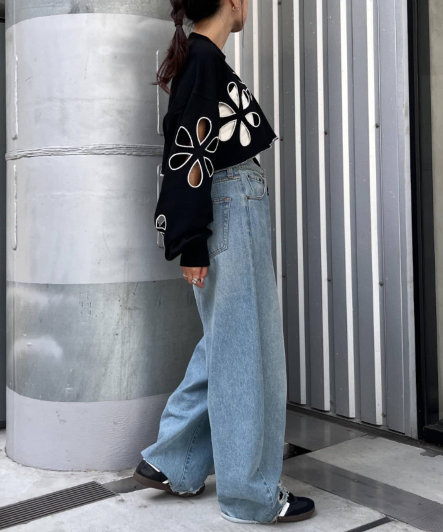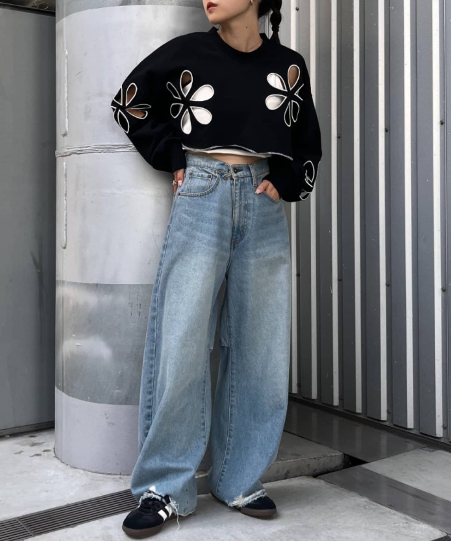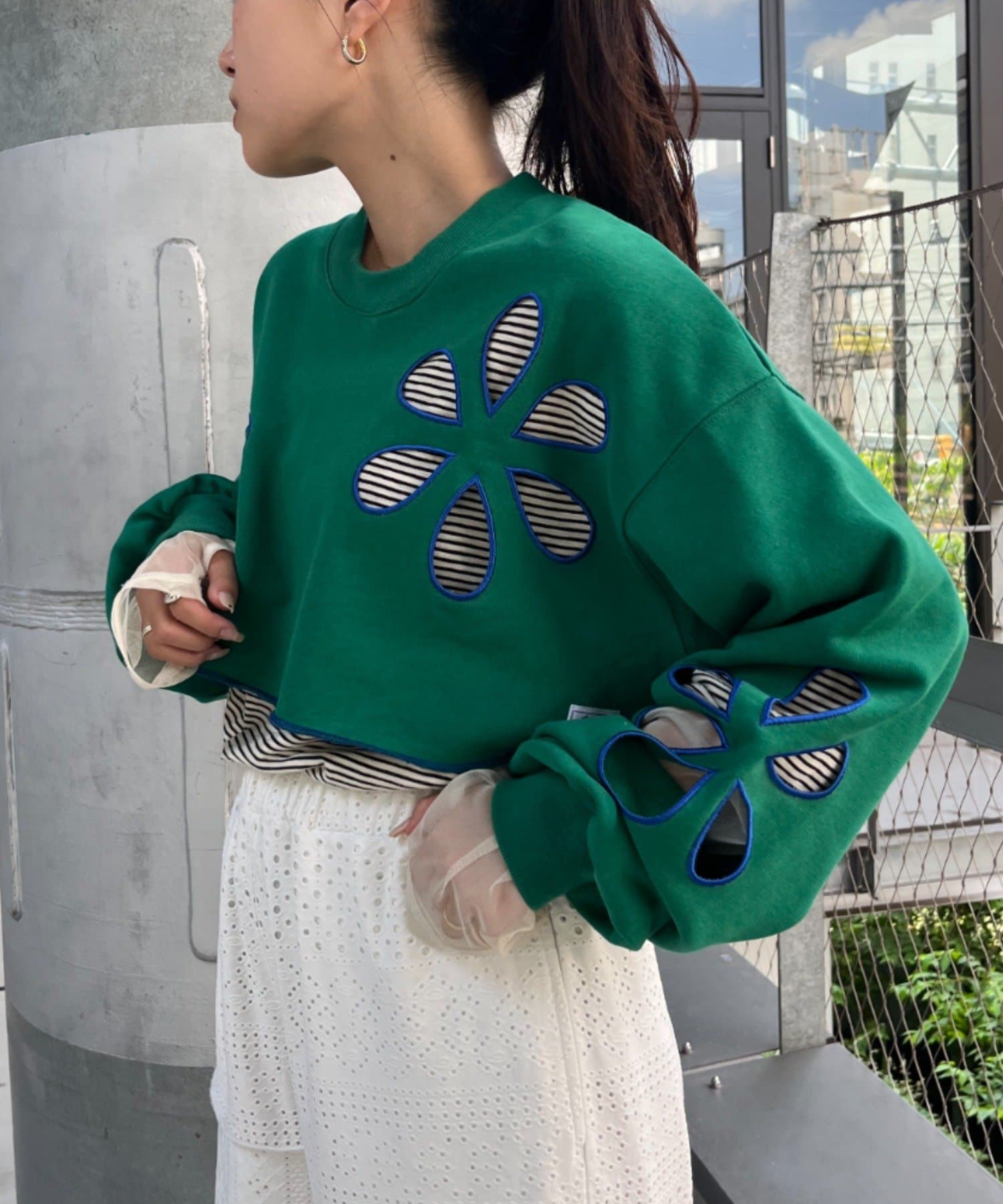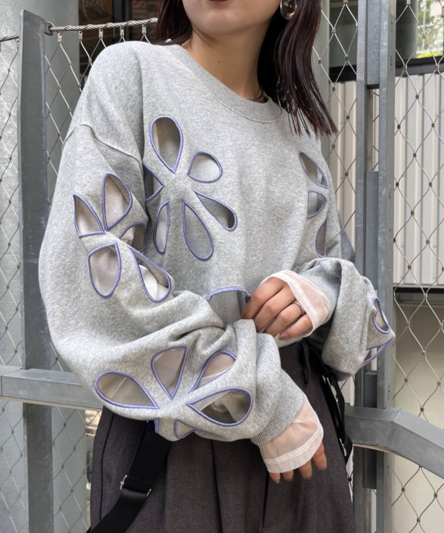 【HELLO.SANFRANCISCO】フラワーカットアウトクロップドスウェット