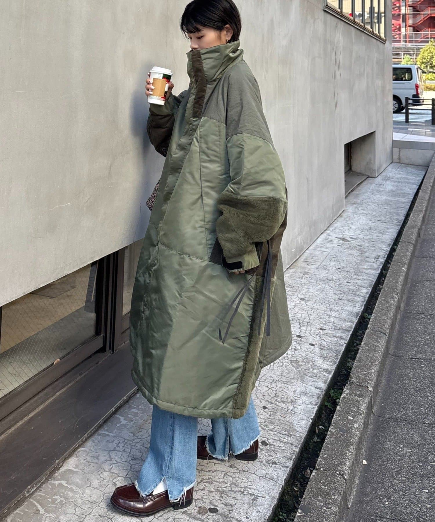 たっぷりのボリューム感が魅力のオーバーコート。