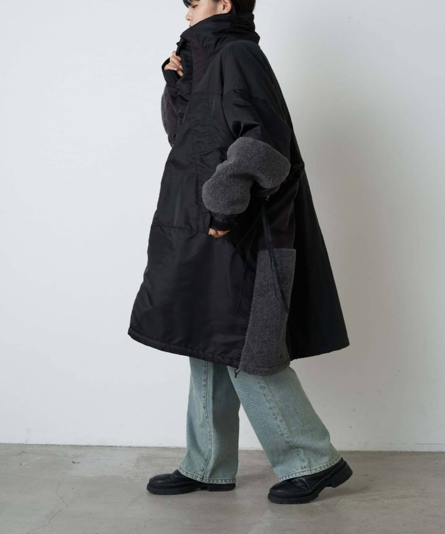 裾のドローコードを調節してシルエットの変化も楽しめます。