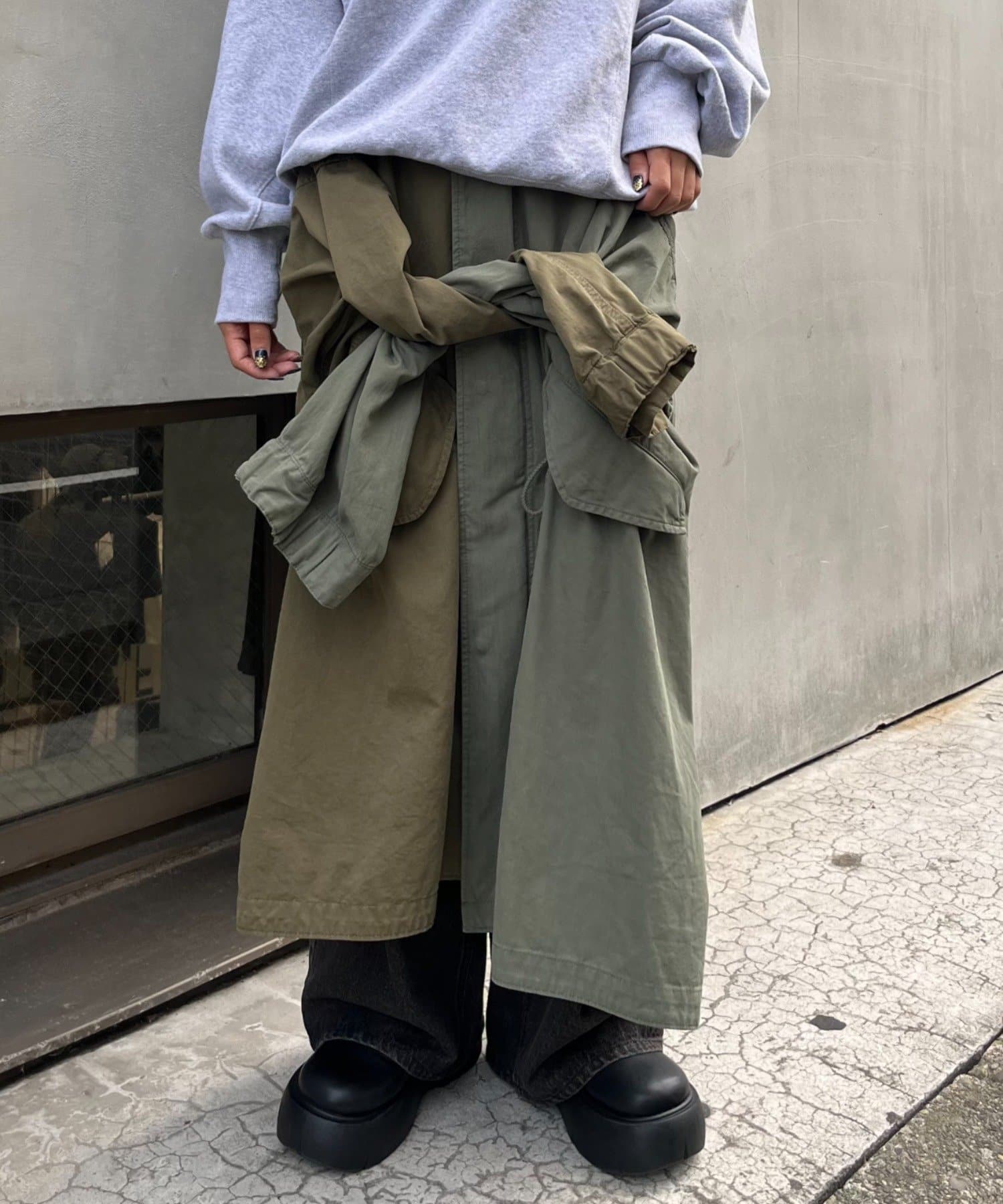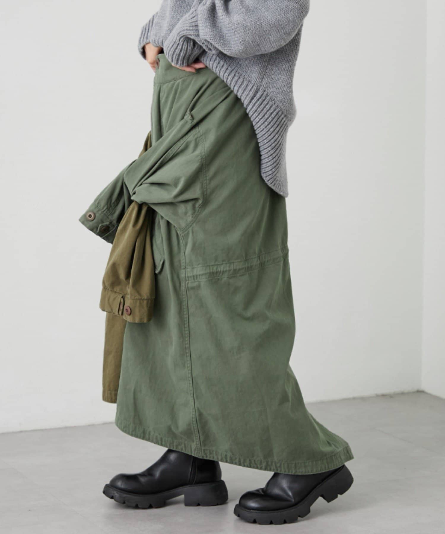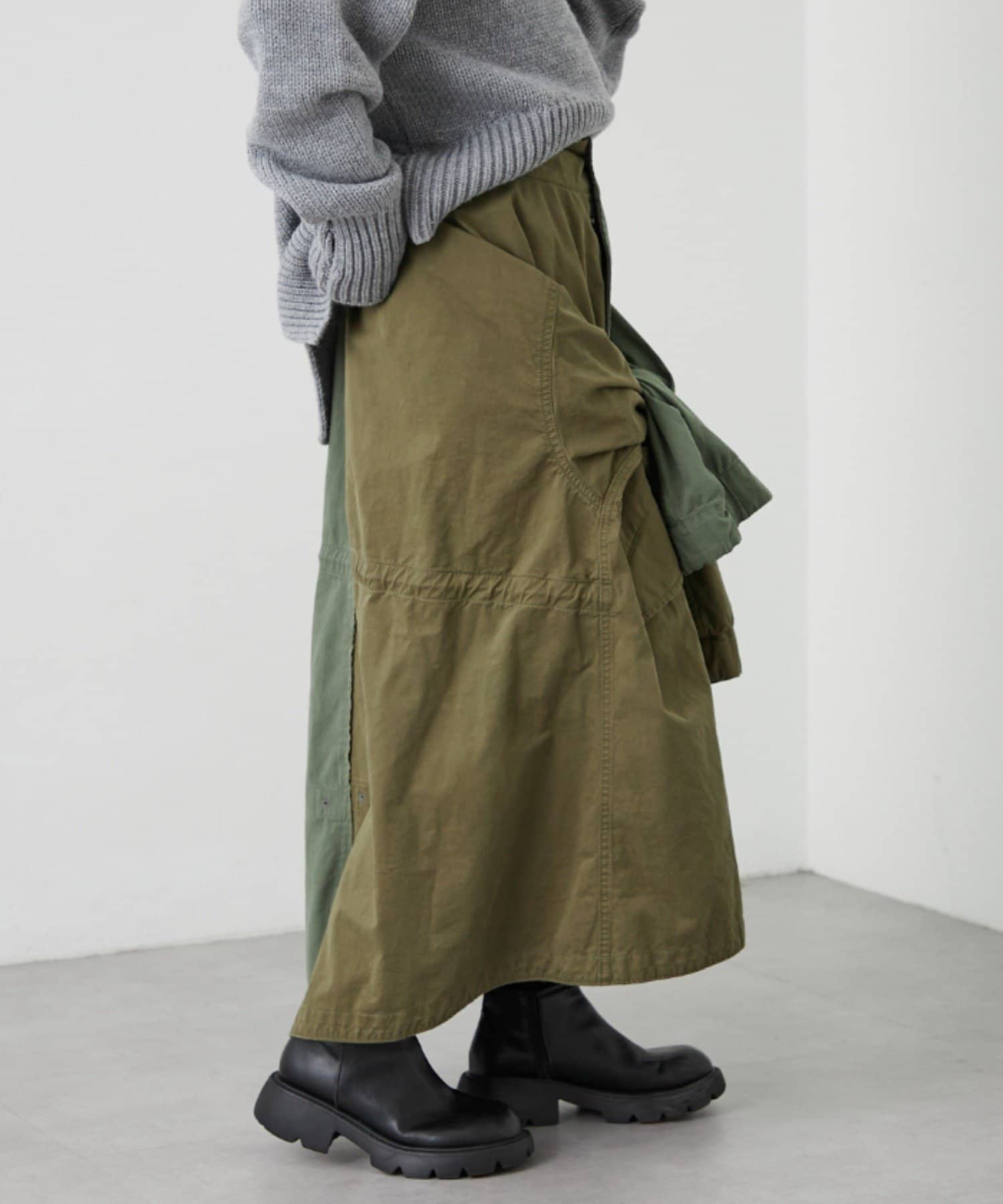 驚きなのがアウターとしてはもちろんのこと、スカートとしても着用が可能です。
