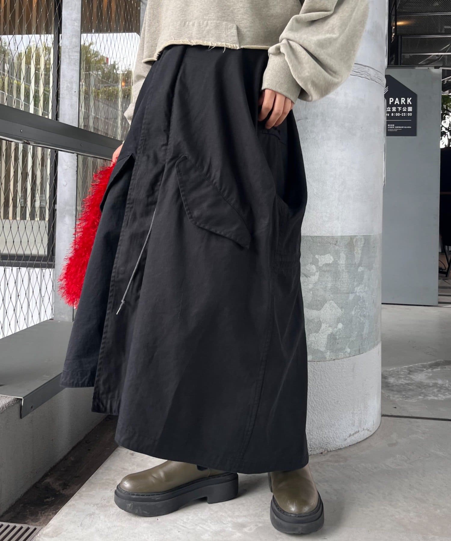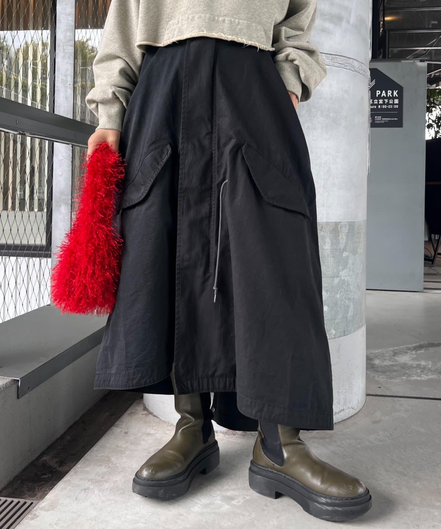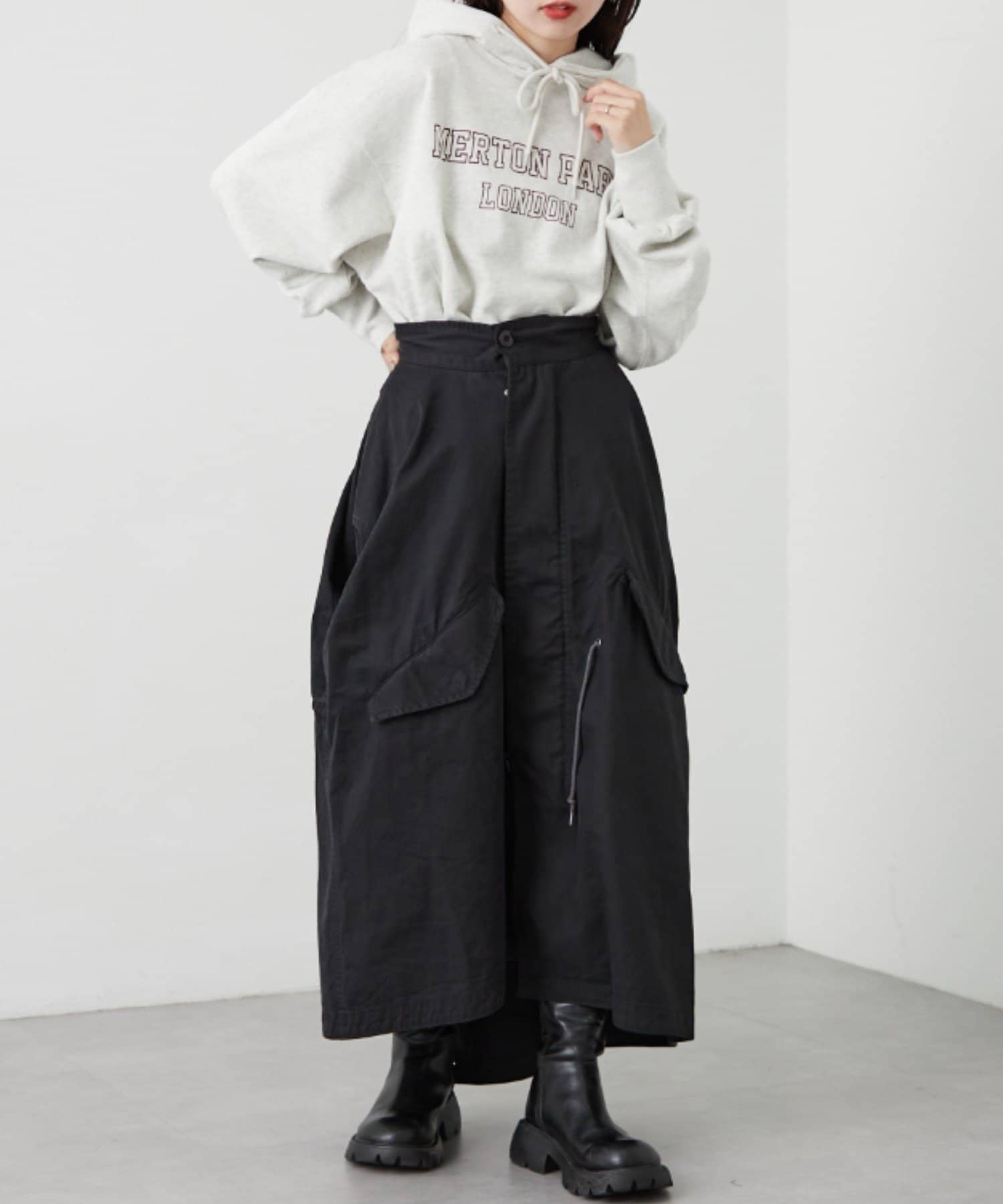 驚きなのがアウターとしてはもちろんのこと、スカートとしても着用が可能です。