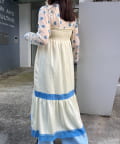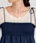 胸元のギャザーもコーデのアクセントになって可愛いポイント!