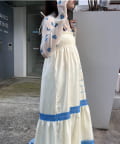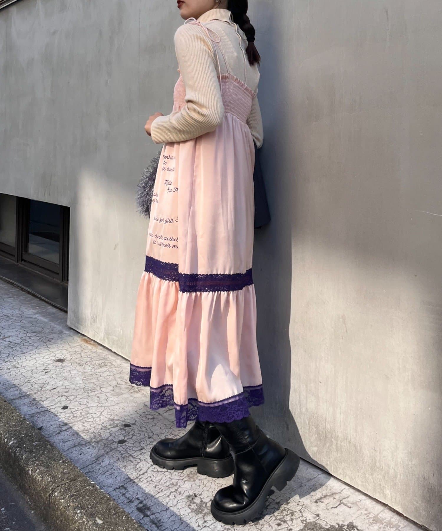 肩ひも付きでワンピース風の着こなしもできるマルチウェイスカート◎