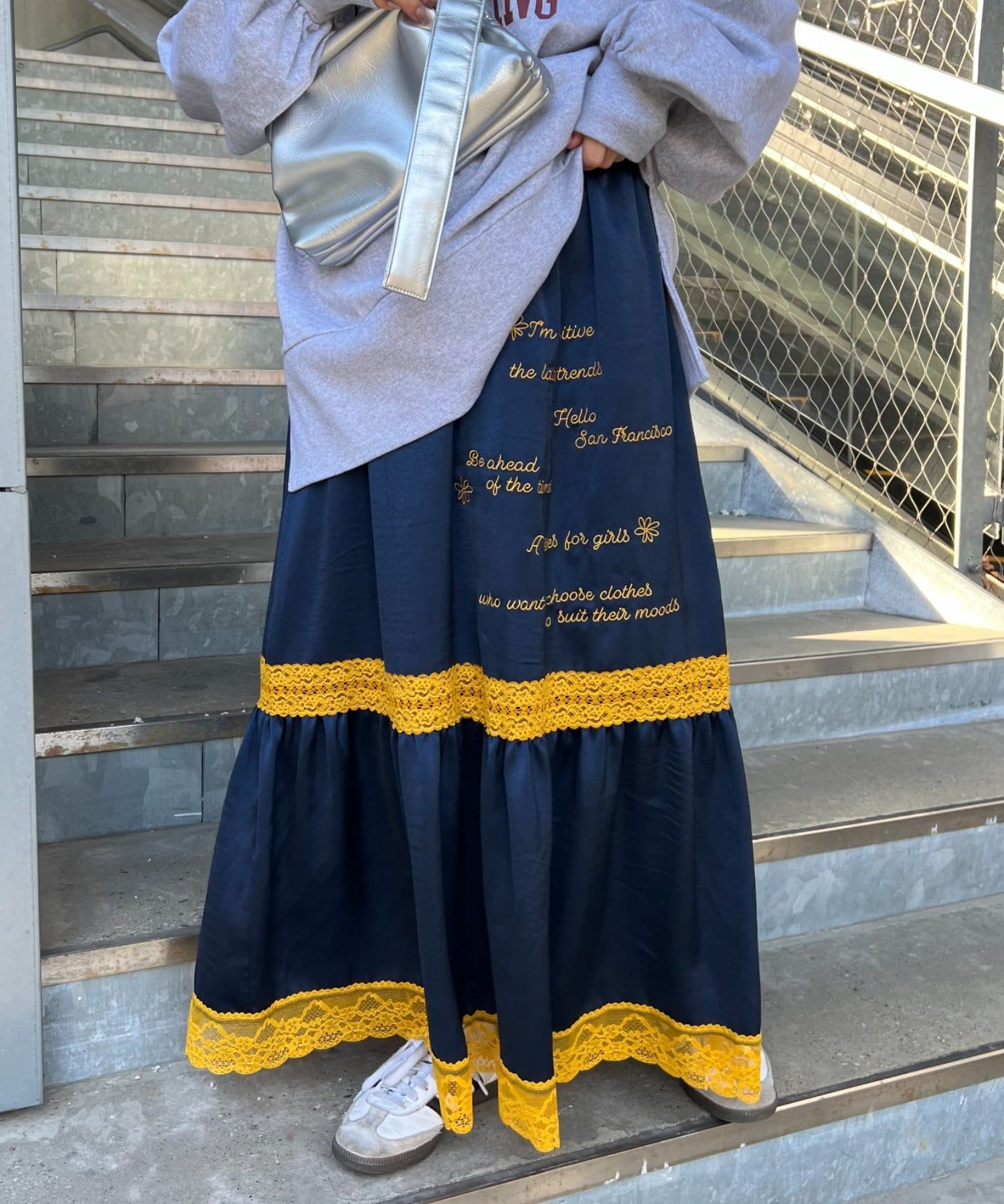 【HELLO.SANFRANCISCO】2WAYサテン刺繍レーススカート