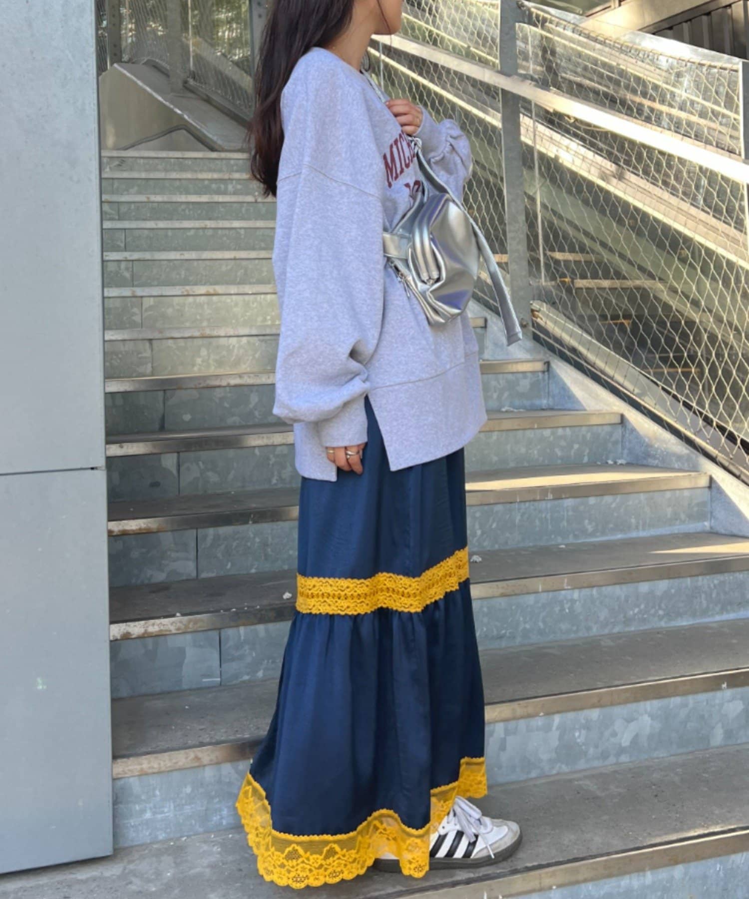 秋冬はニットやスウェットなど合わせたスタイルがオススメ。