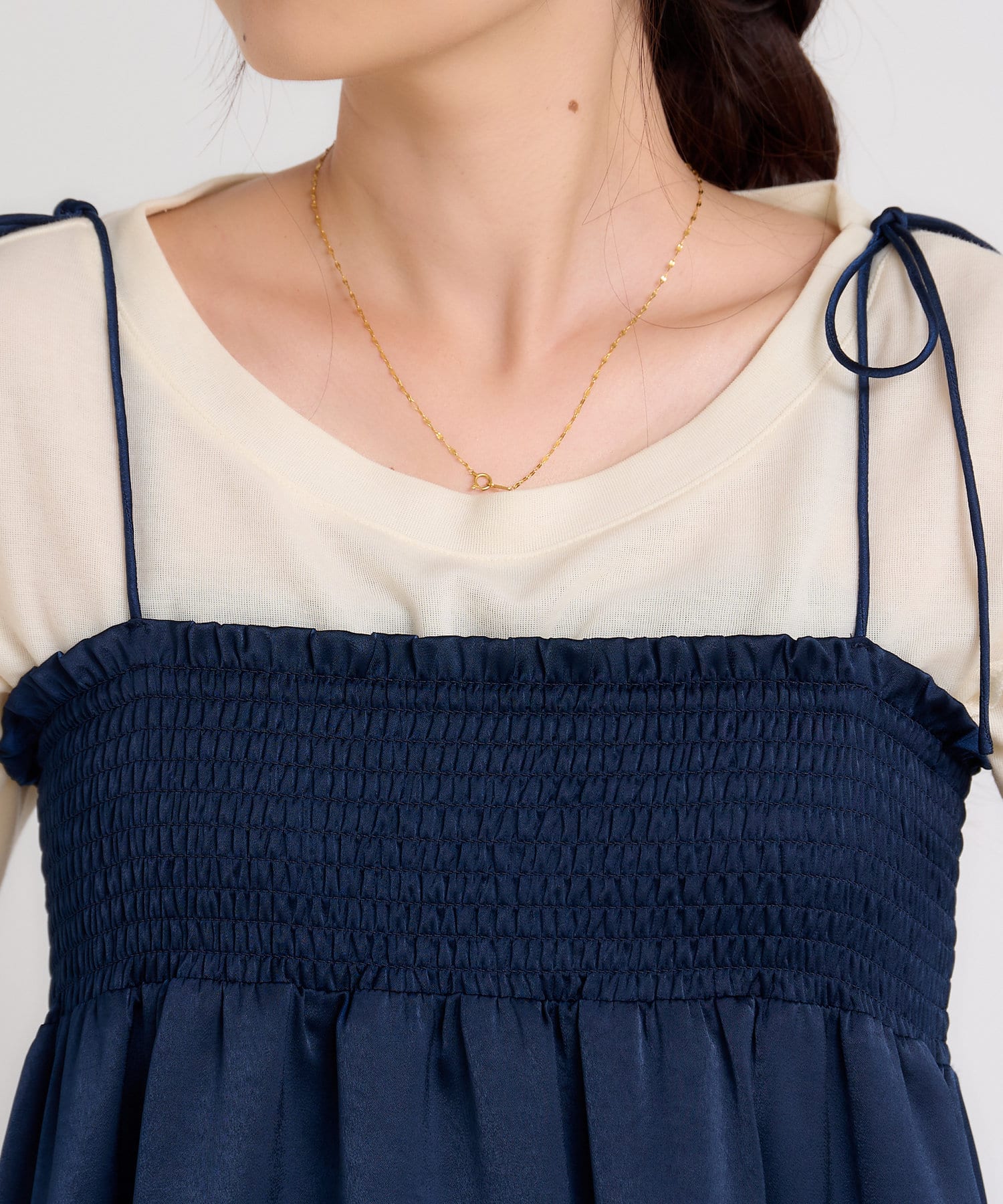 肩ひも付きでマルチな着こなしができる万能アイテム♩