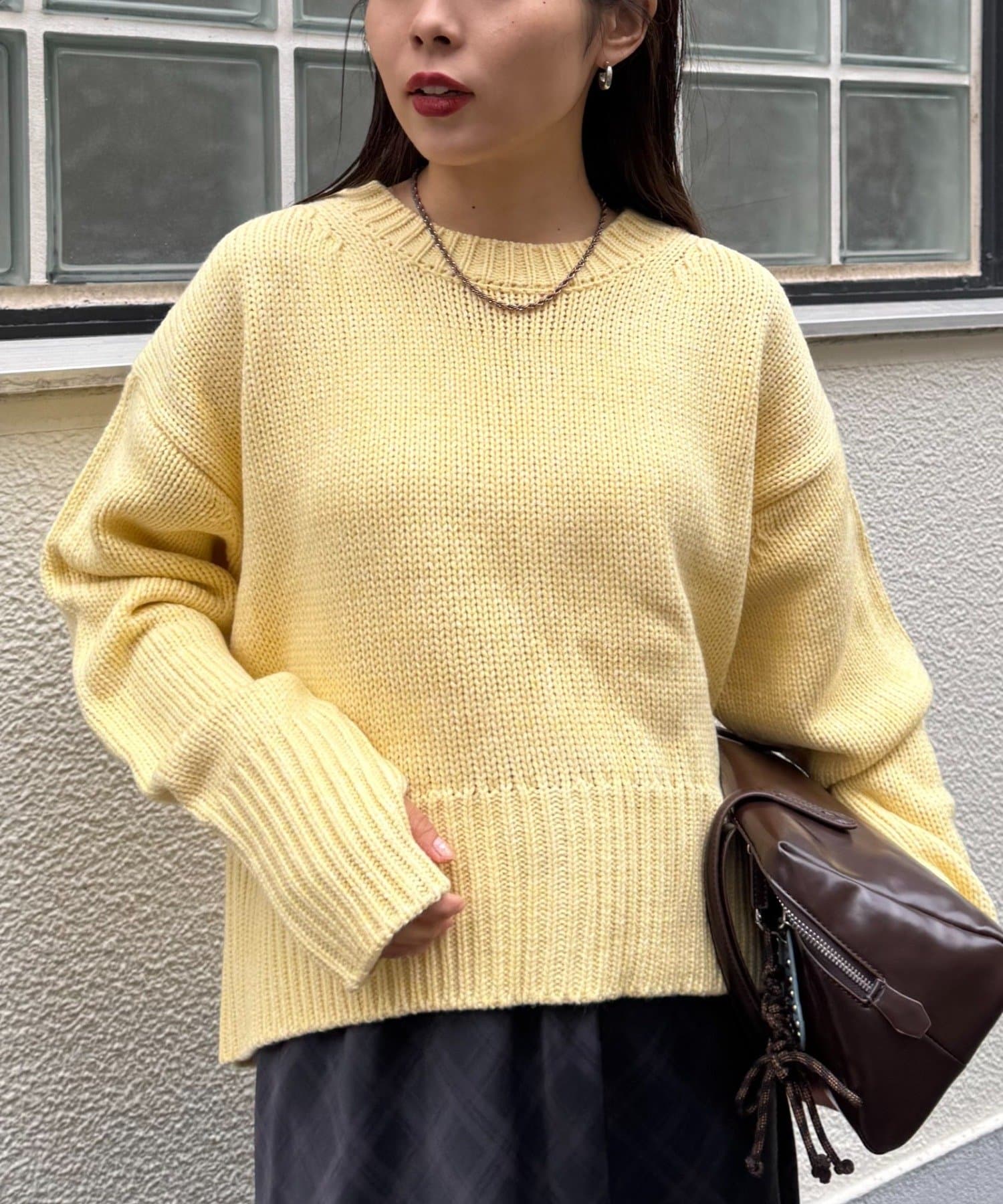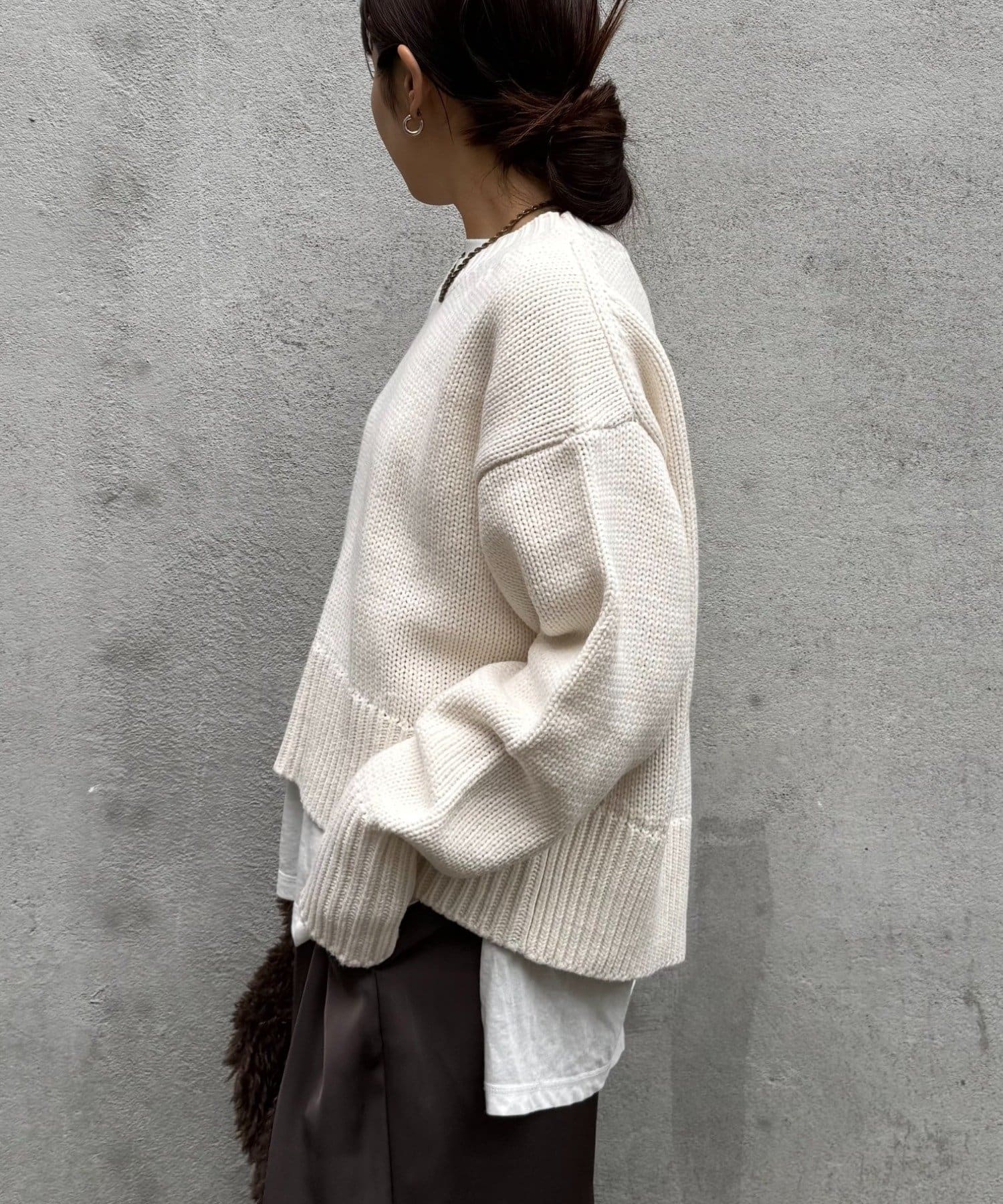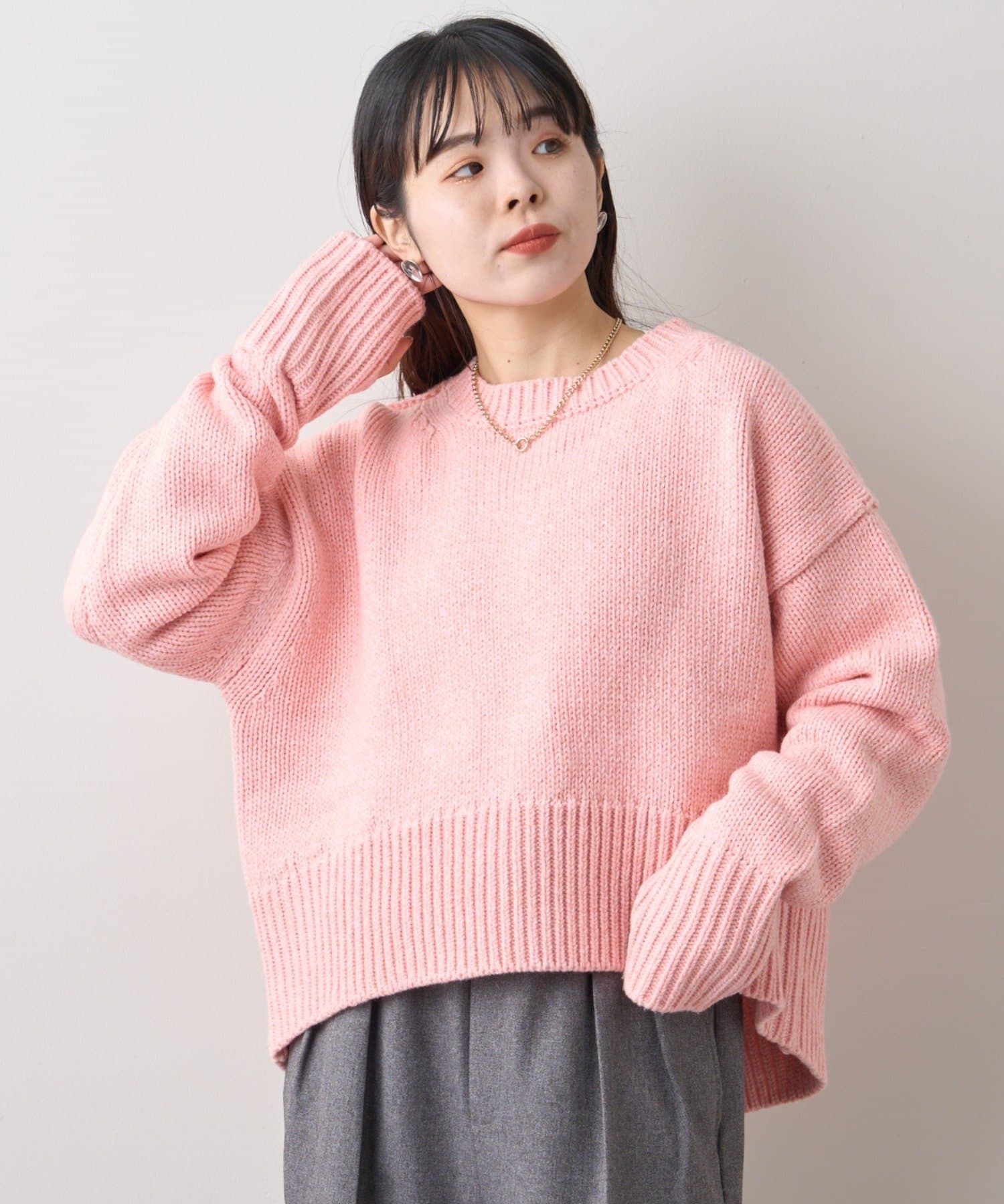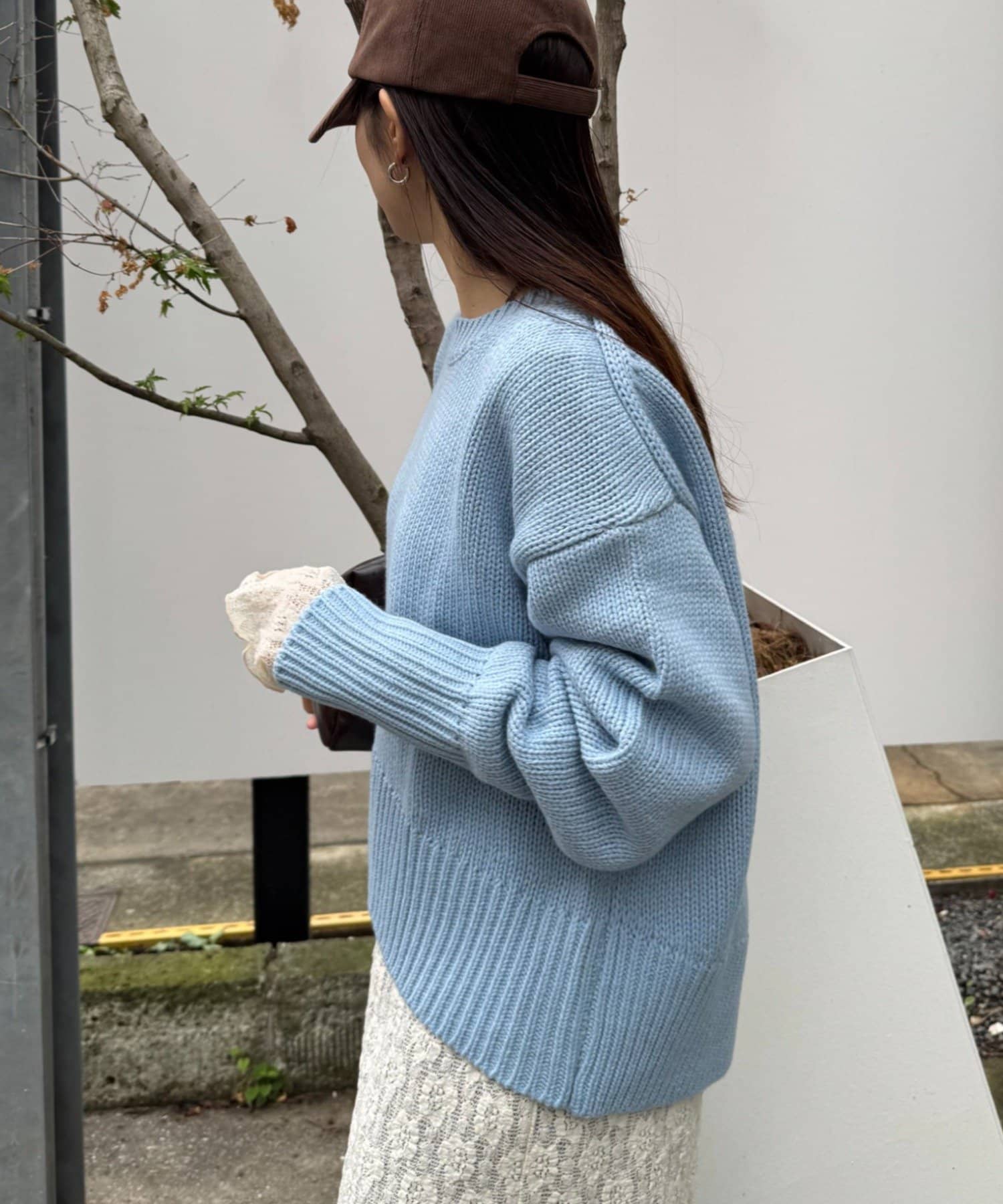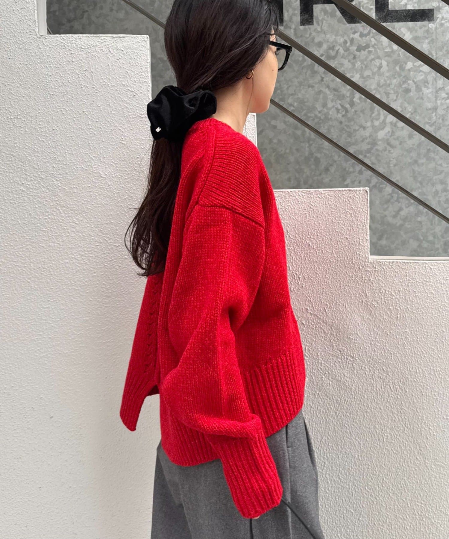 ゆったりとしたサイズ感で今っぽい、レディライクな印象のニット。