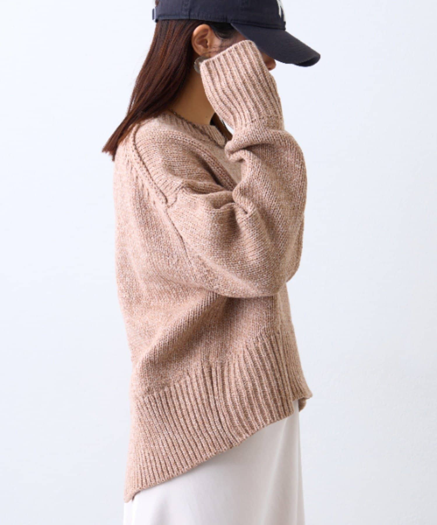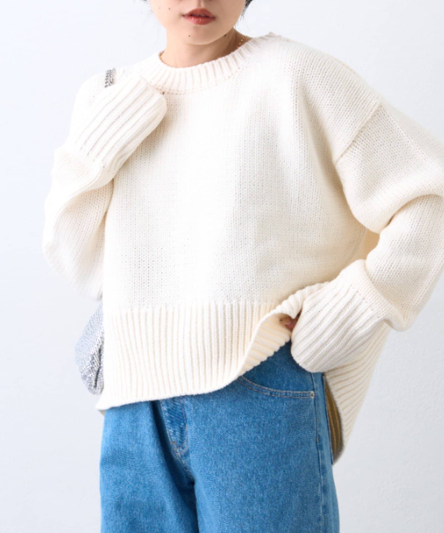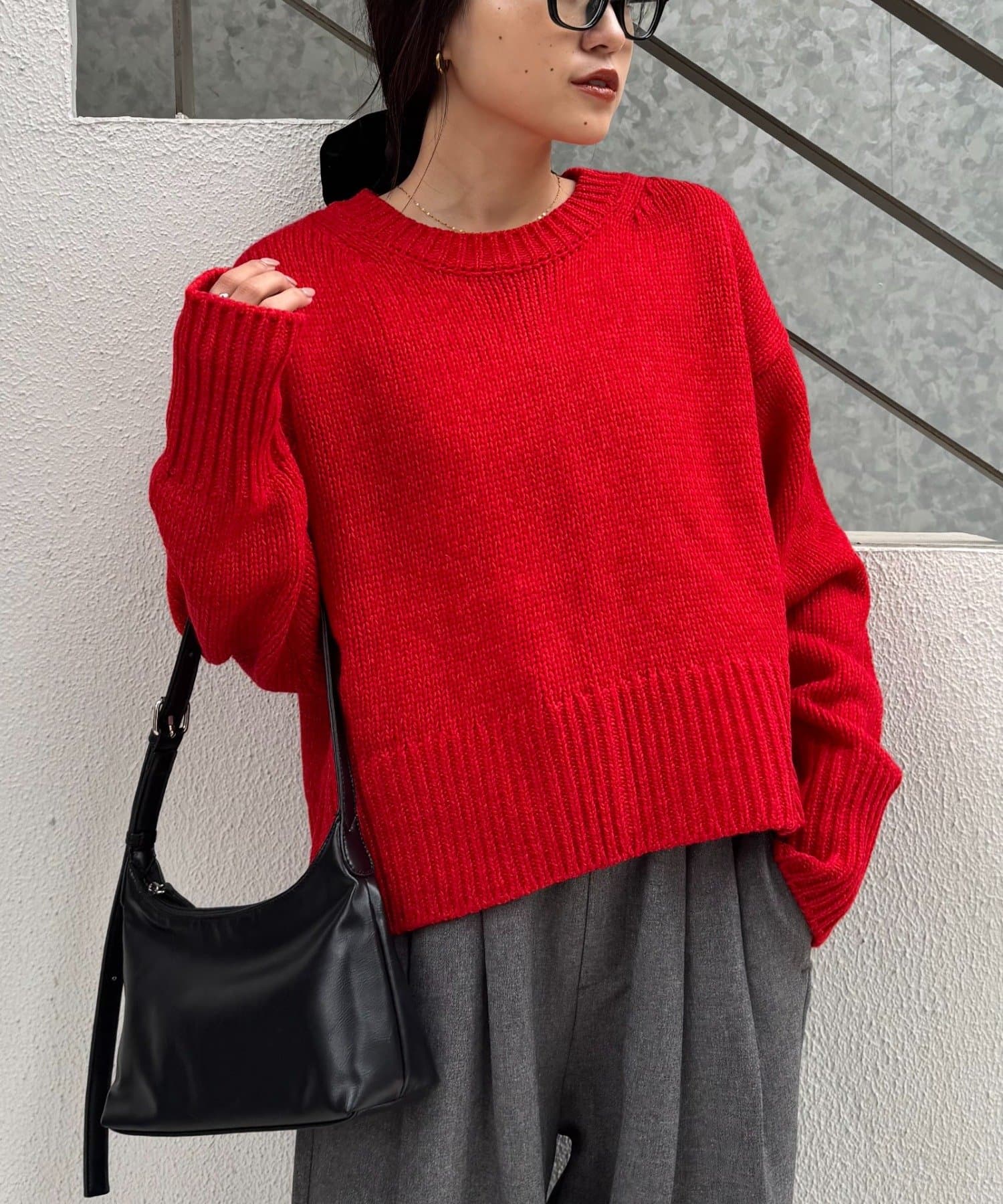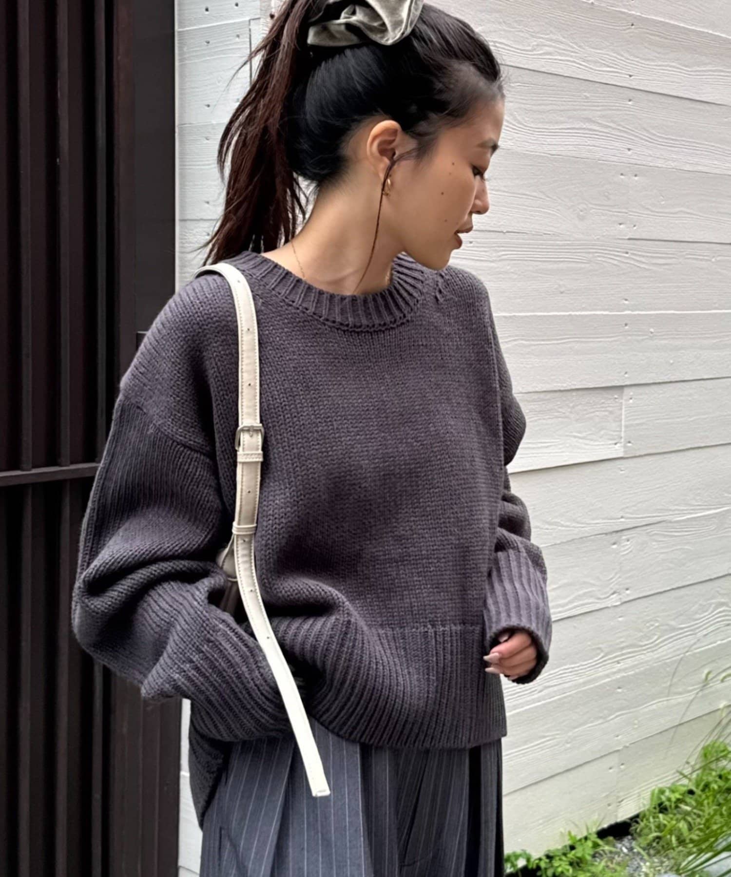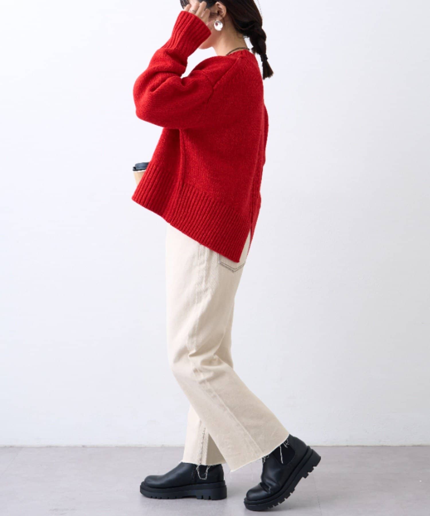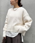 ゆったりとしたサイズ感で今っぽい、レディライクな印象のニット。