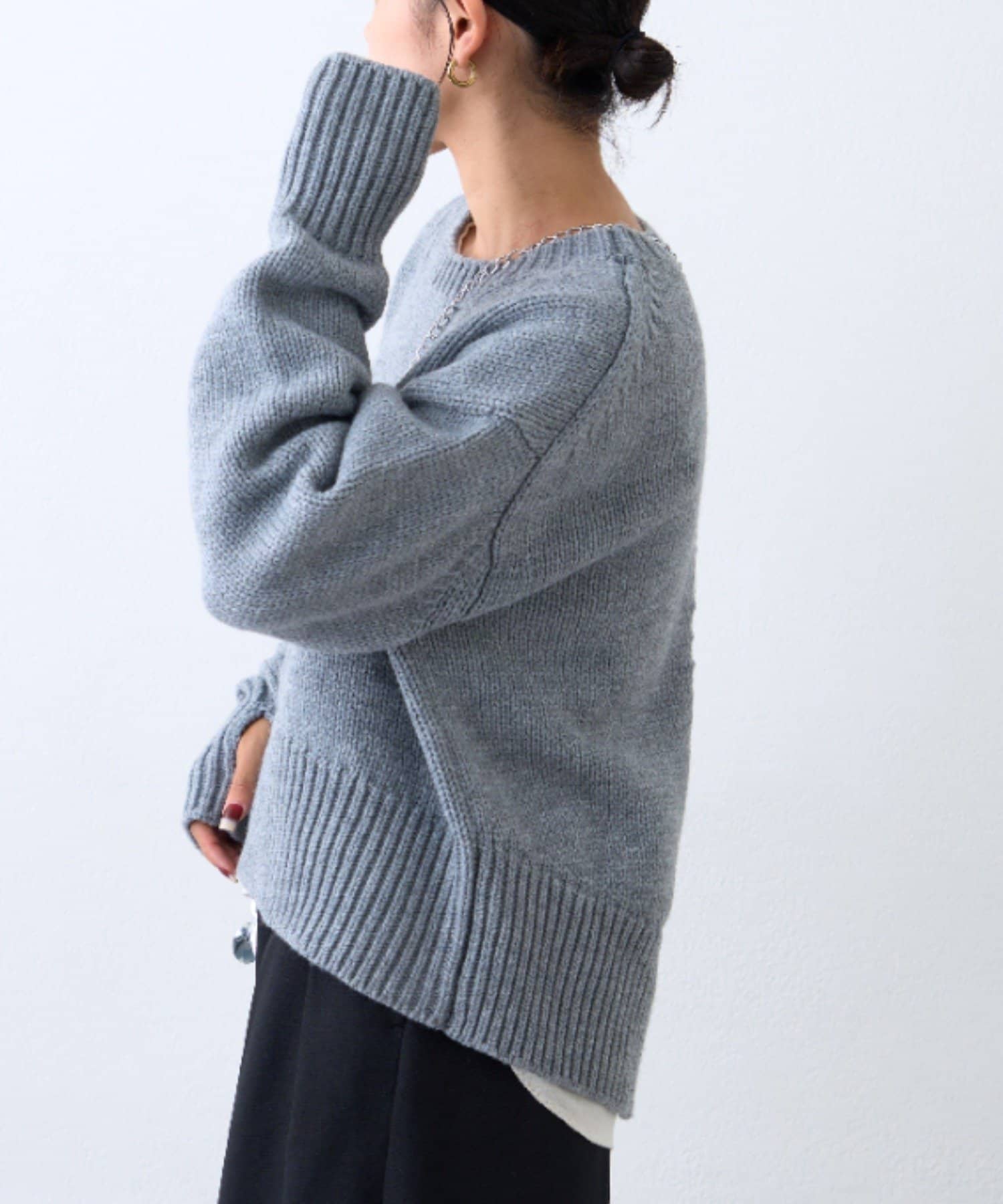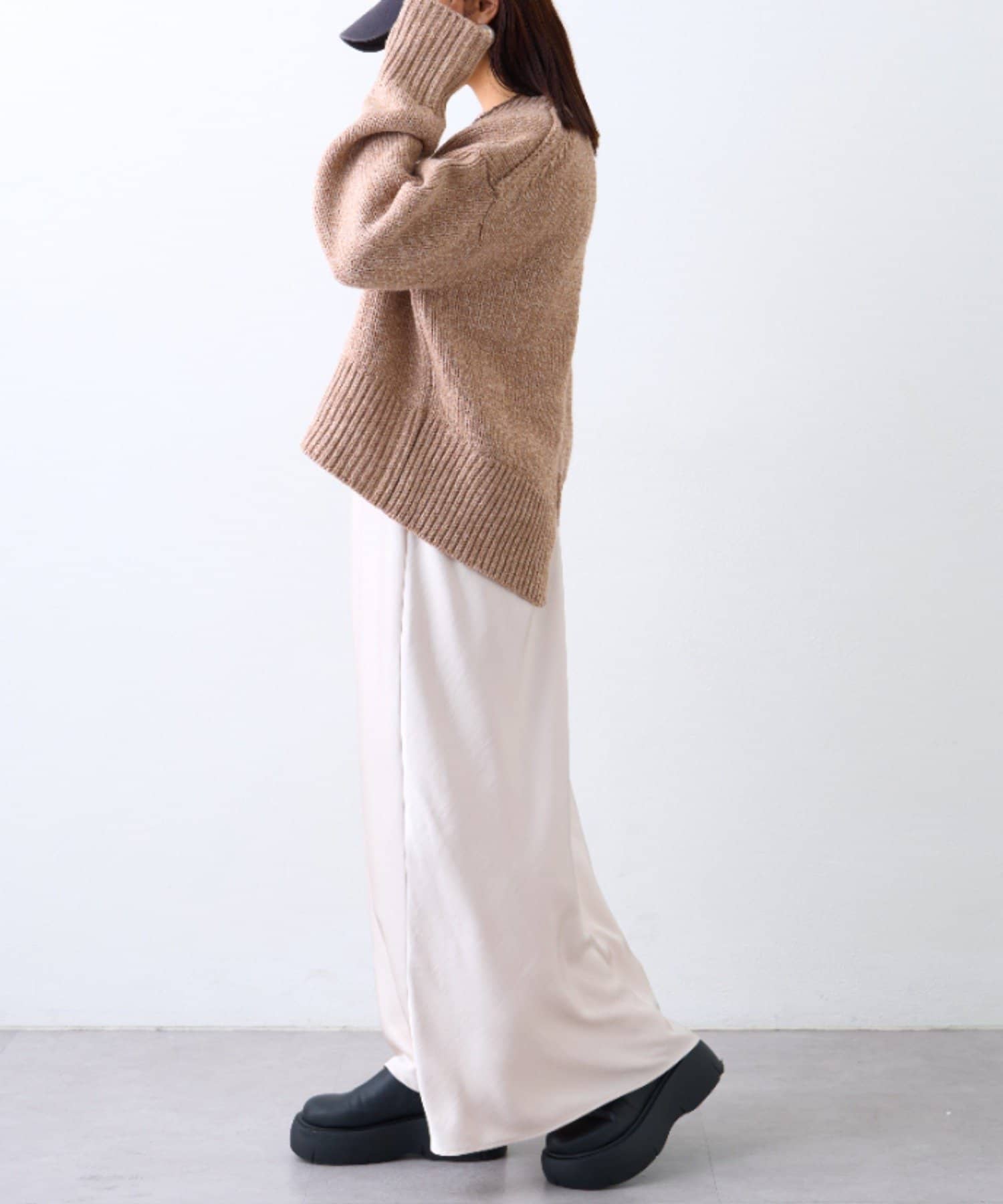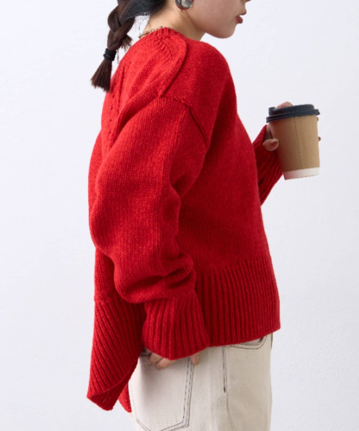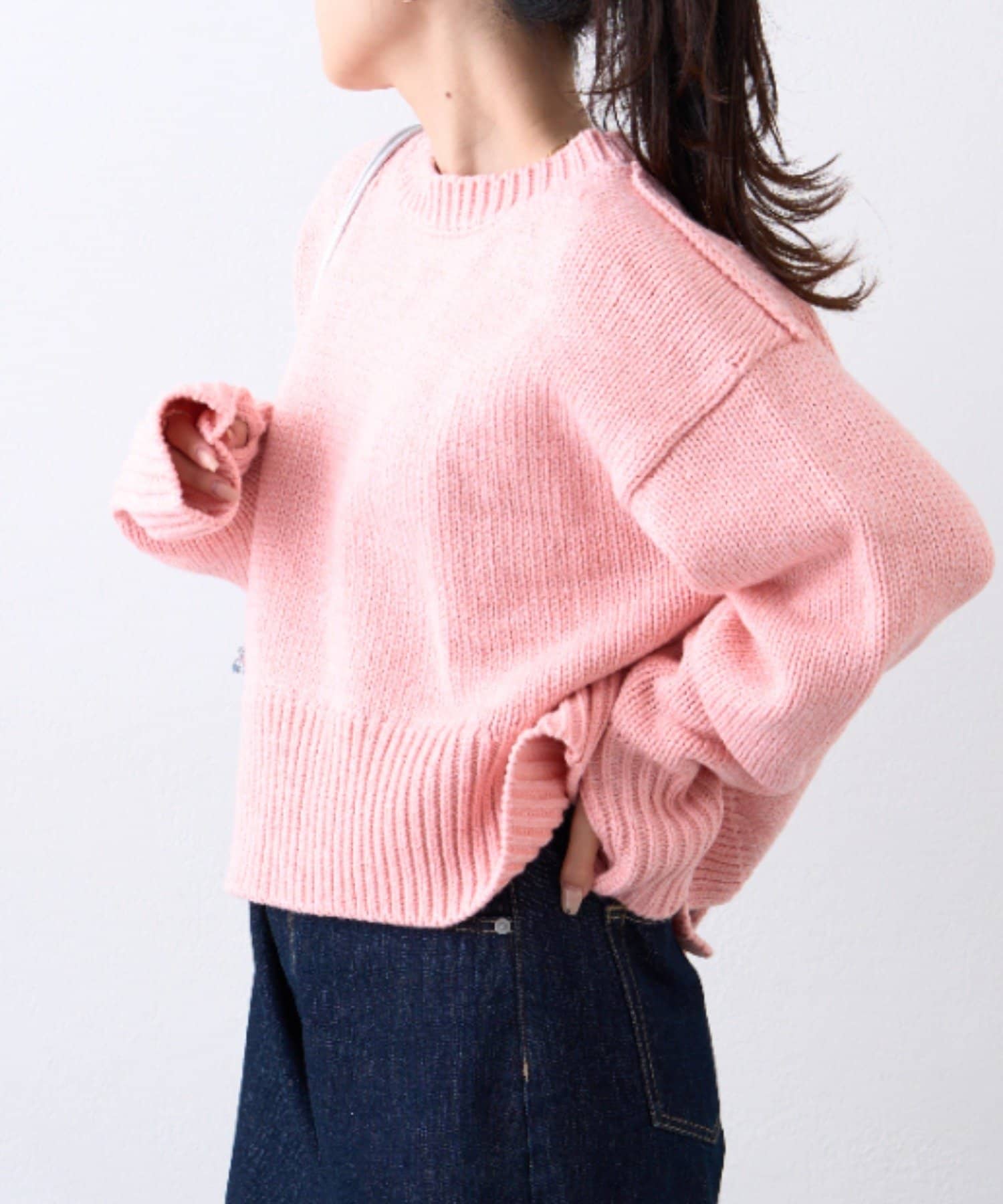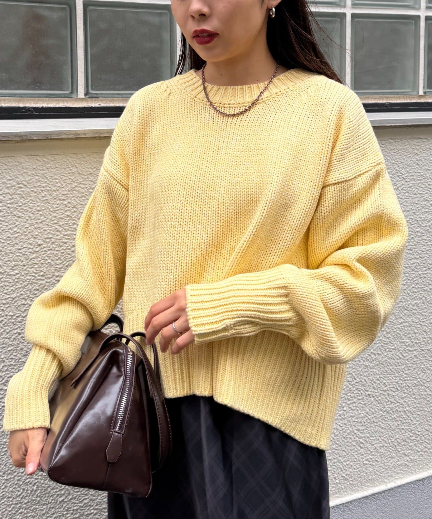 ゆったりとしたサイズ感で今っぽい、レディライクな印象のニット。