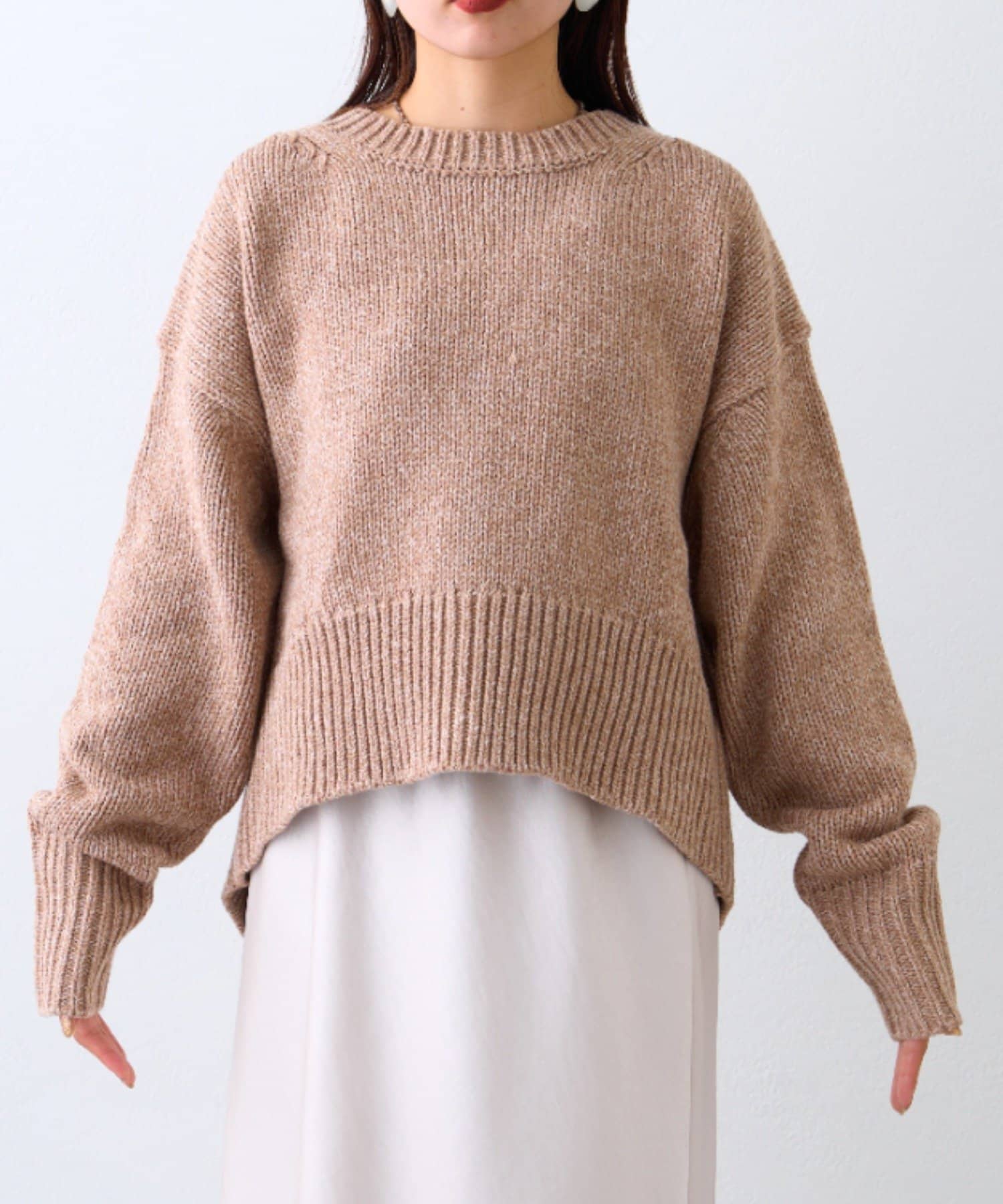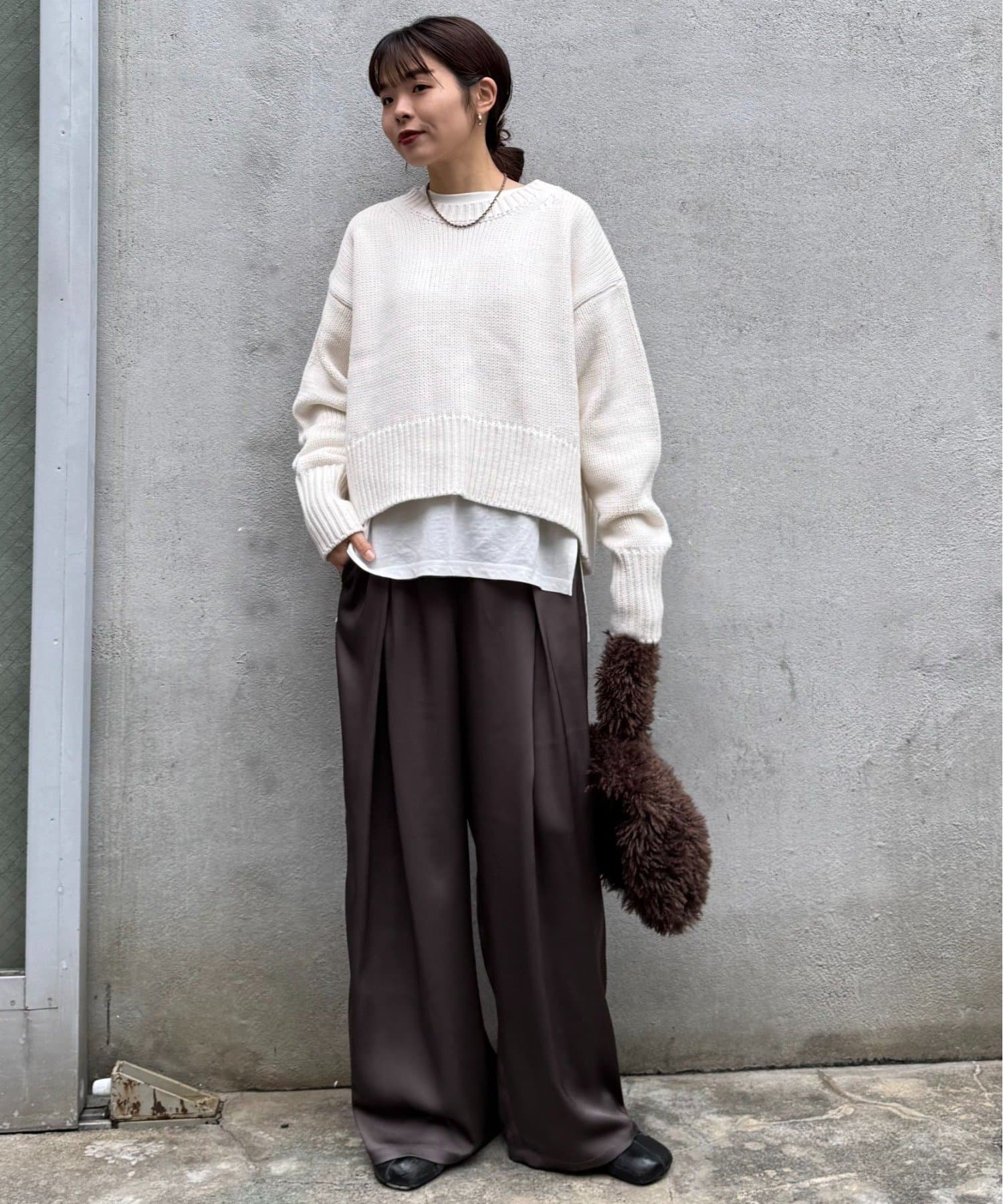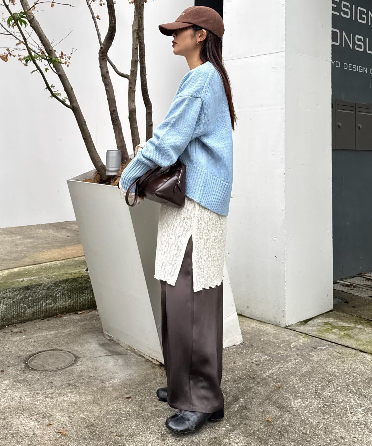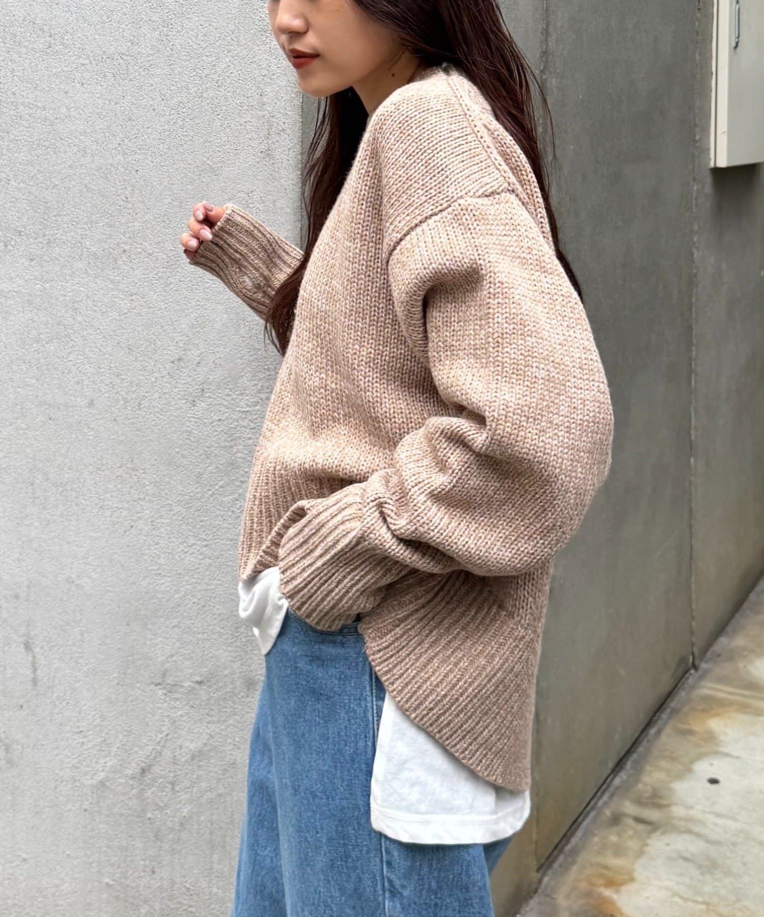 ゆったりとしたサイズ感で今っぽい、レディライクな印象のニット。