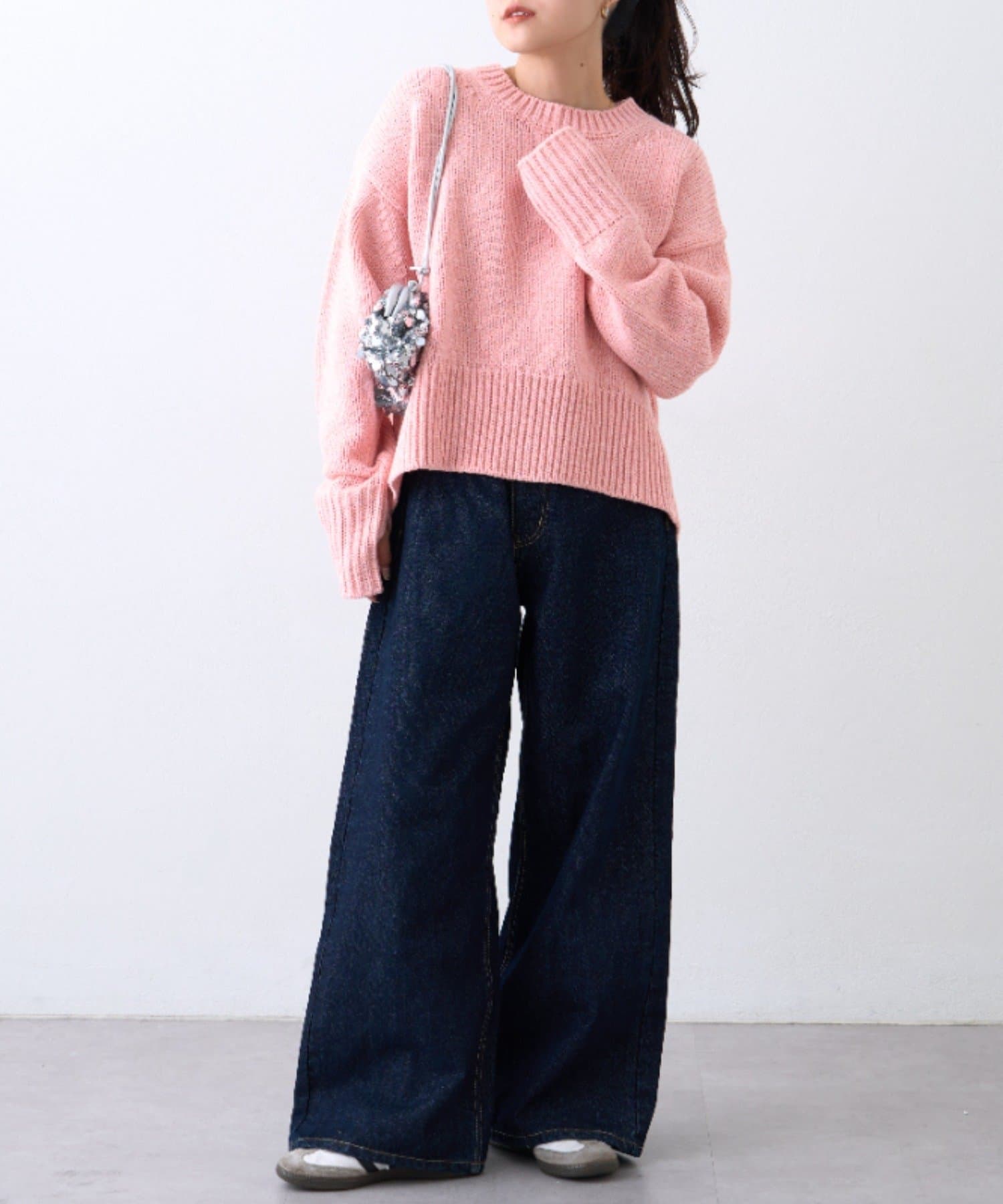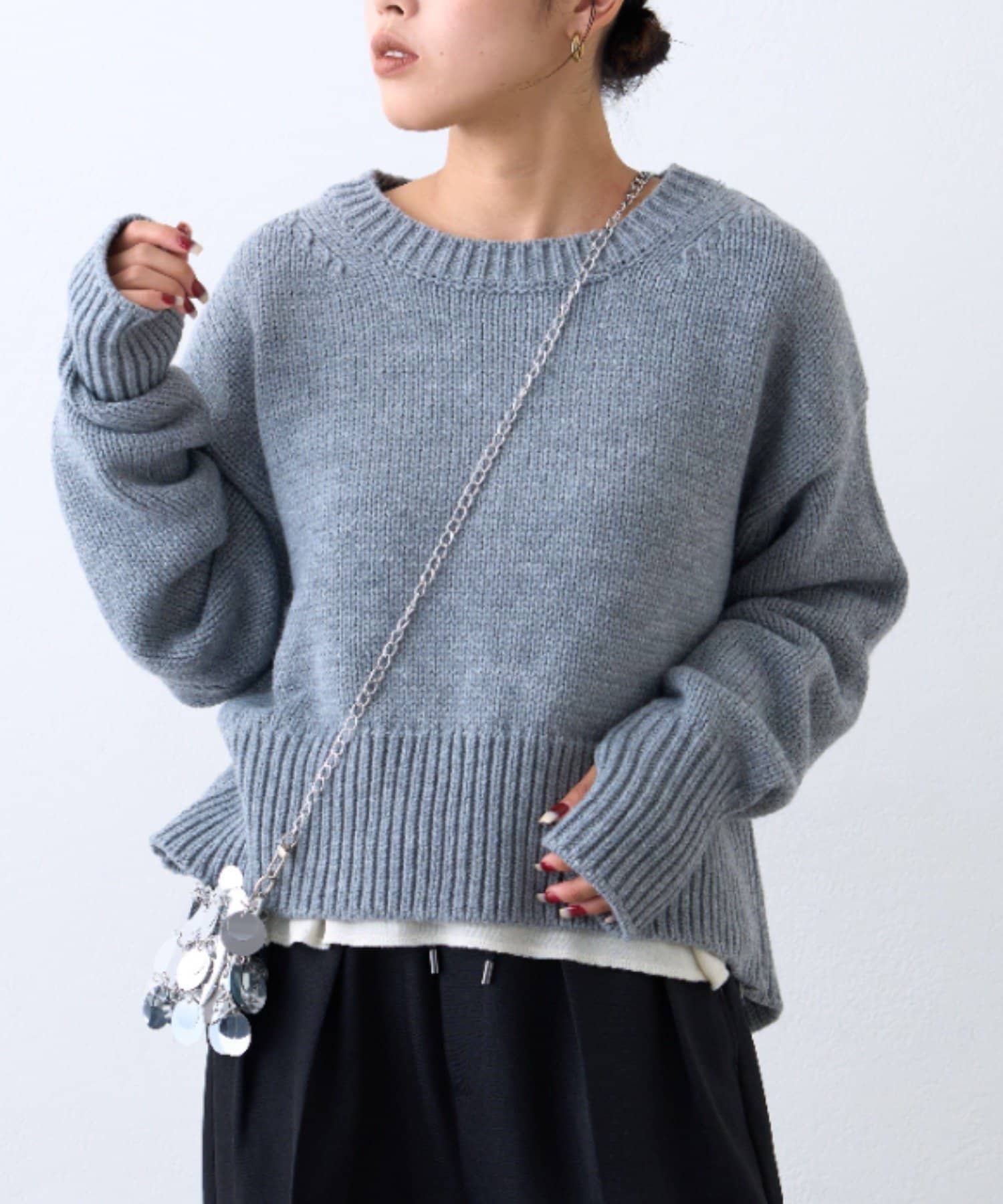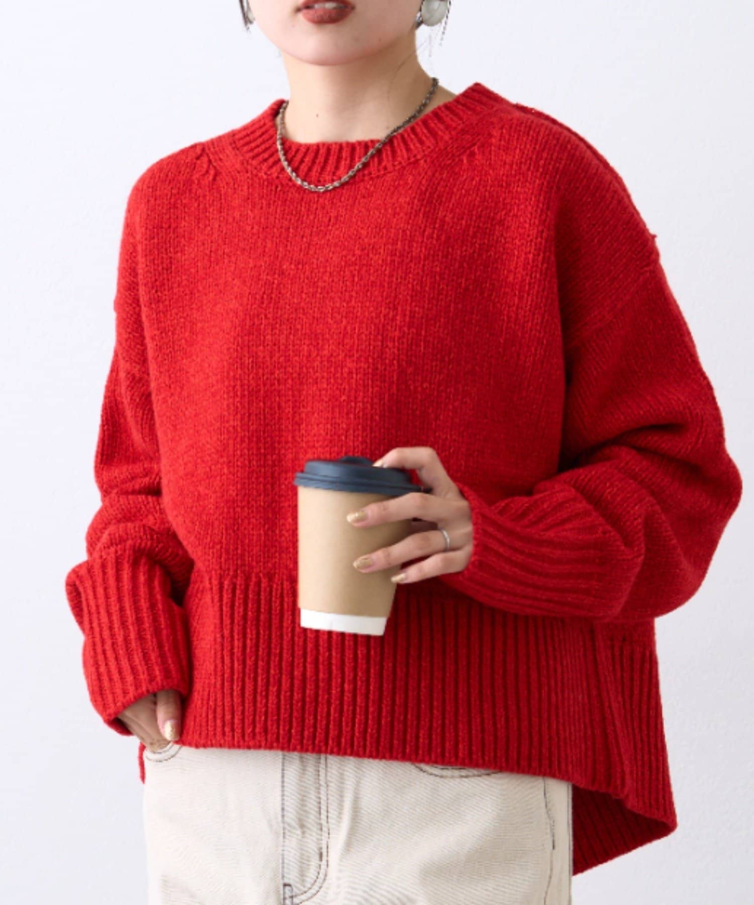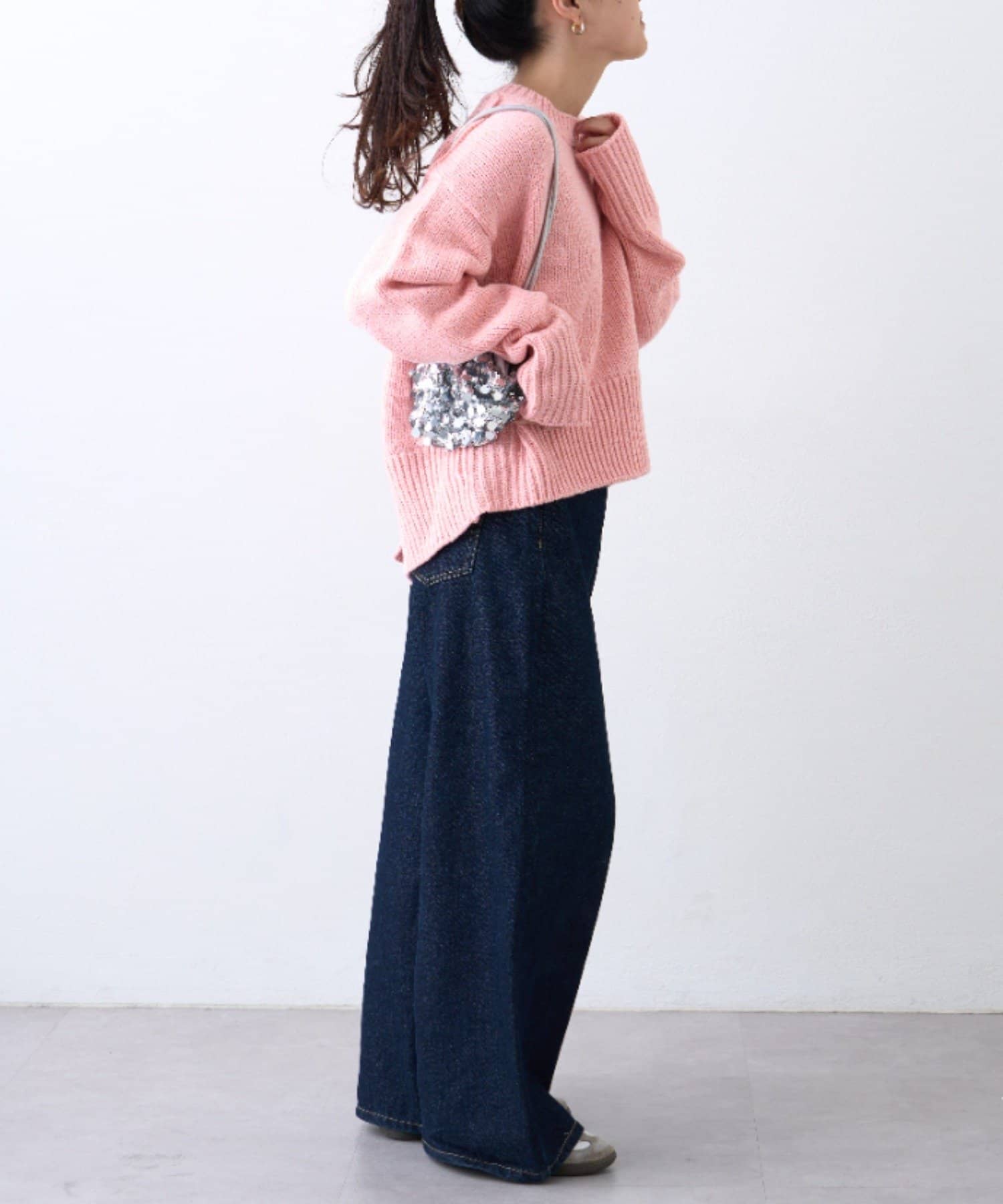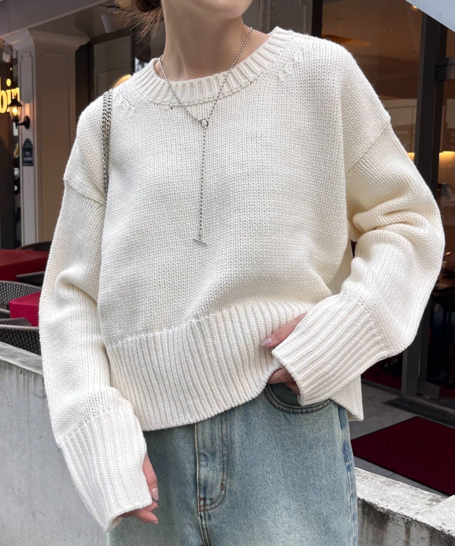 ゆったりとしたサイズ感で今っぽい、レディライクな印象のニット。