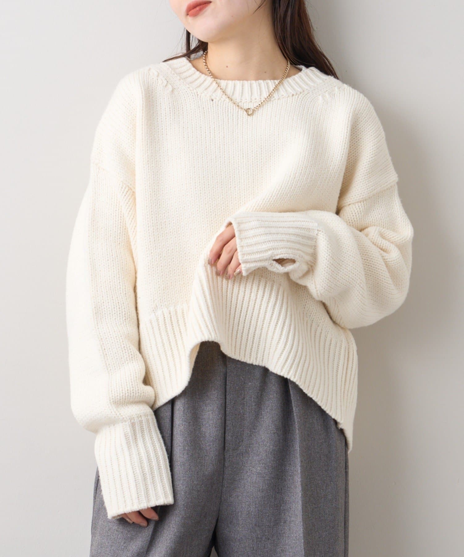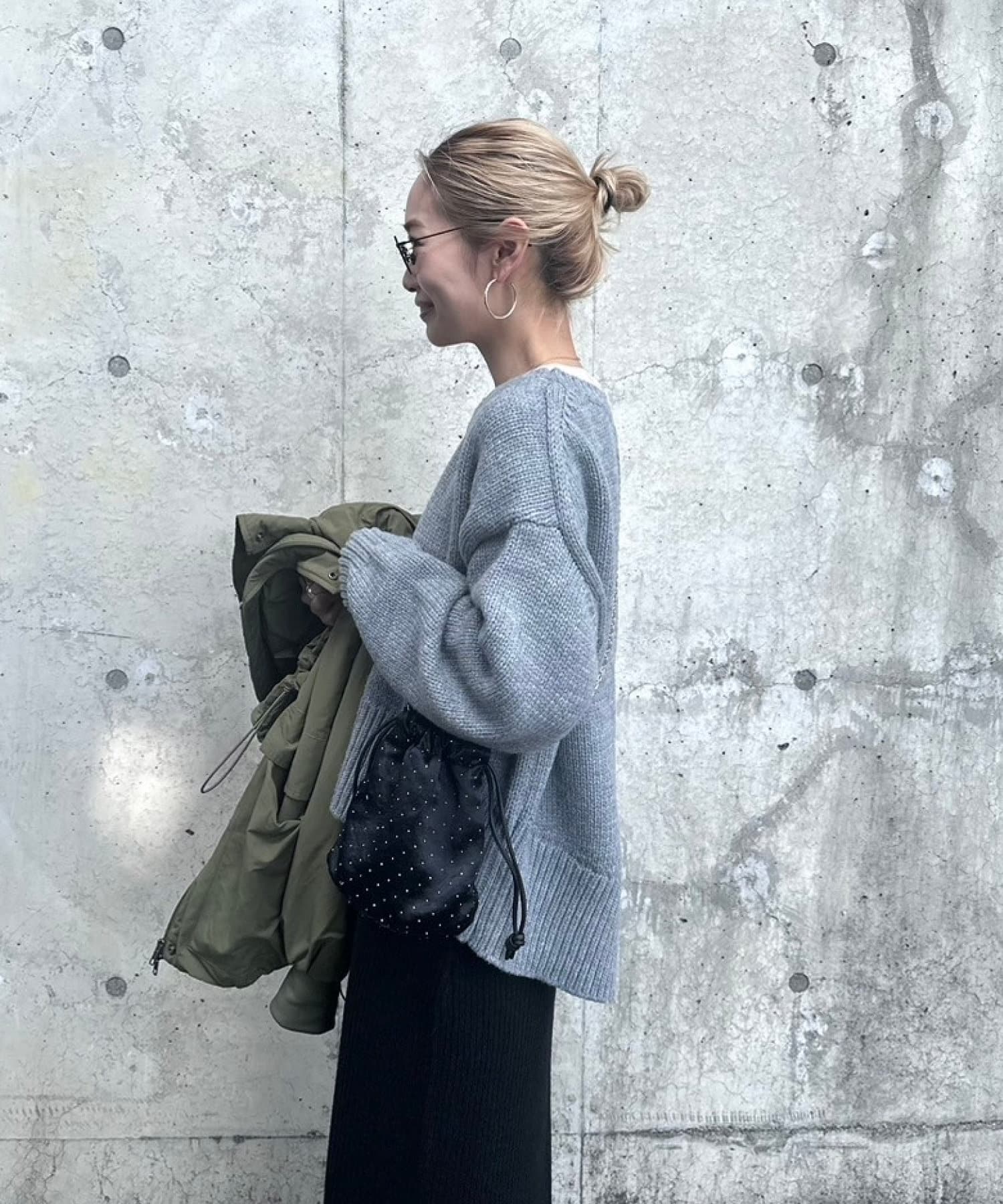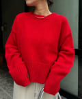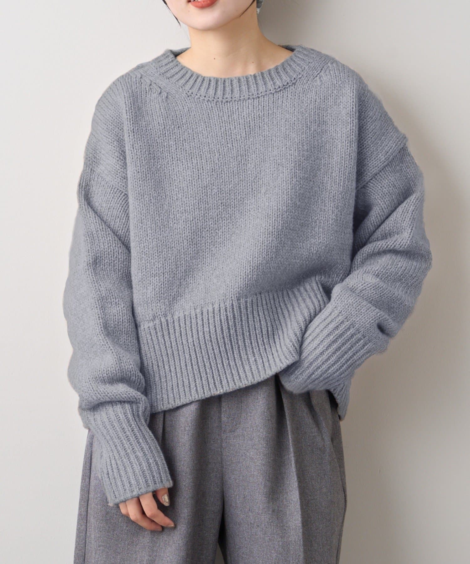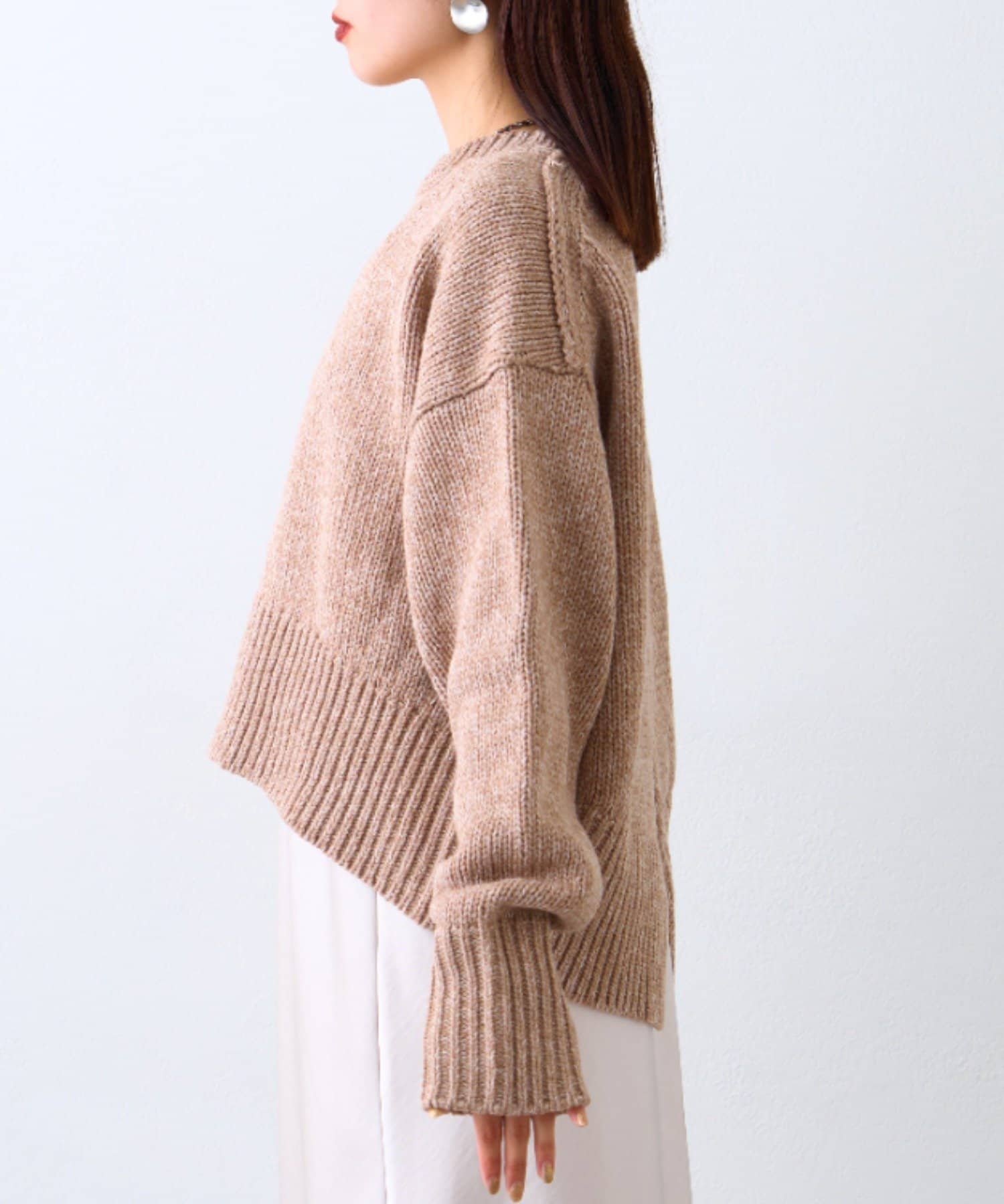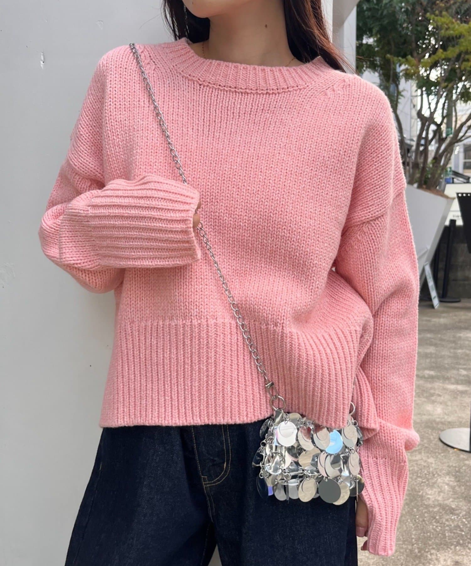 ゆったりとしたサイズ感で今っぽい、レディライクな印象のニット。