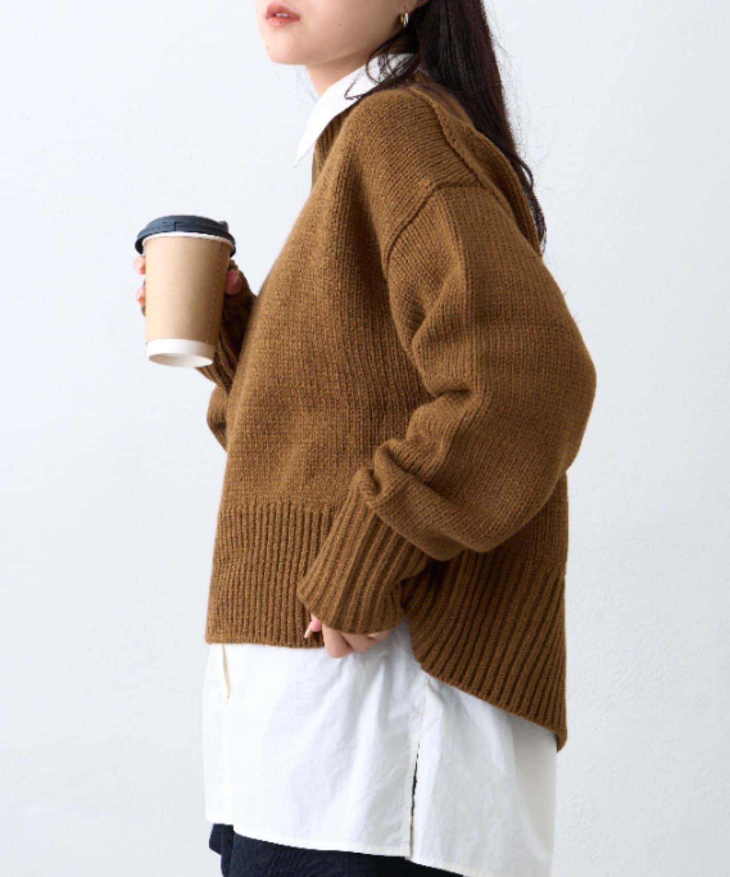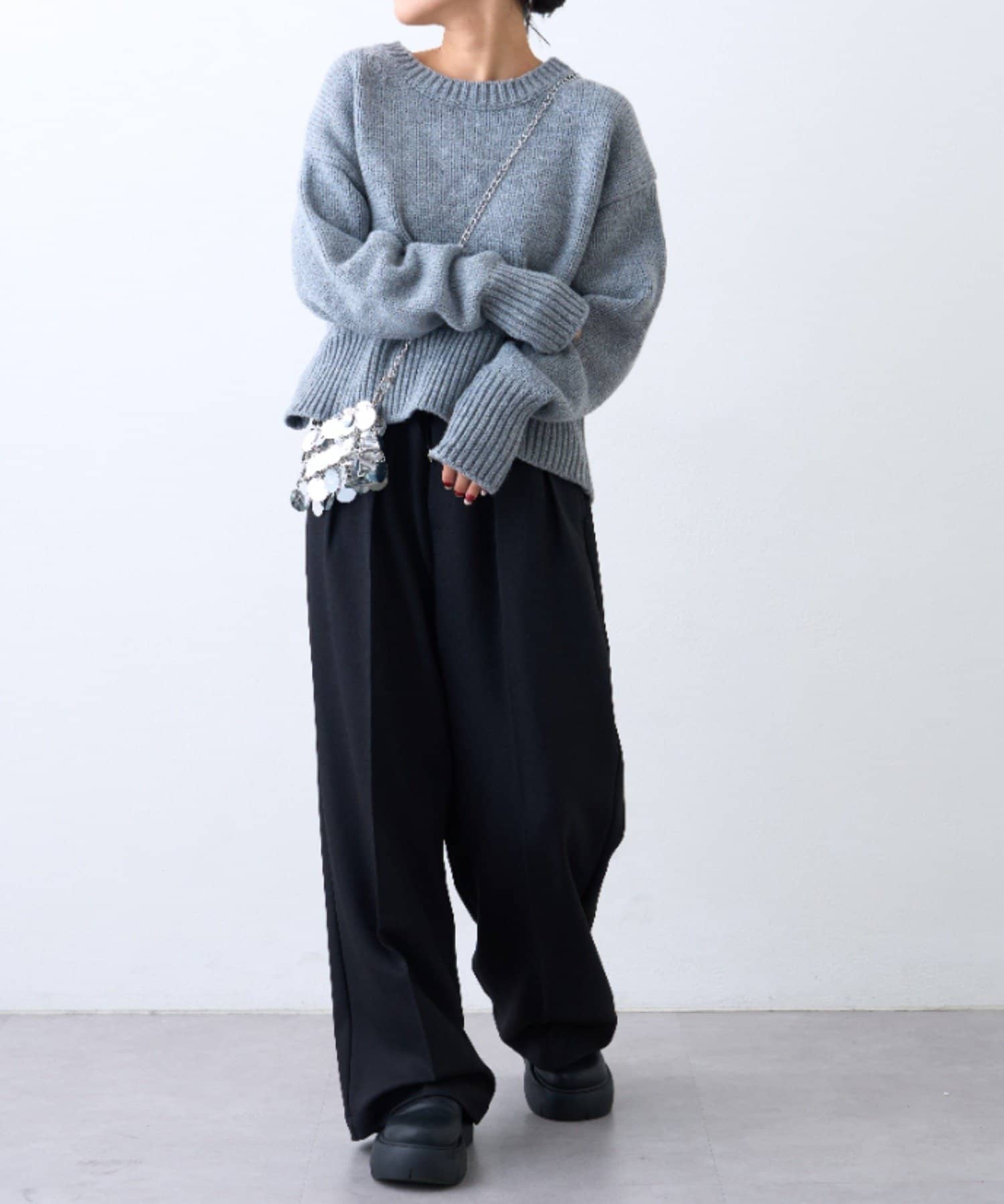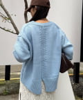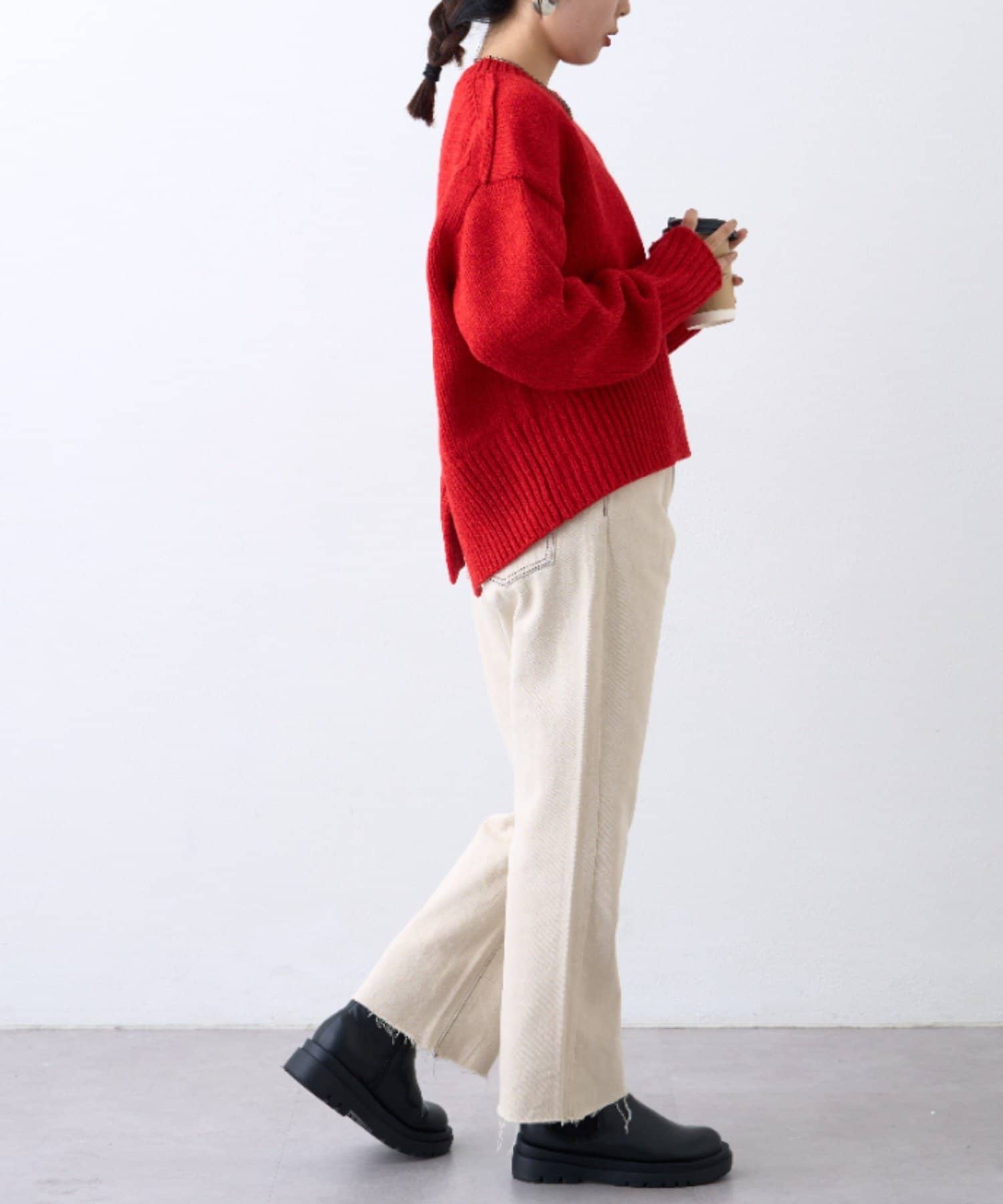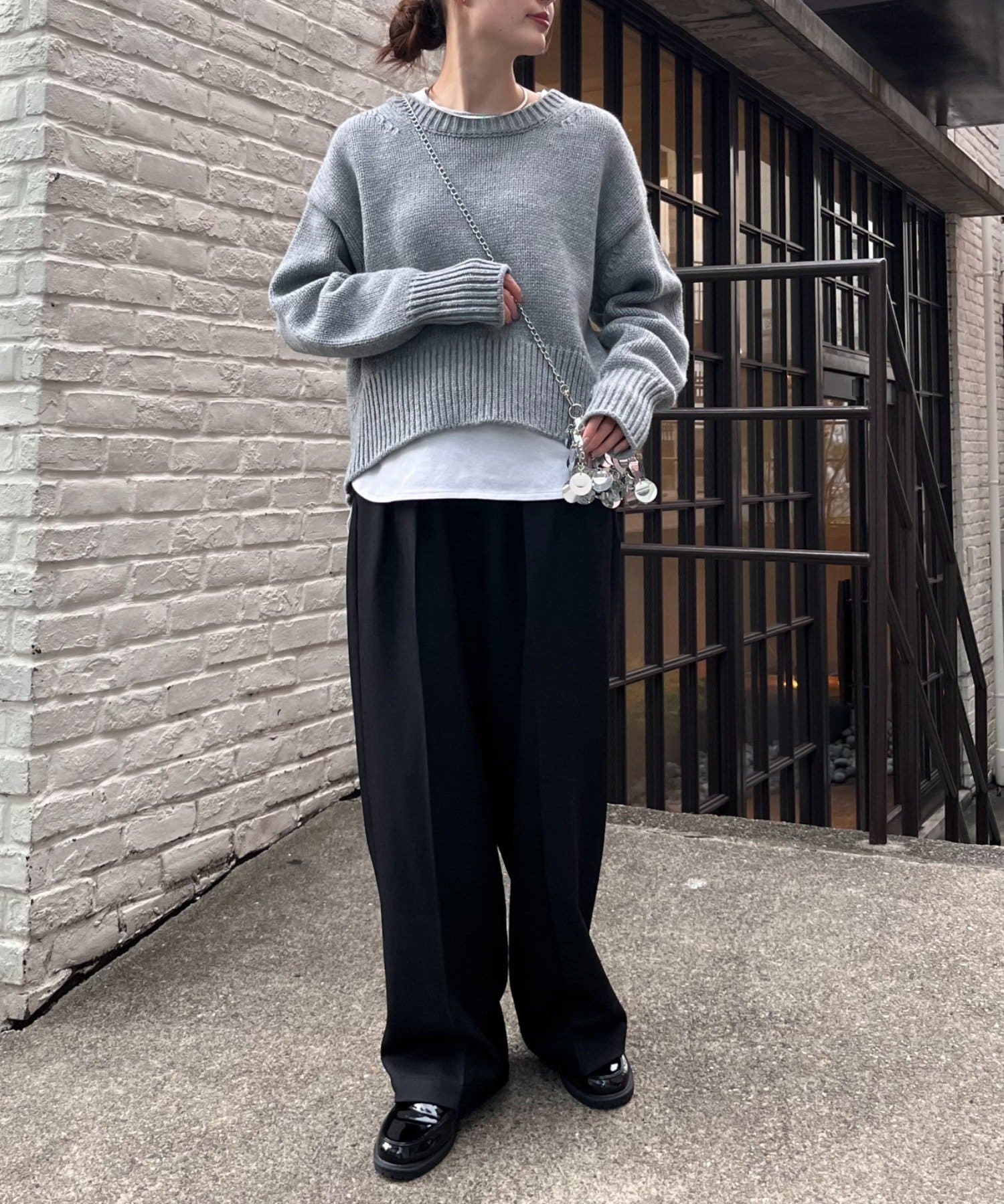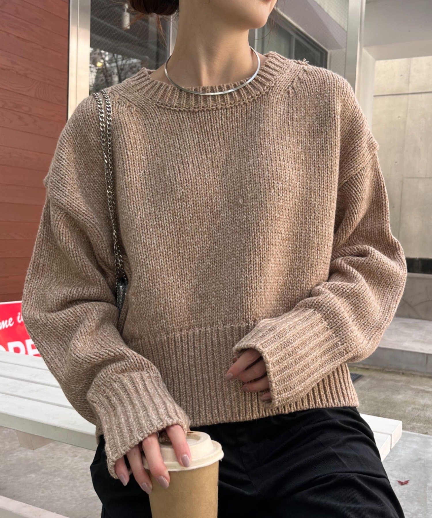ゆったりとしたサイズ感で今っぽい、レディライクな印象のニット。