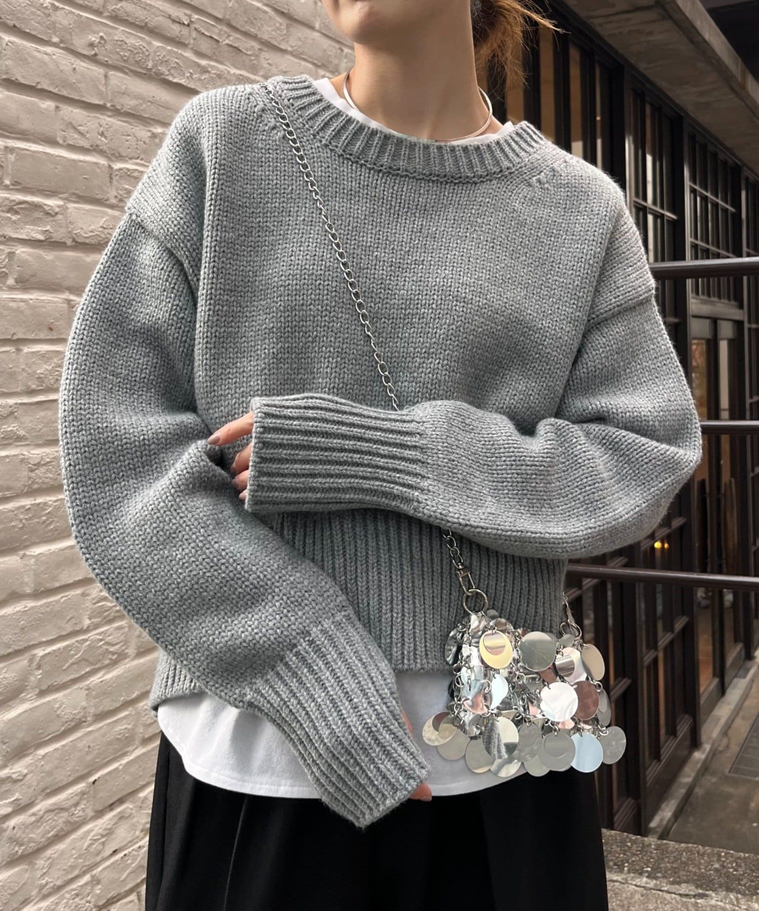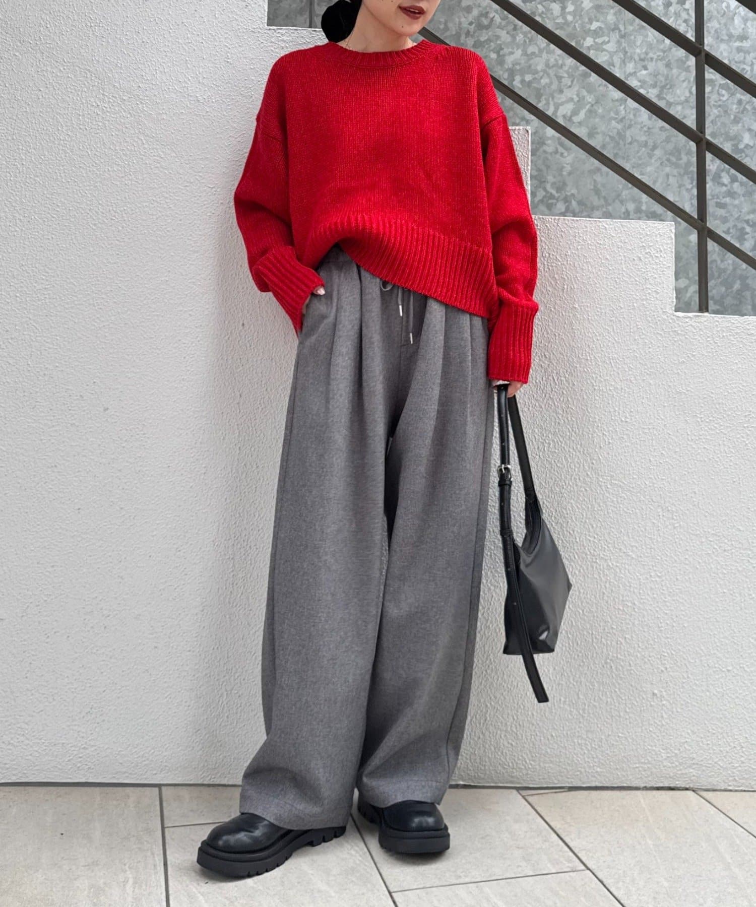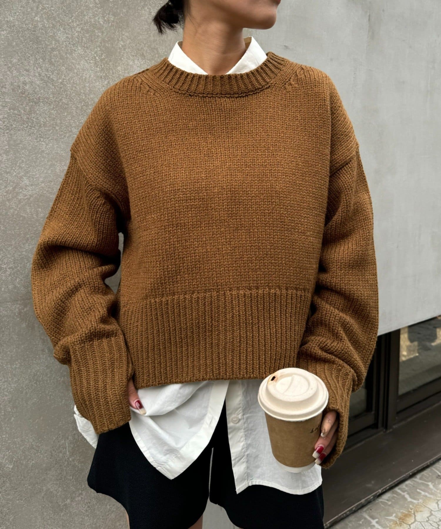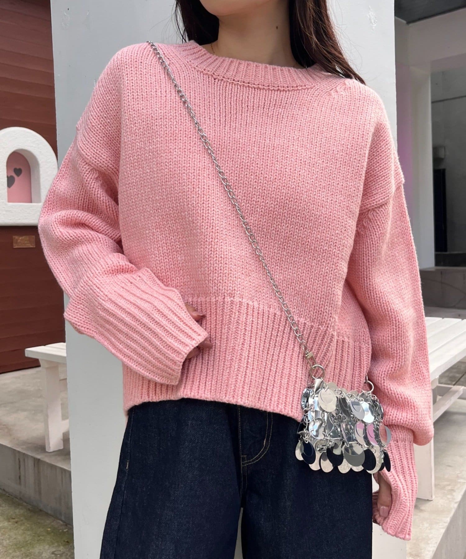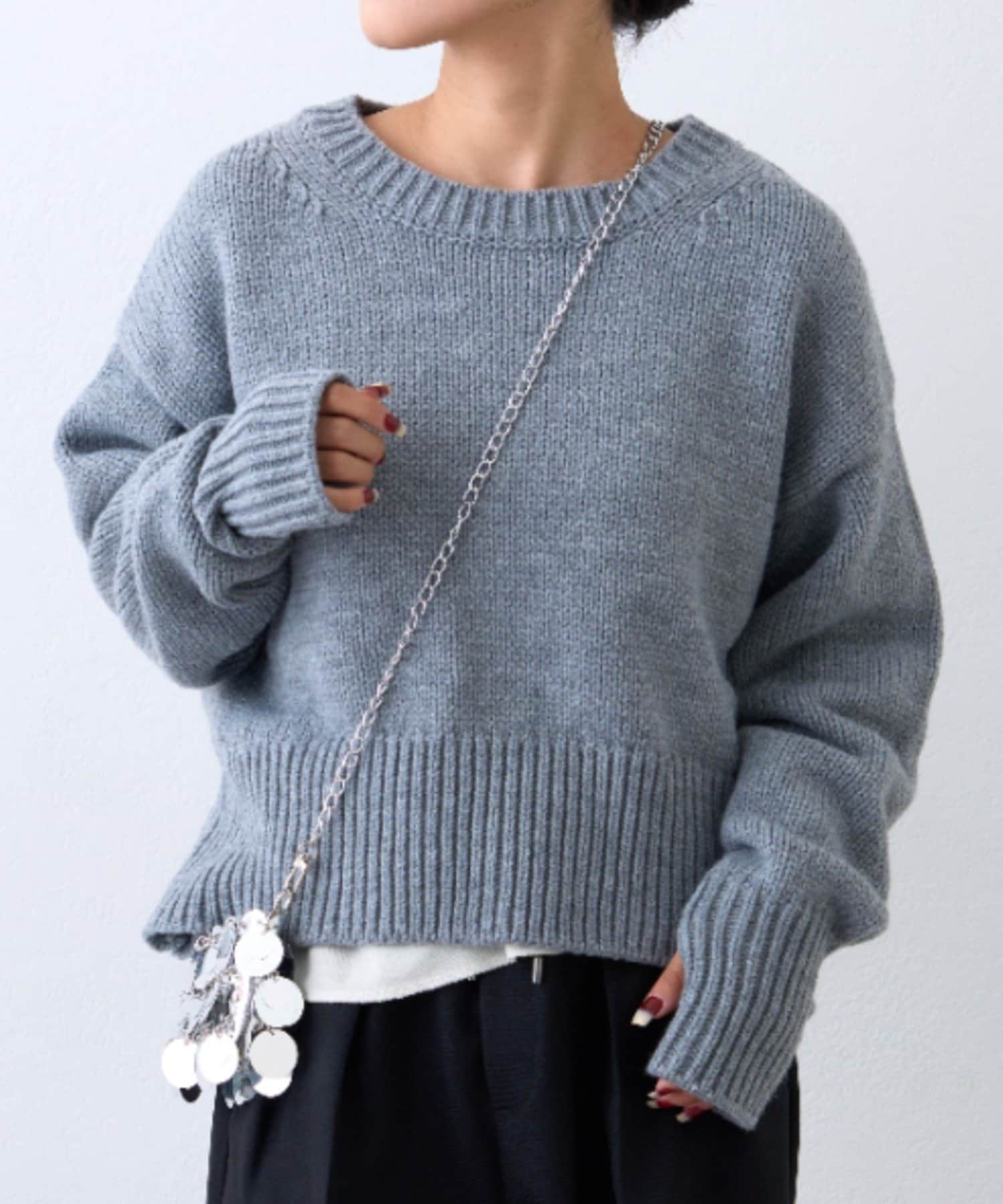 ゆったりとしたサイズ感で今っぽい、レディライクな印象のニット。