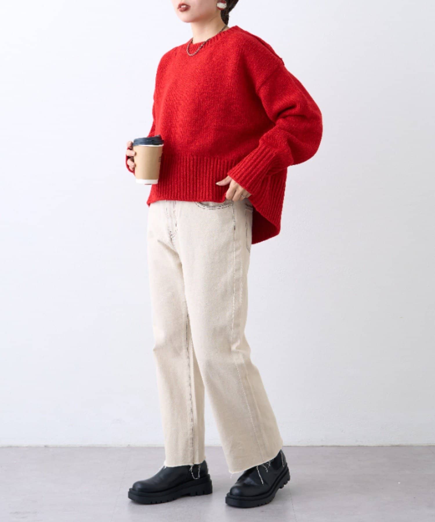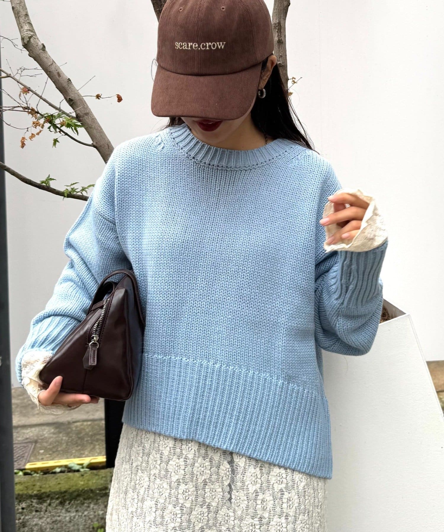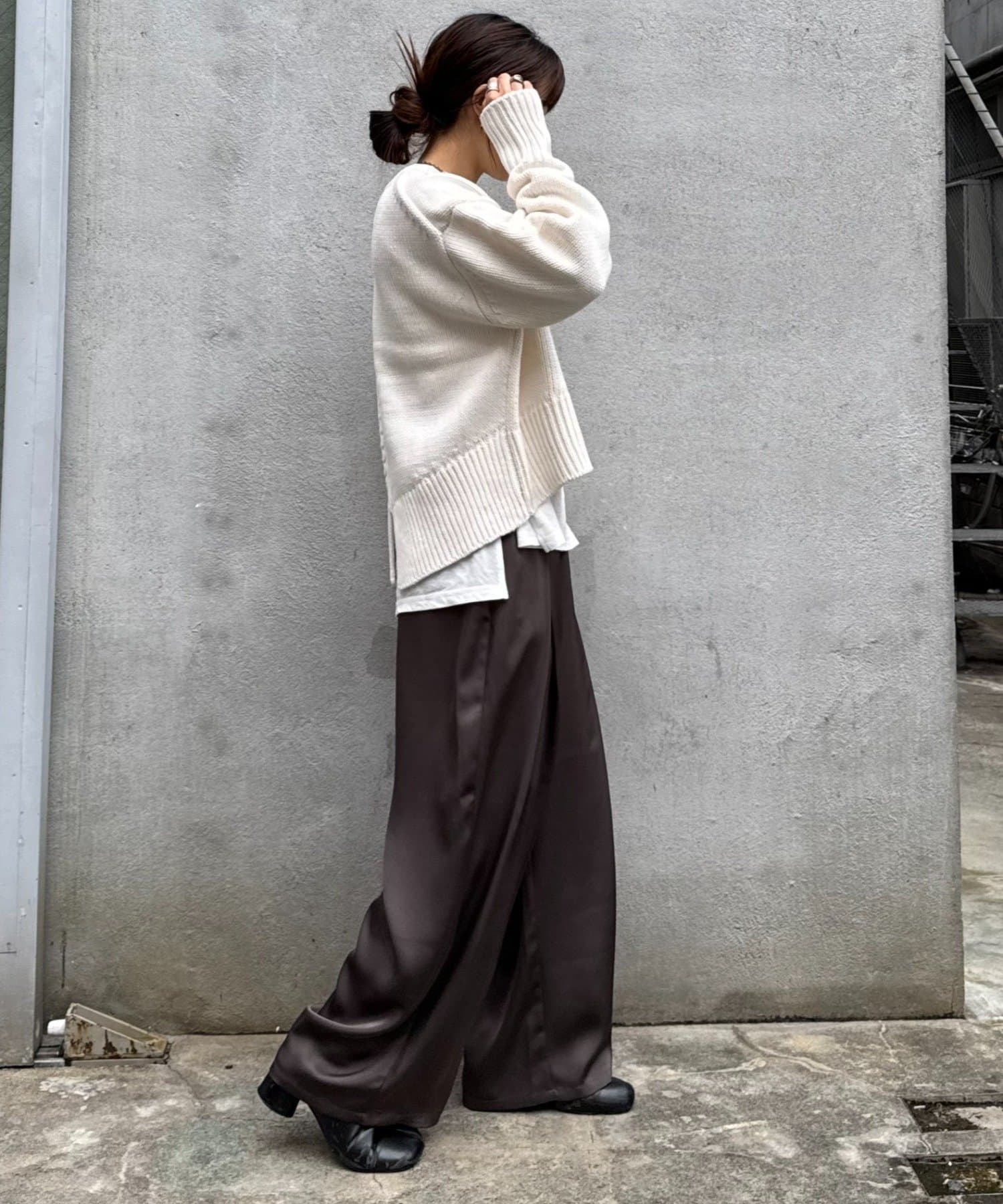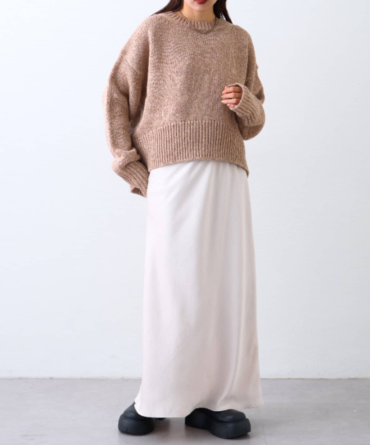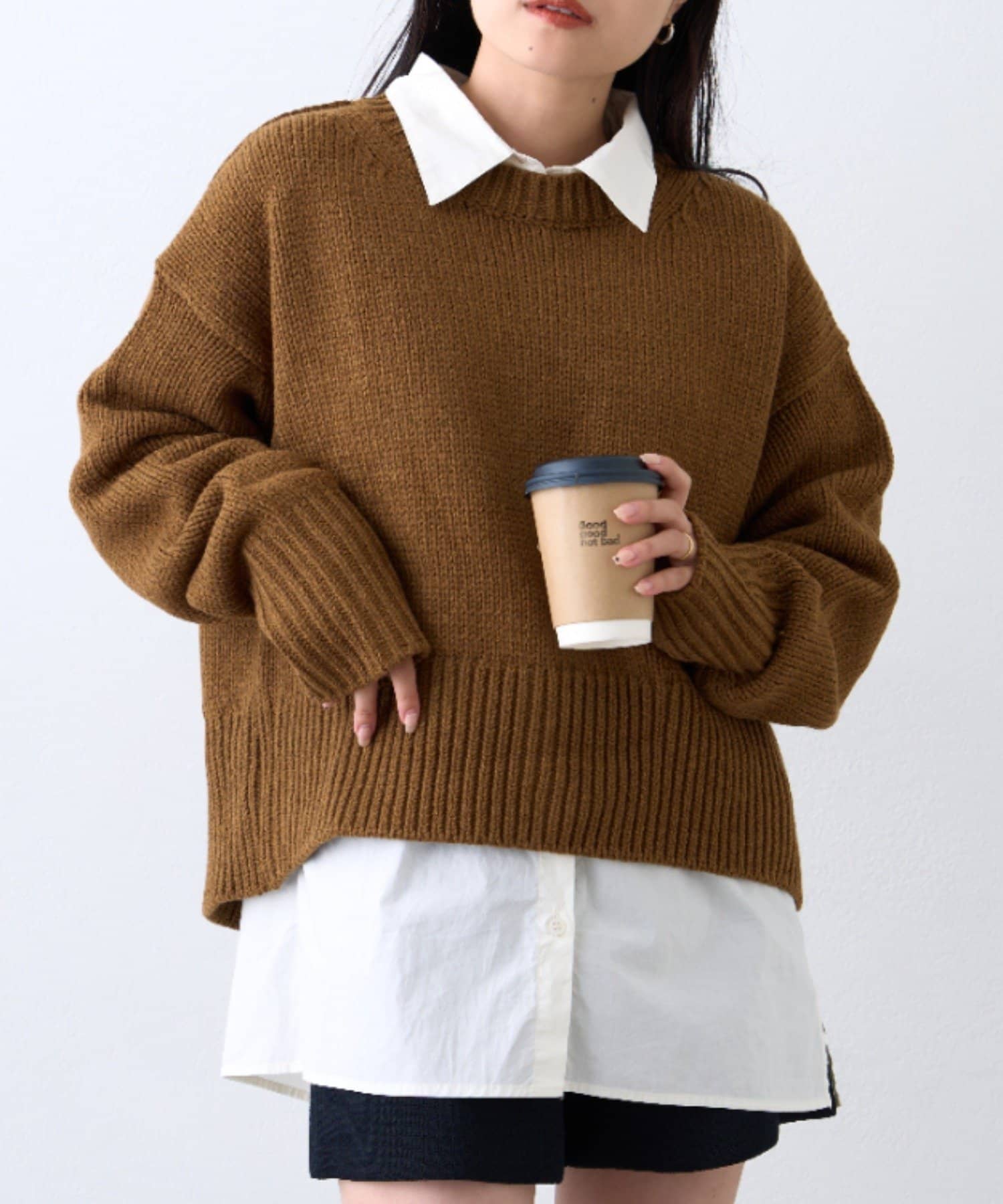 ゆったりとしたサイズ感で今っぽい、レディライクな印象のニット。