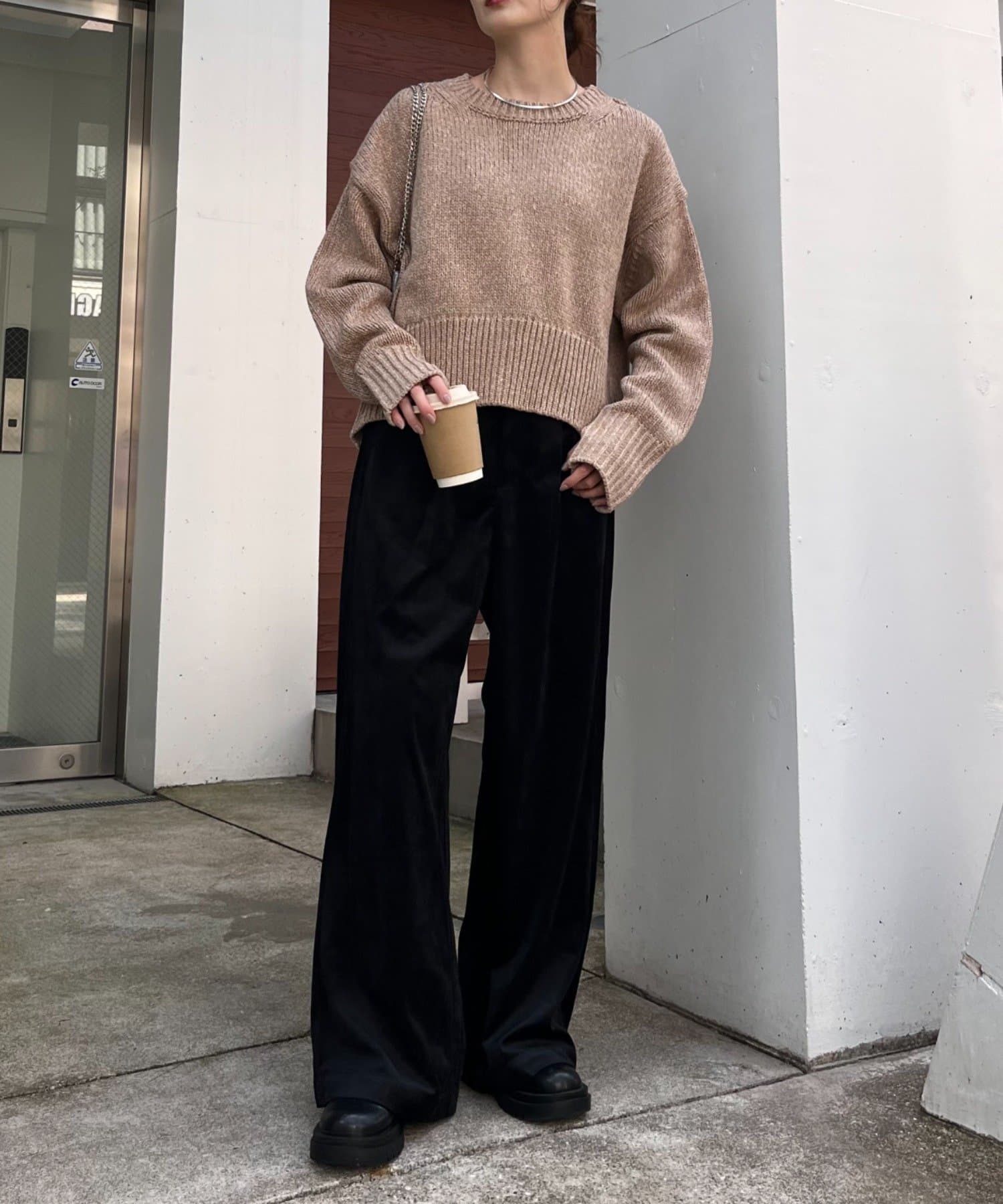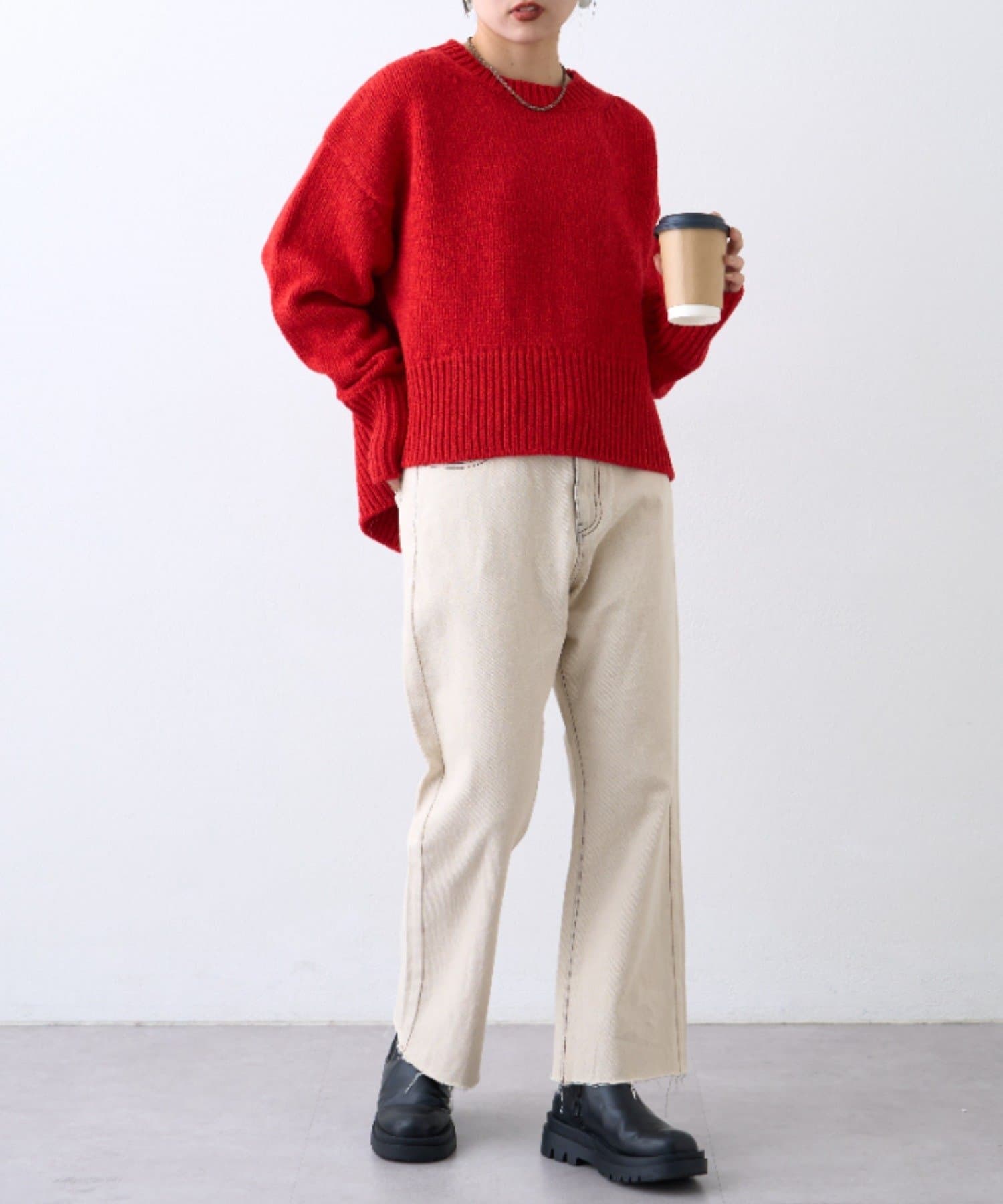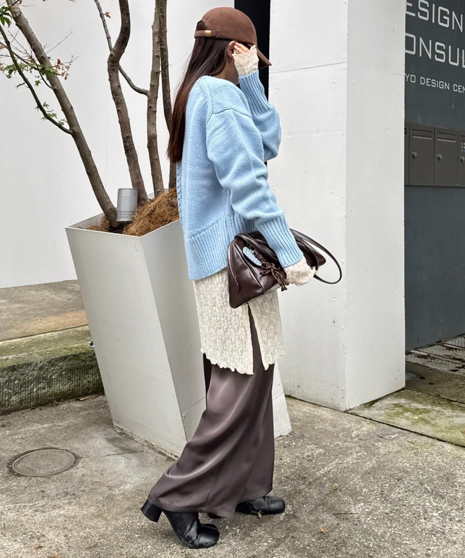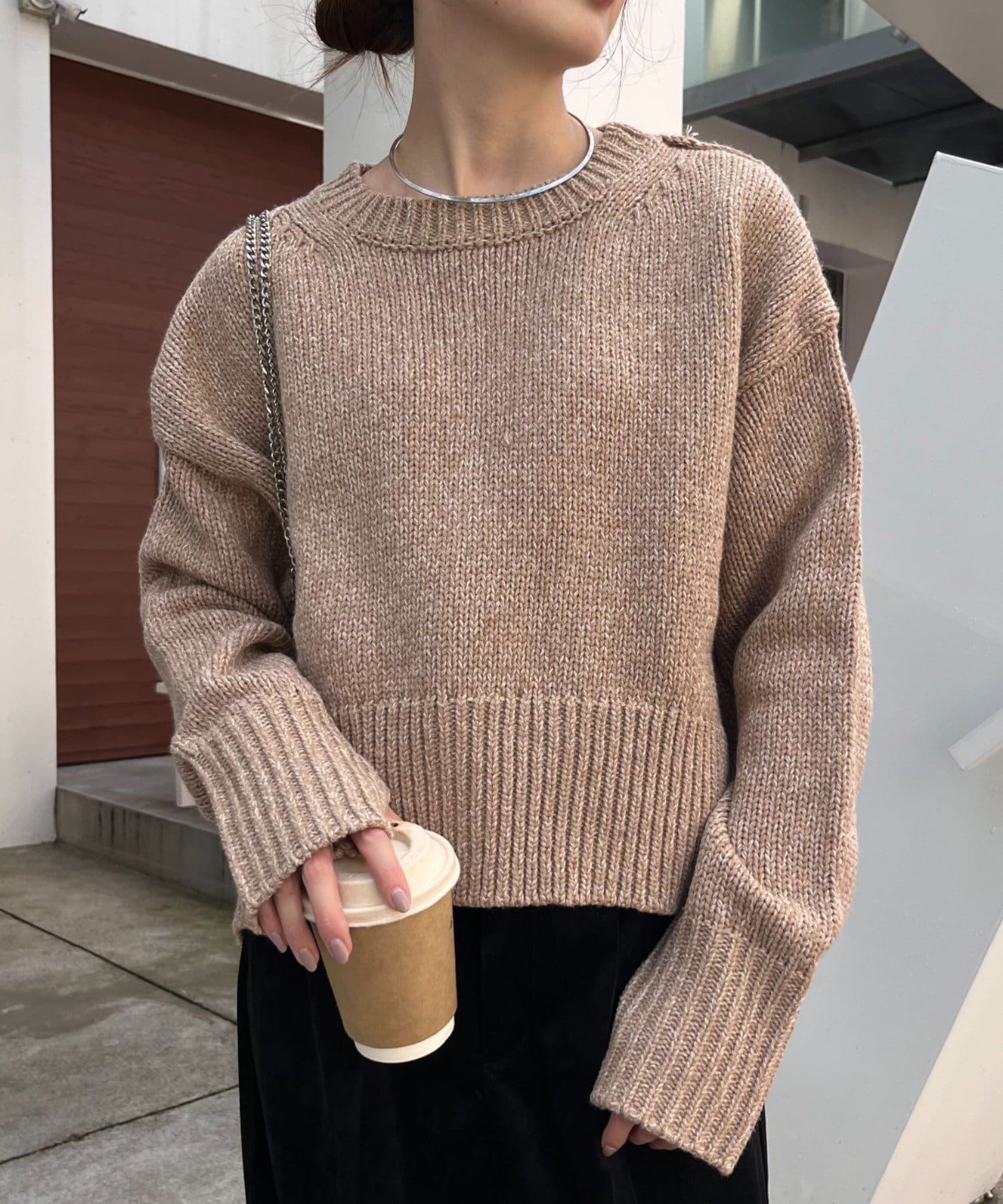 ゆったりとしたサイズ感で今っぽい、レディライクな印象のニット。