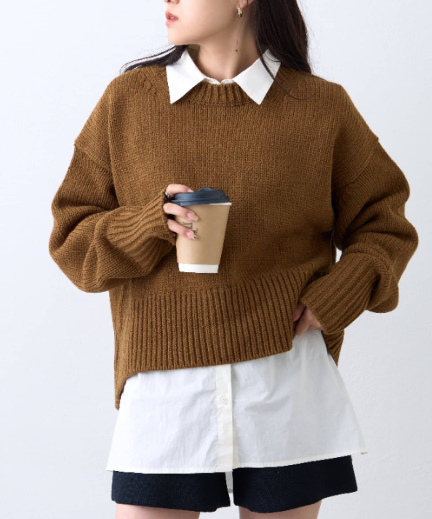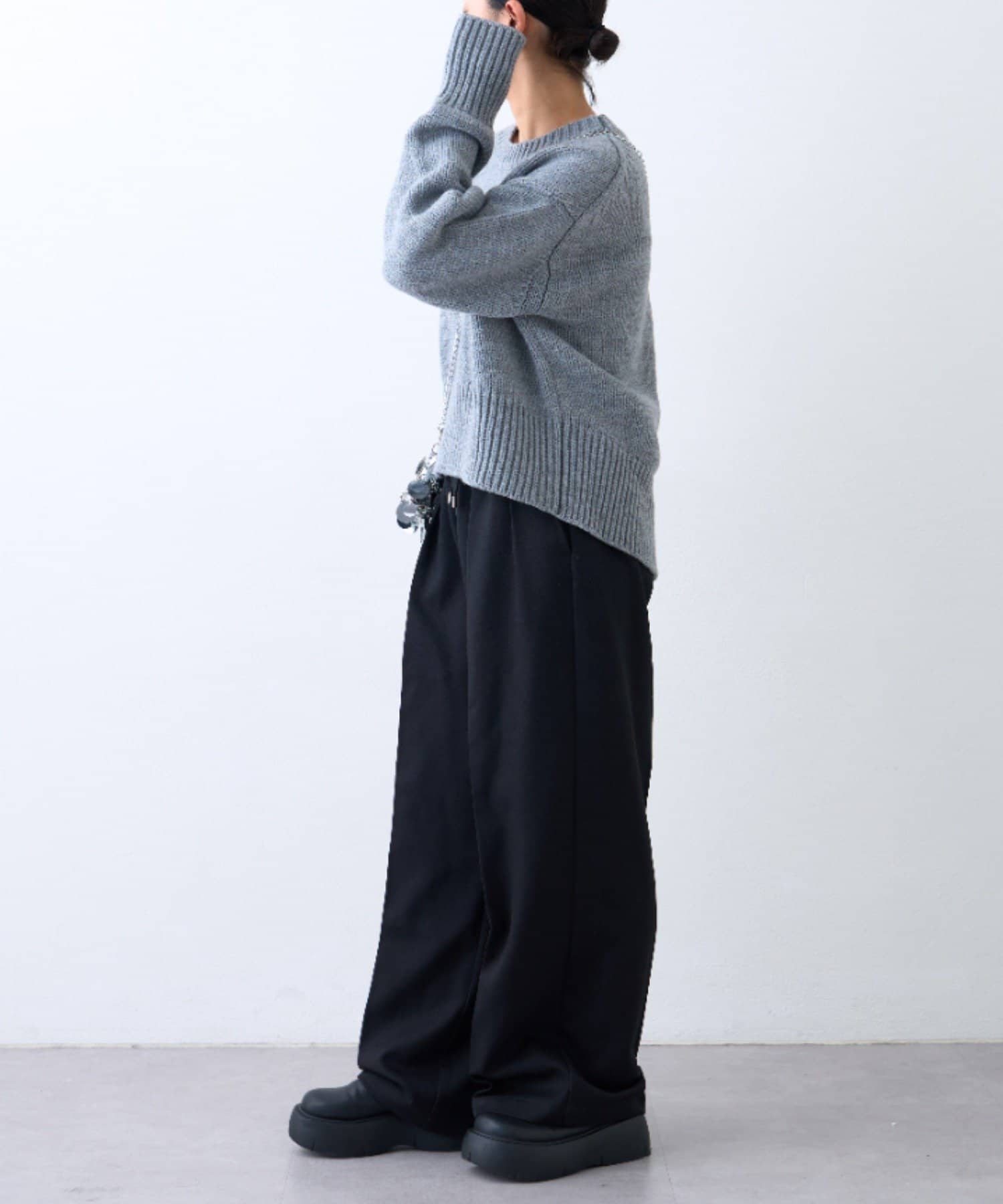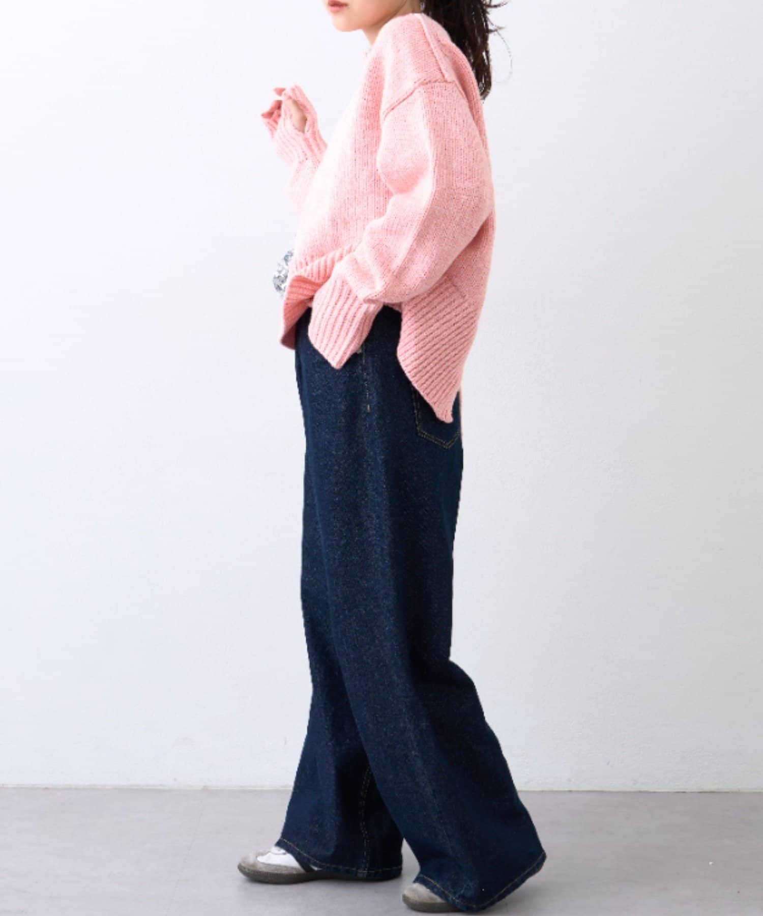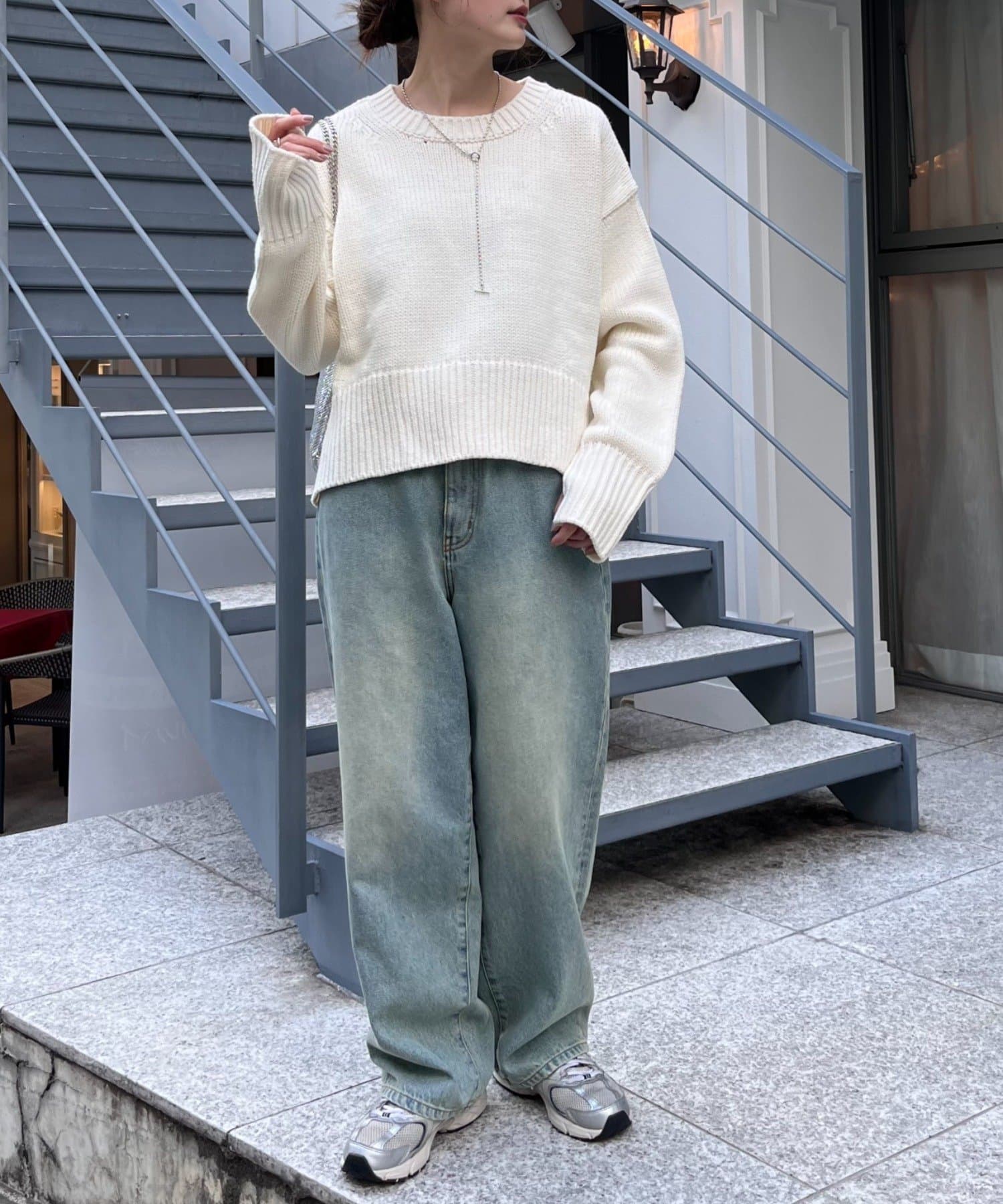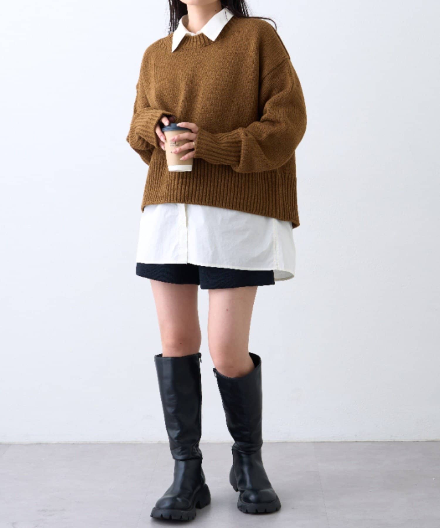 ゆったりとしたサイズ感で今っぽい、レディライクな印象のニット。
