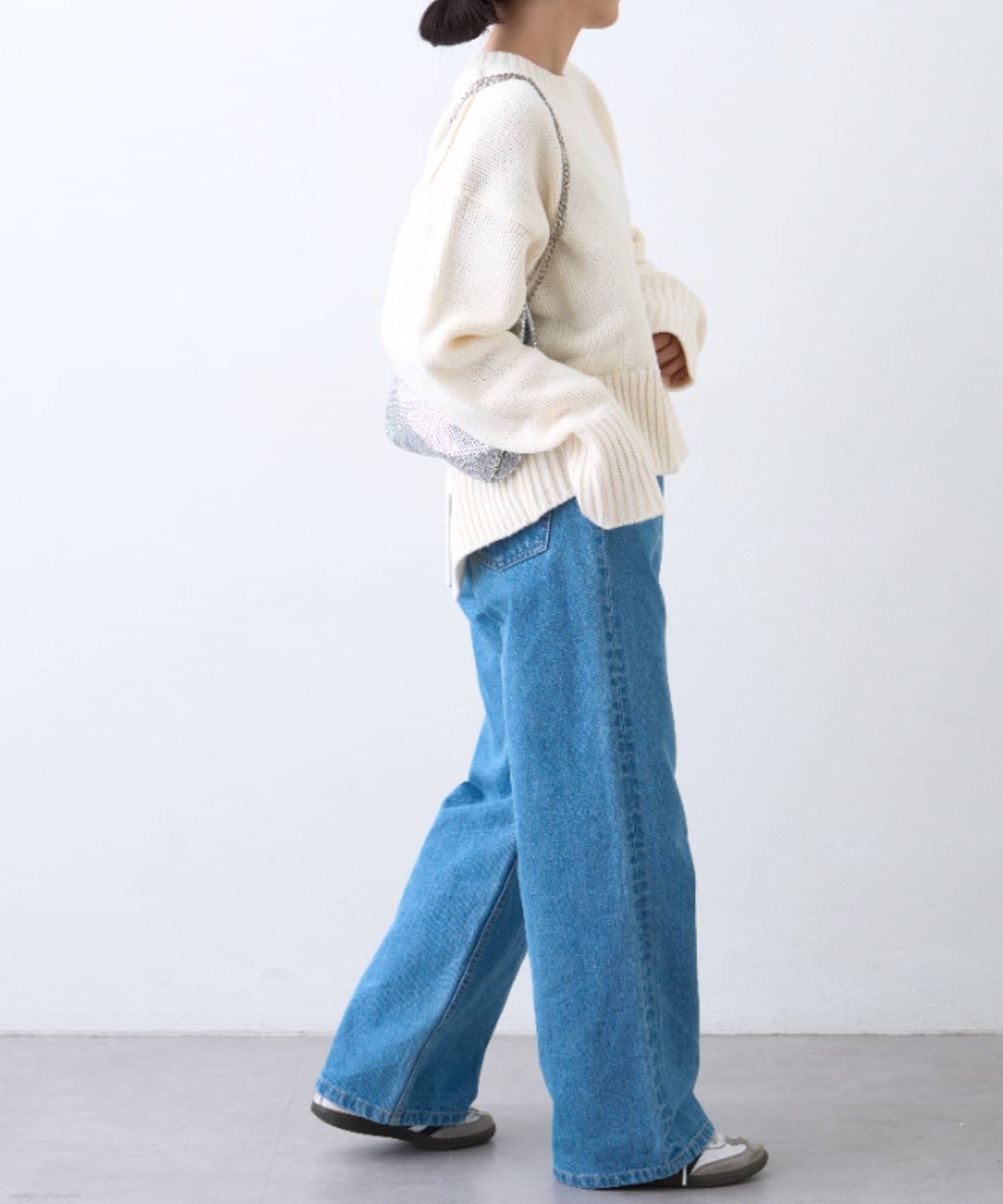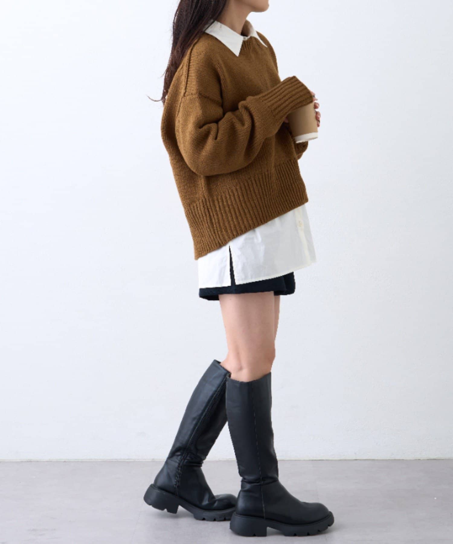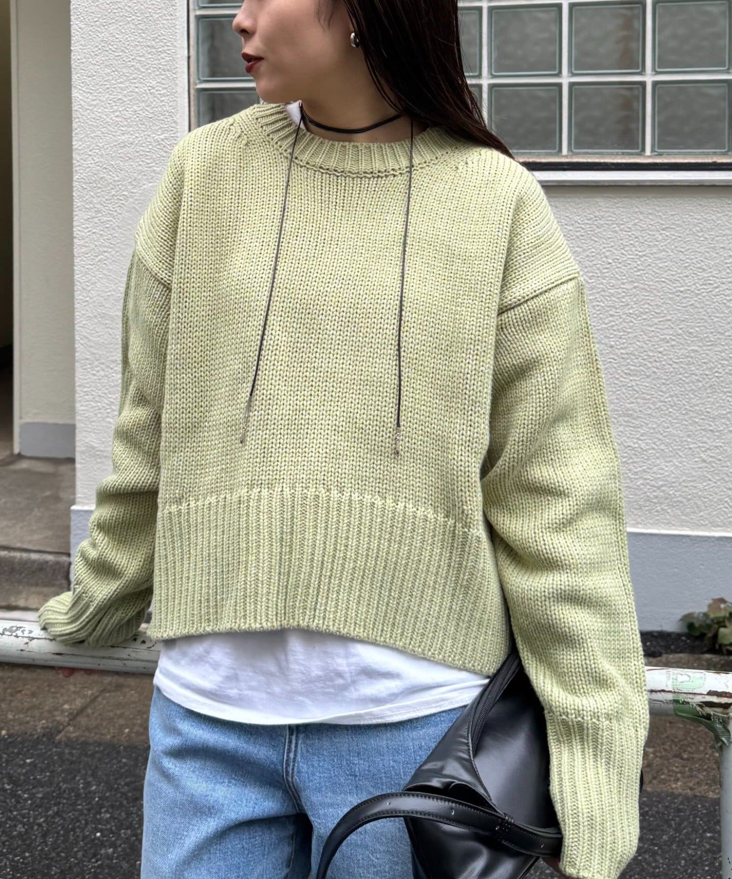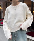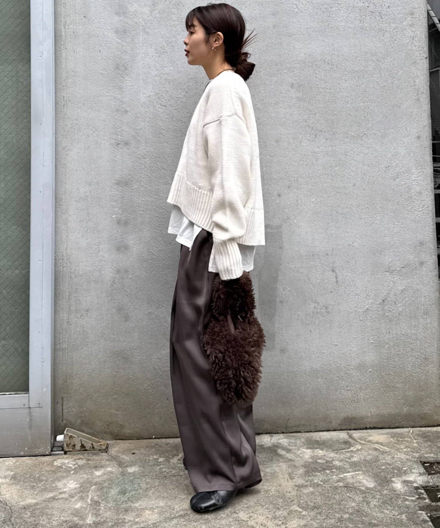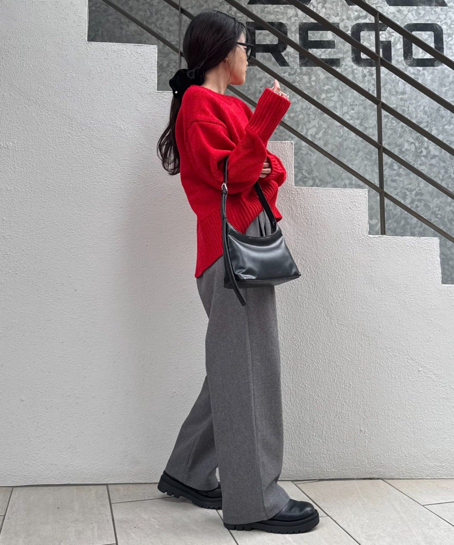 ゆったりとしたサイズ感で今っぽい、レディライクな印象のニット。