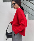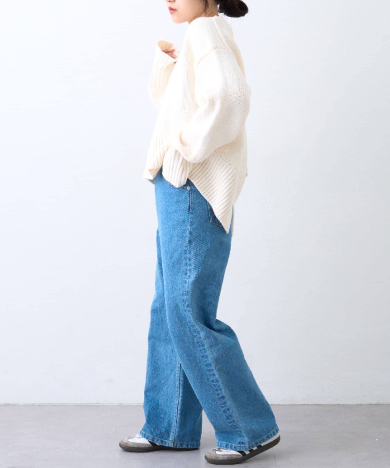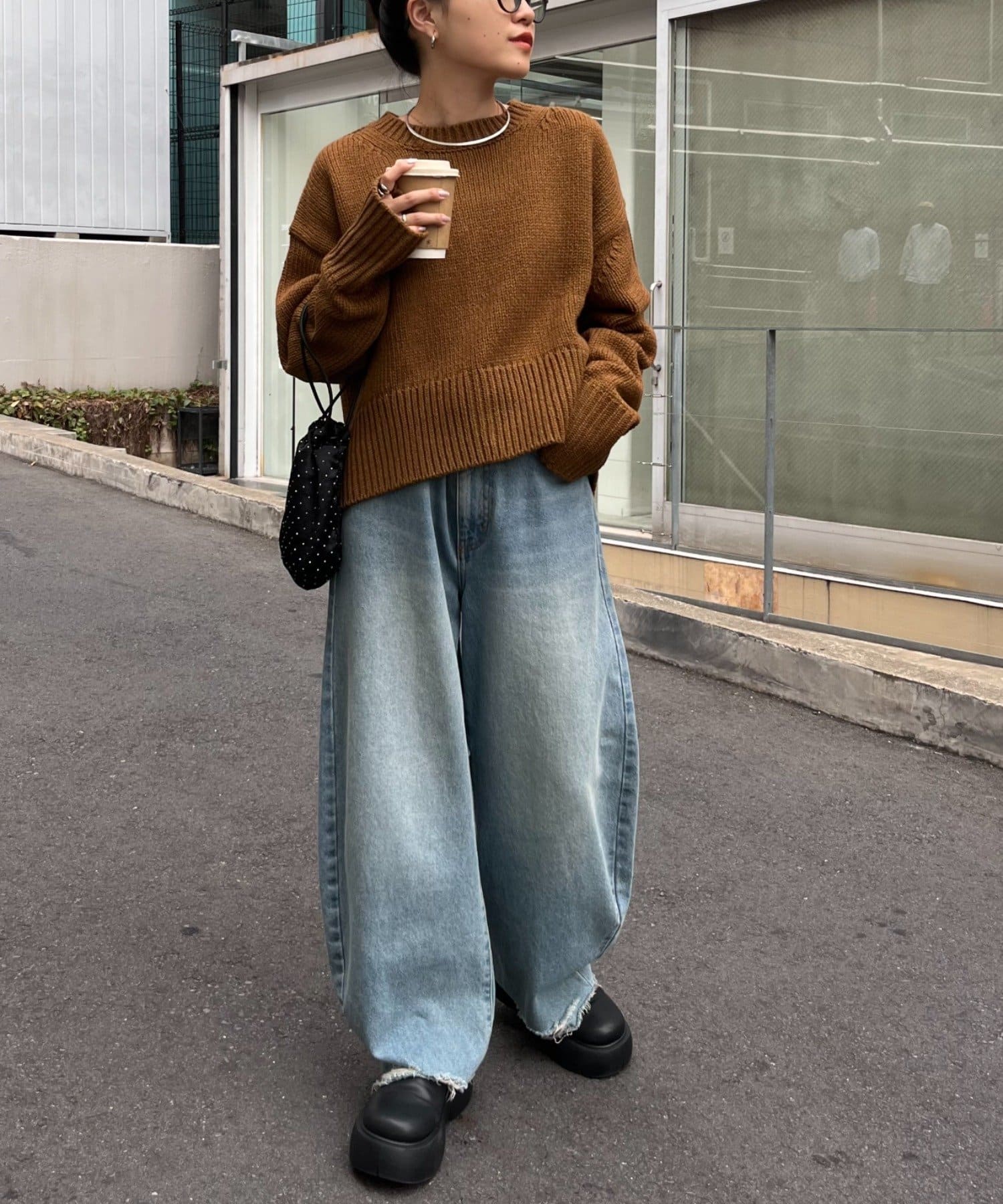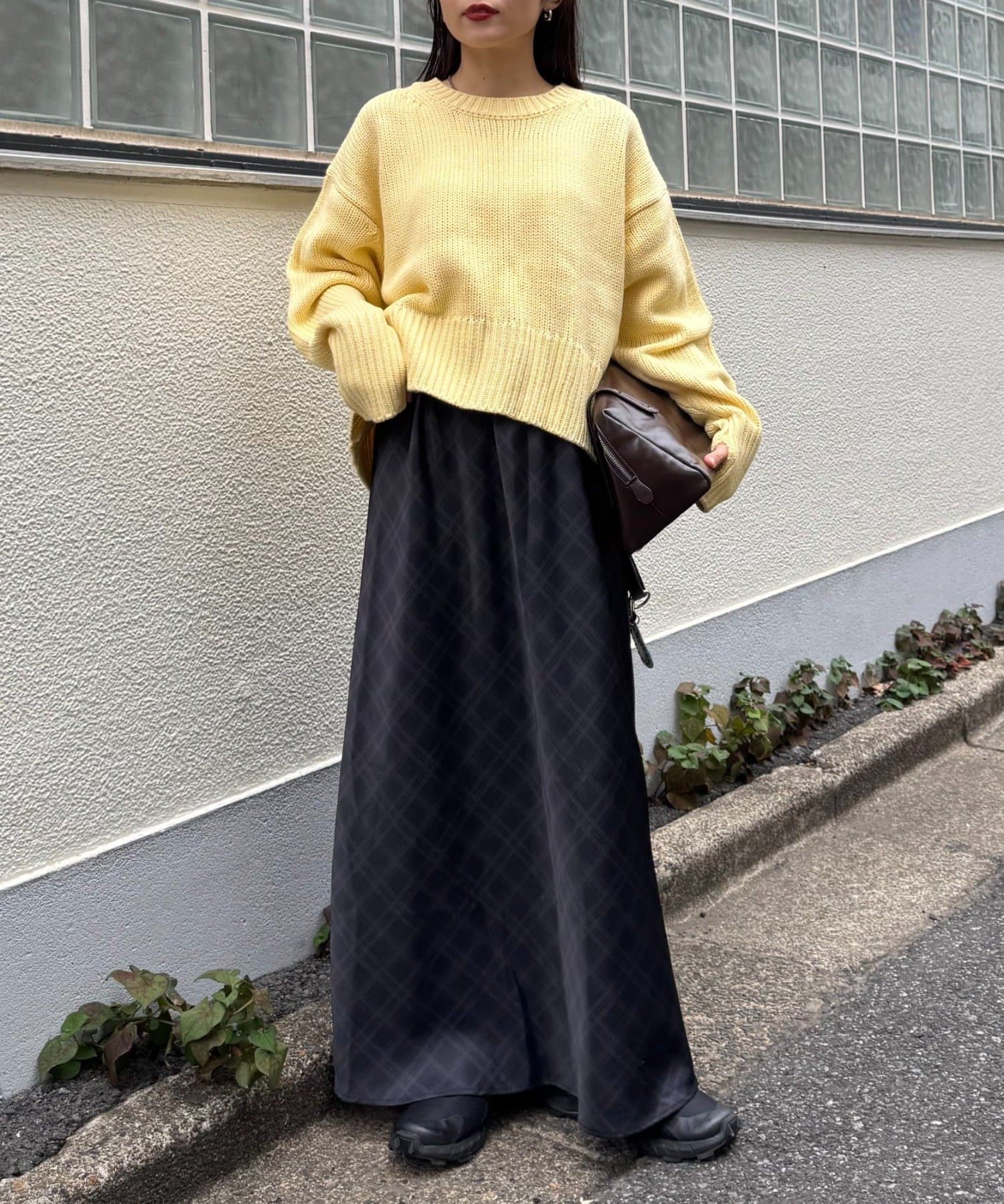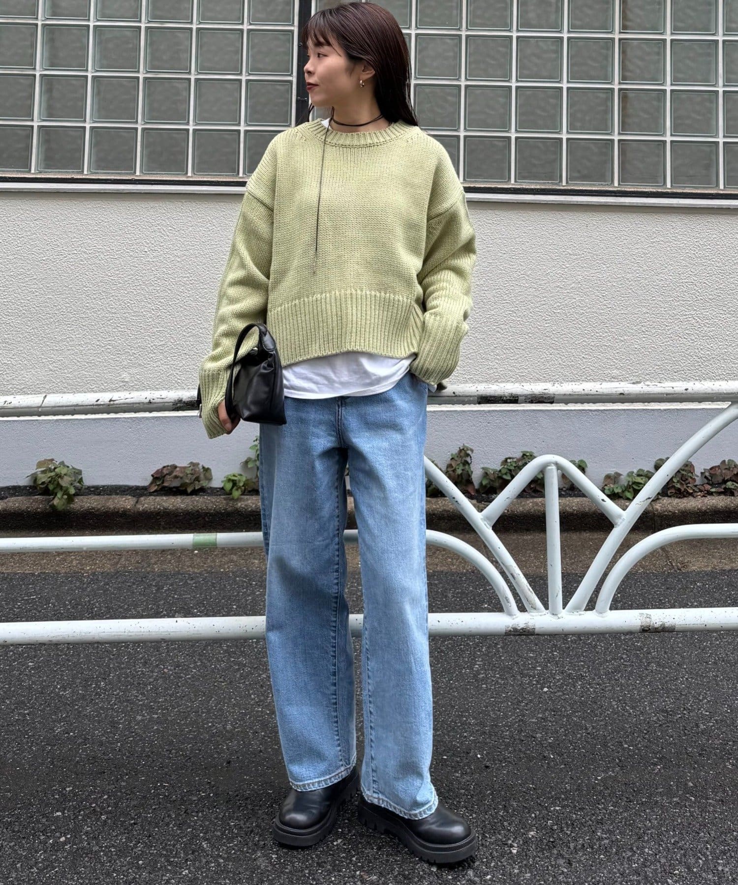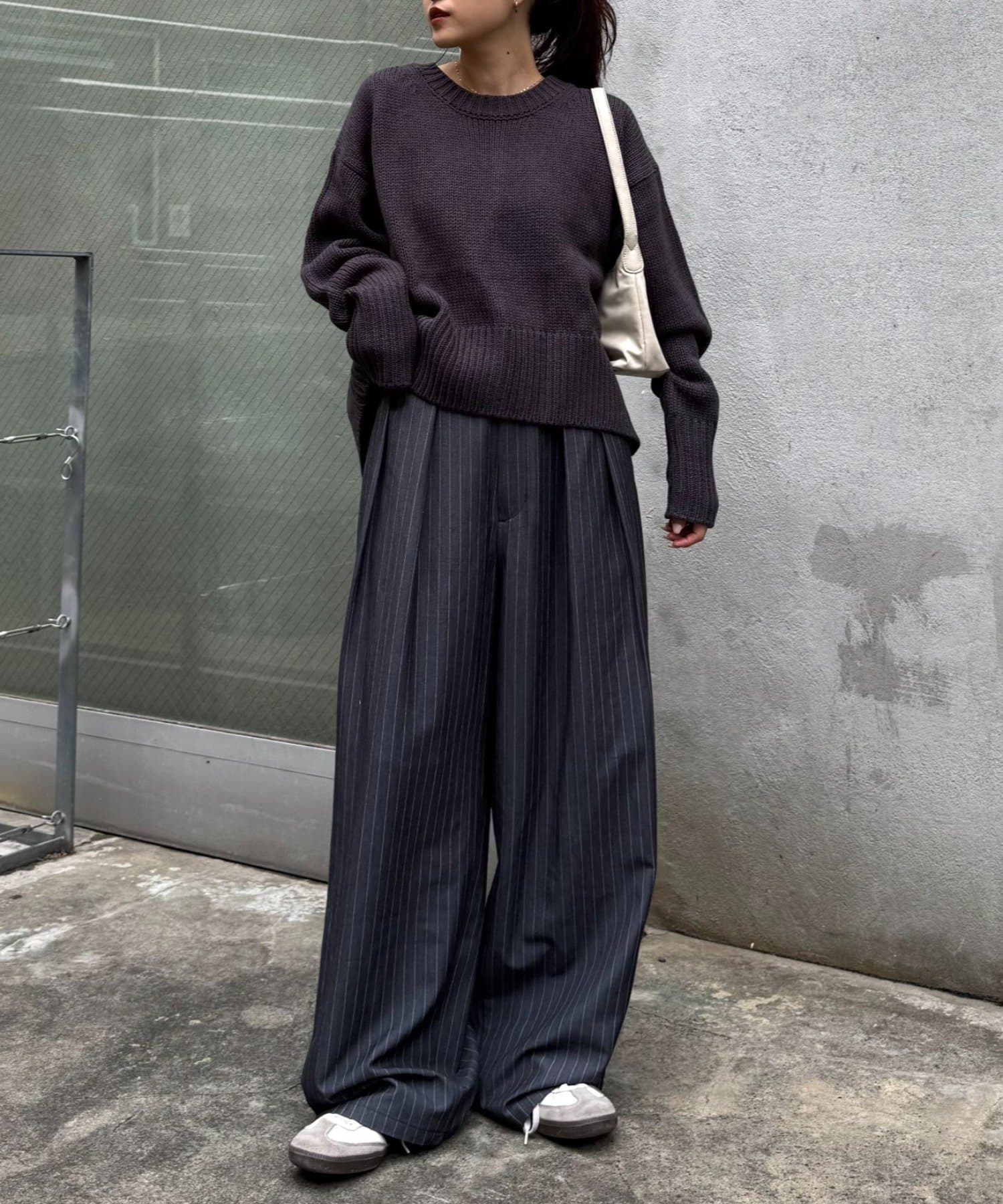 ゆったりとしたサイズ感で今っぽい、レディライクな印象のニット。
