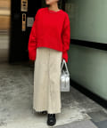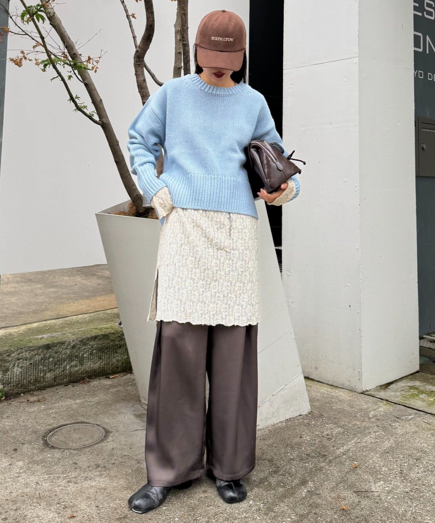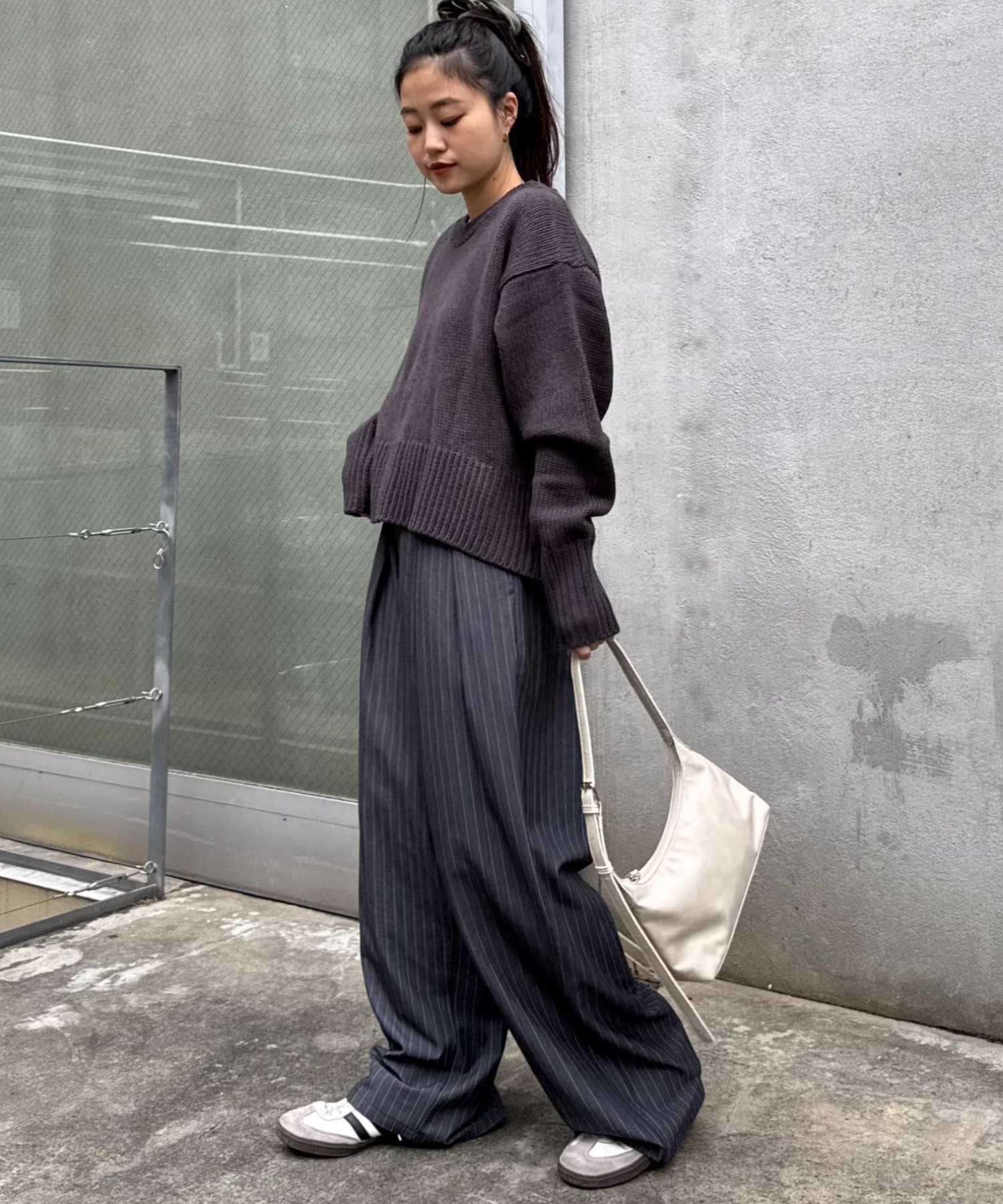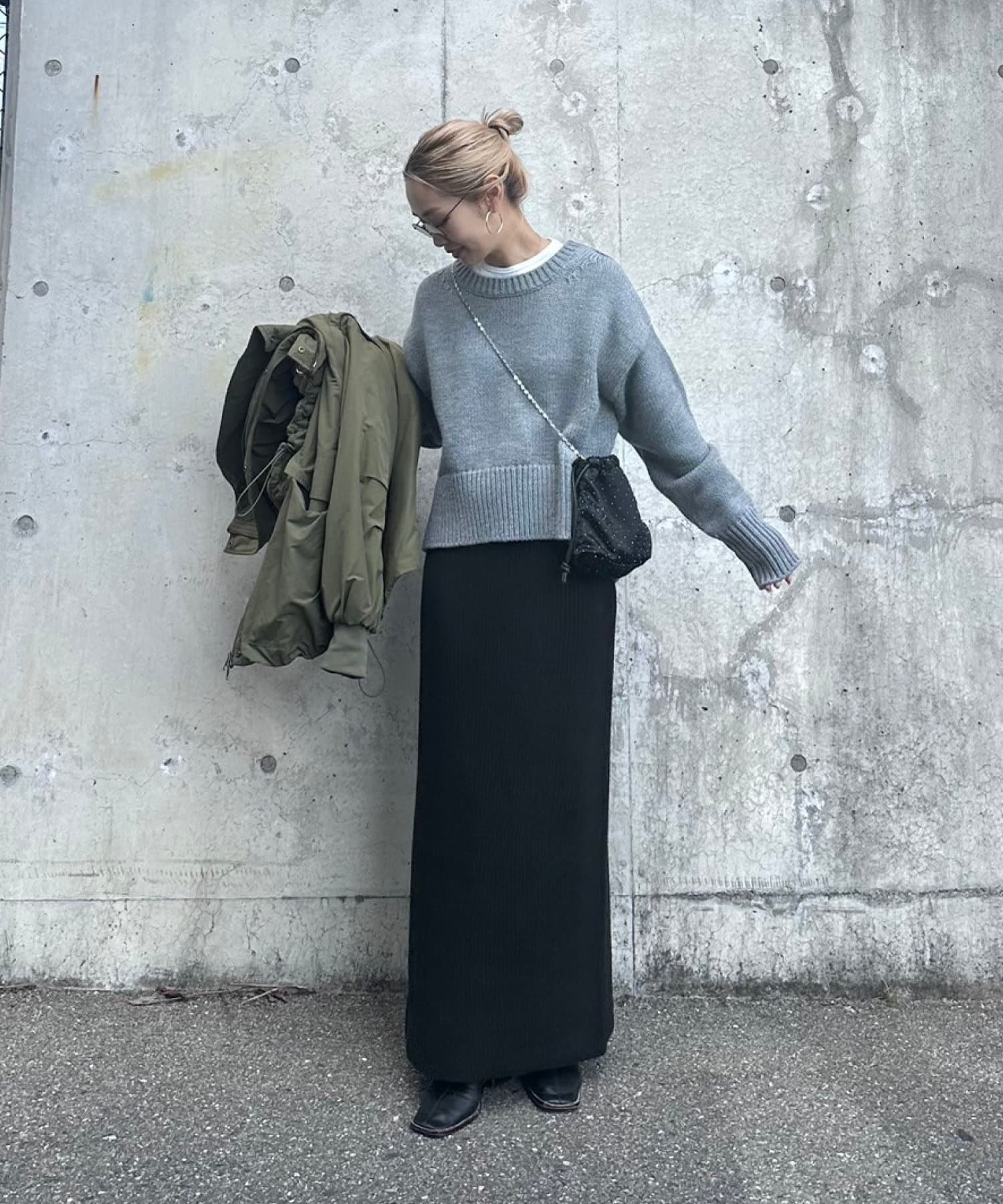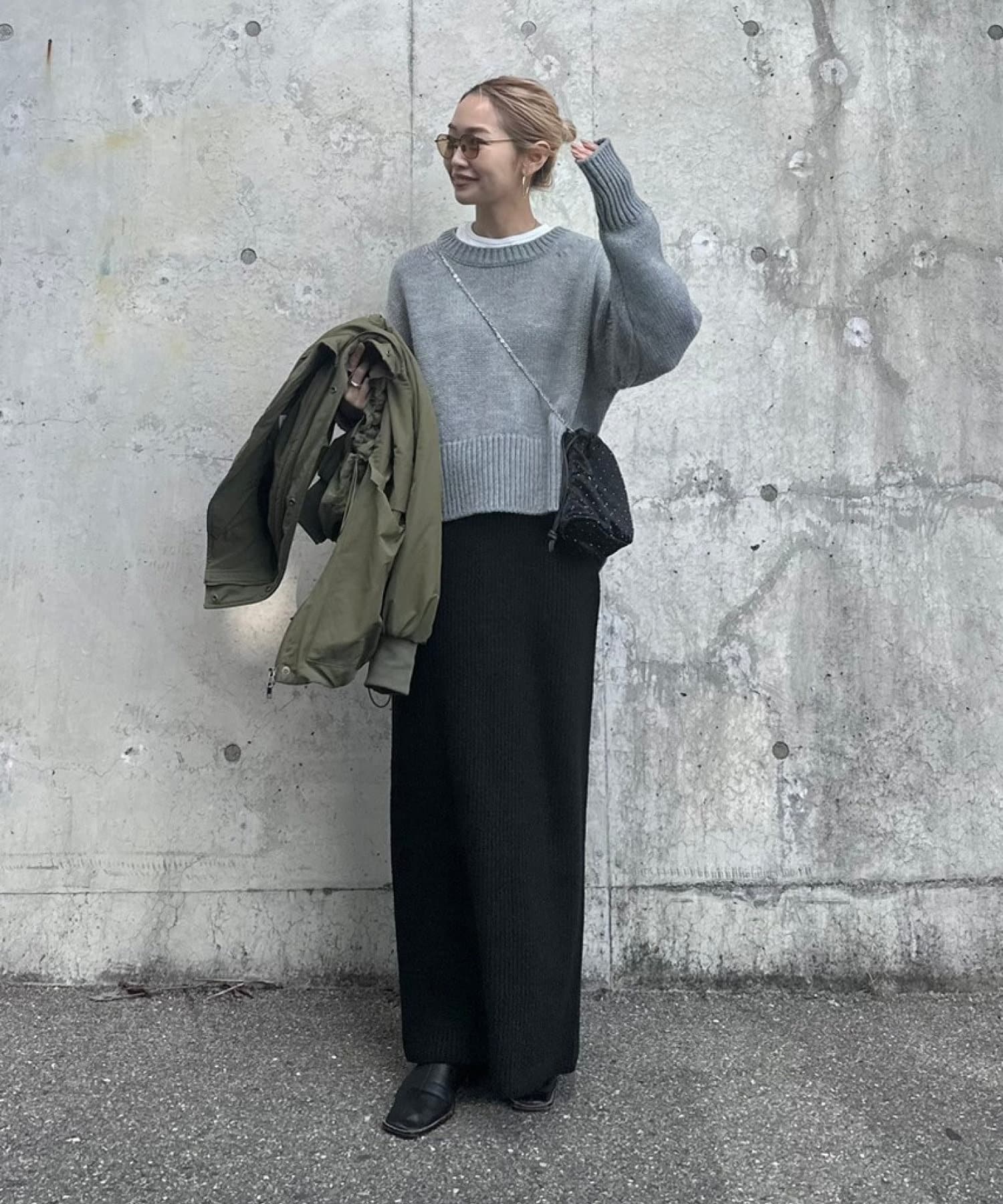 シンプルなので、女性らしいタイトスカートやメンズライクなワイドパンツとも相性抜群です。