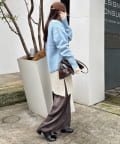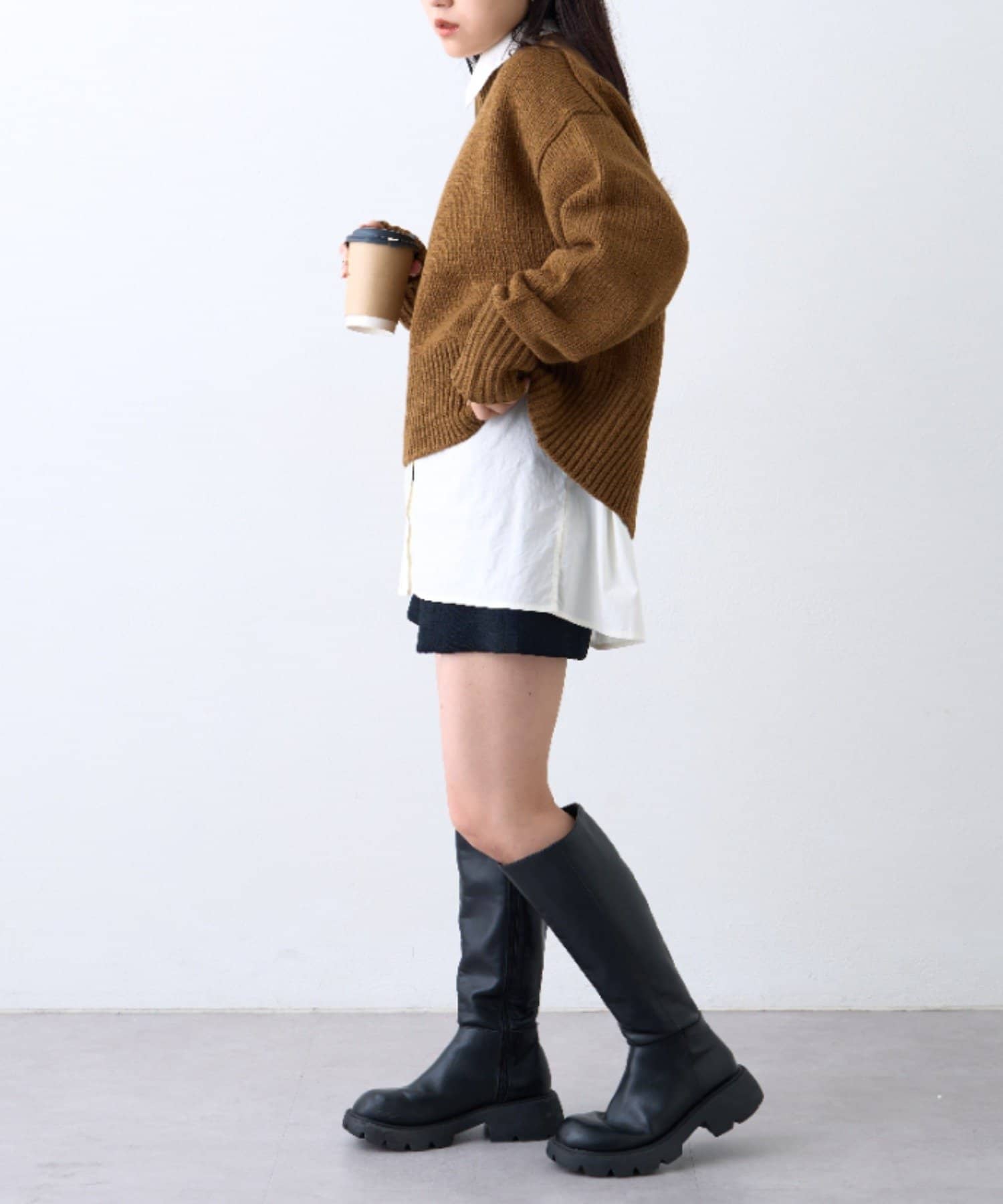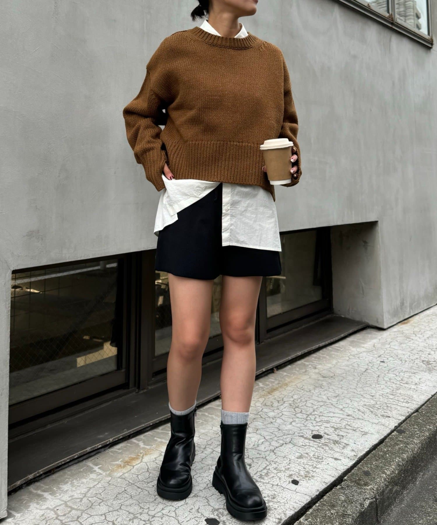 ミニ丈ボトムにロングブーツなどと合わせるとトレンドライクな印象に◎
