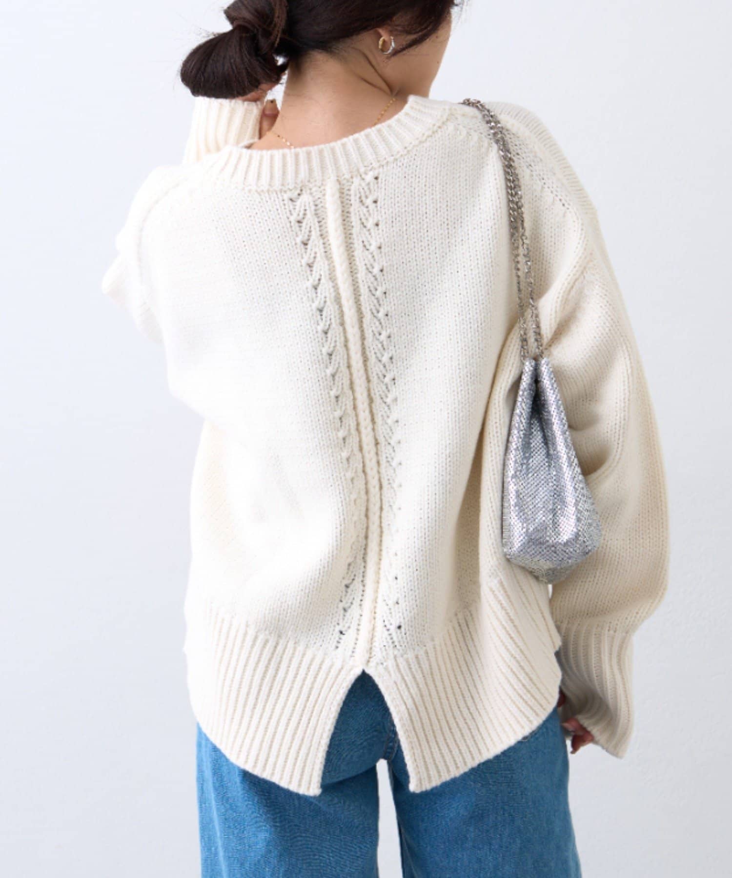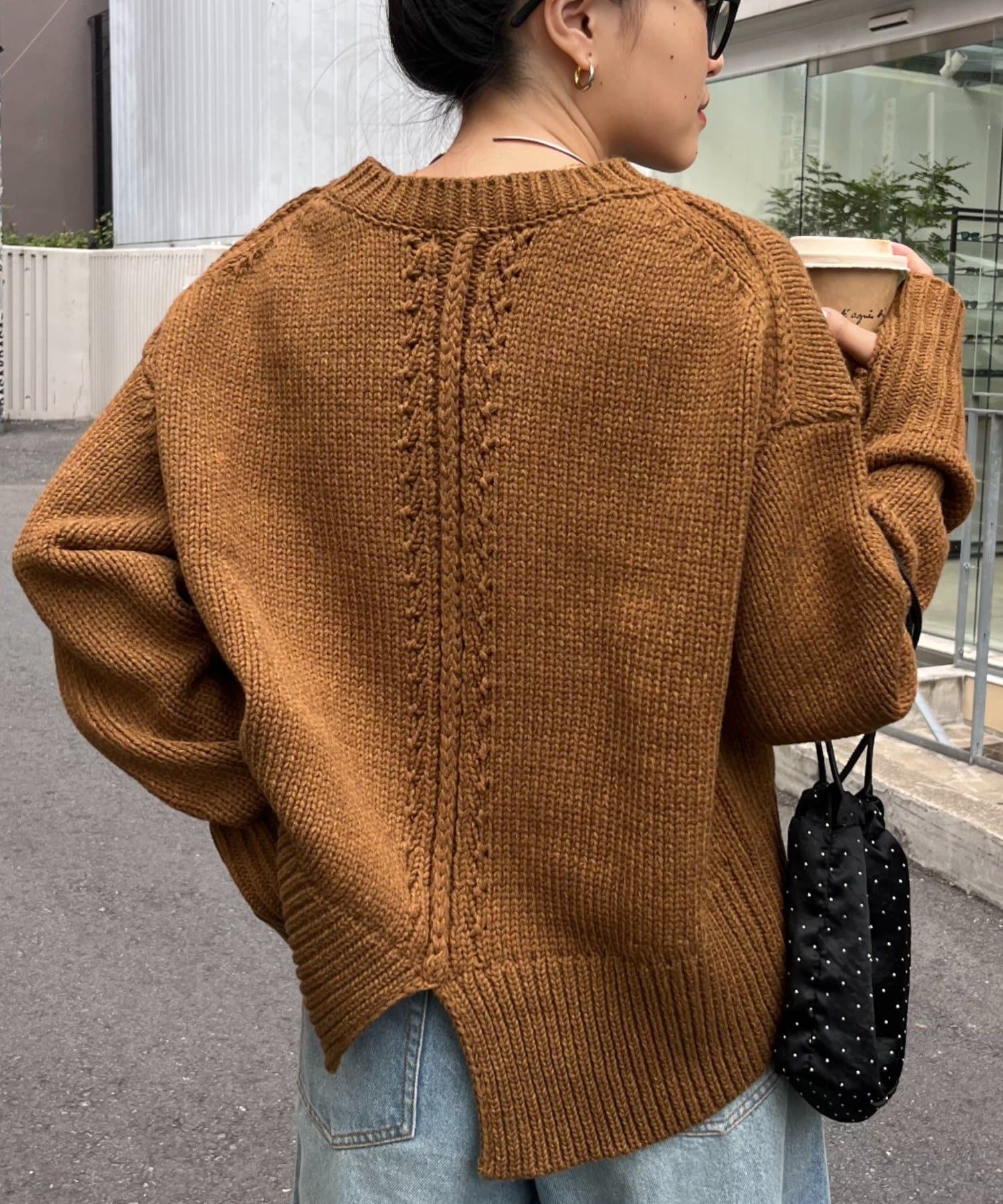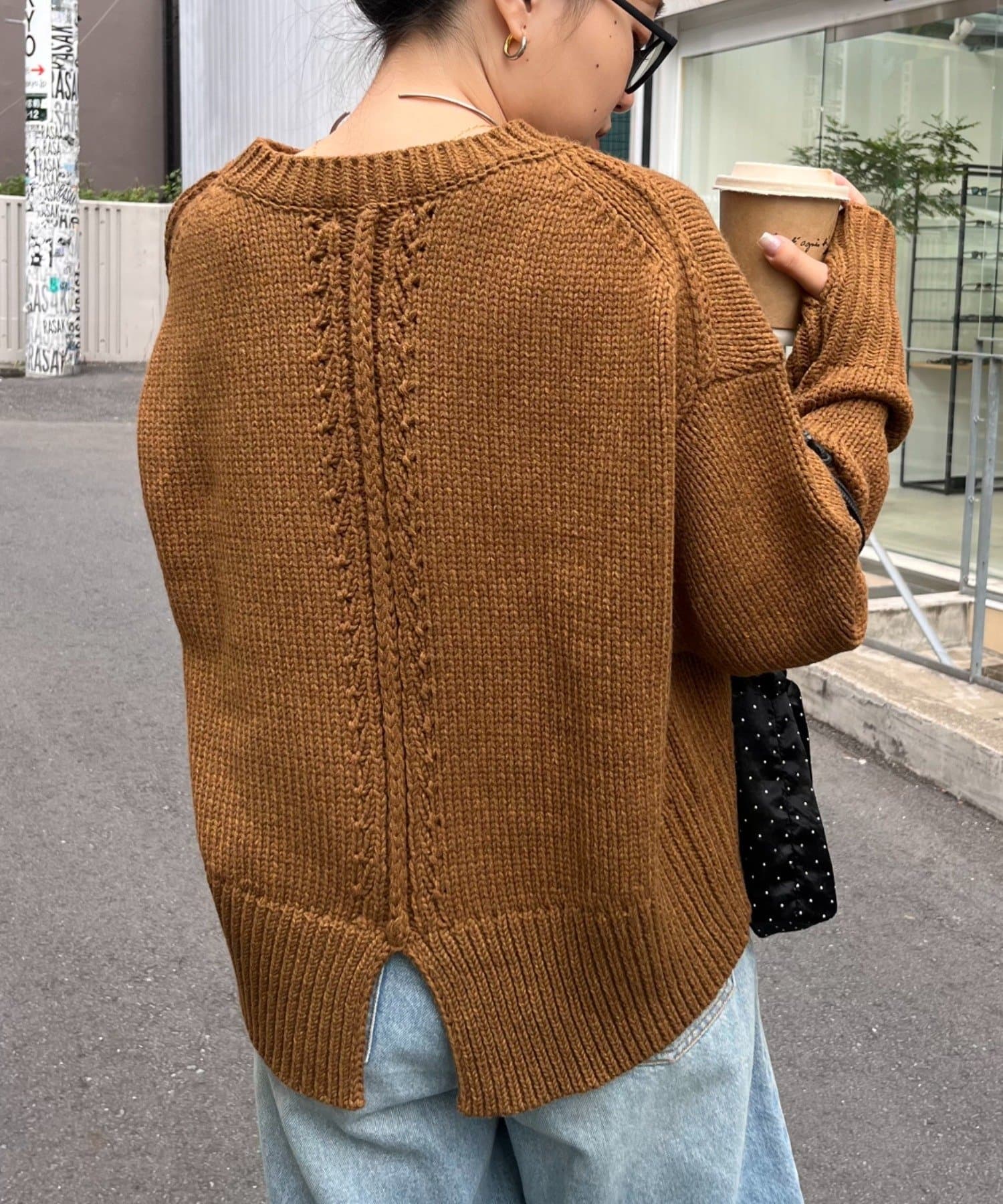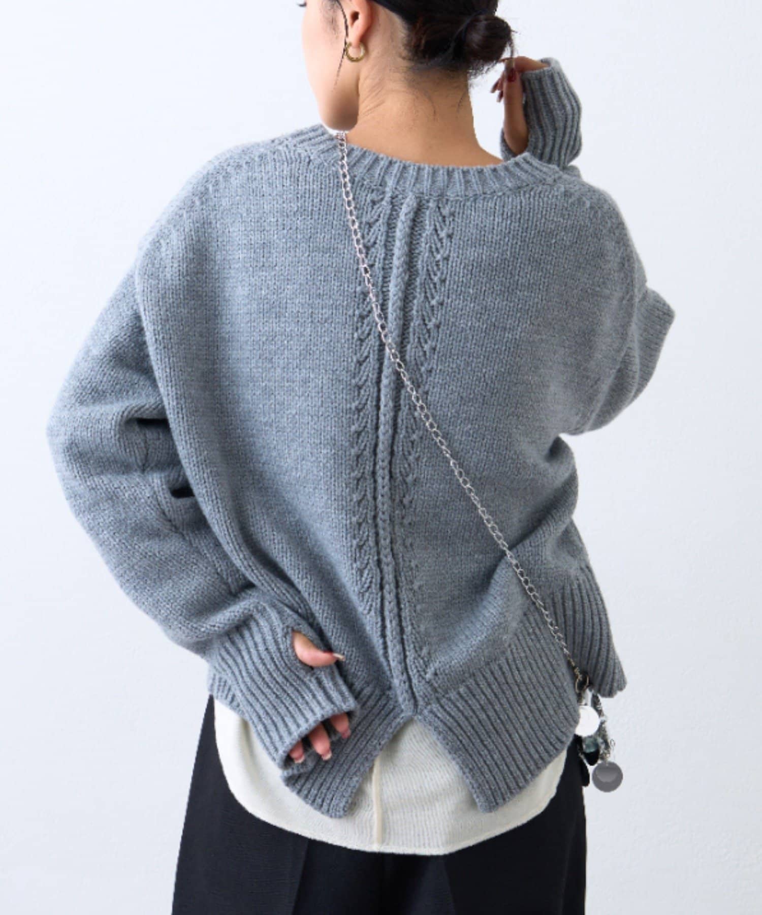 バックスリットとデザイン性ある編み目など細かいところまでこだわったディテール!