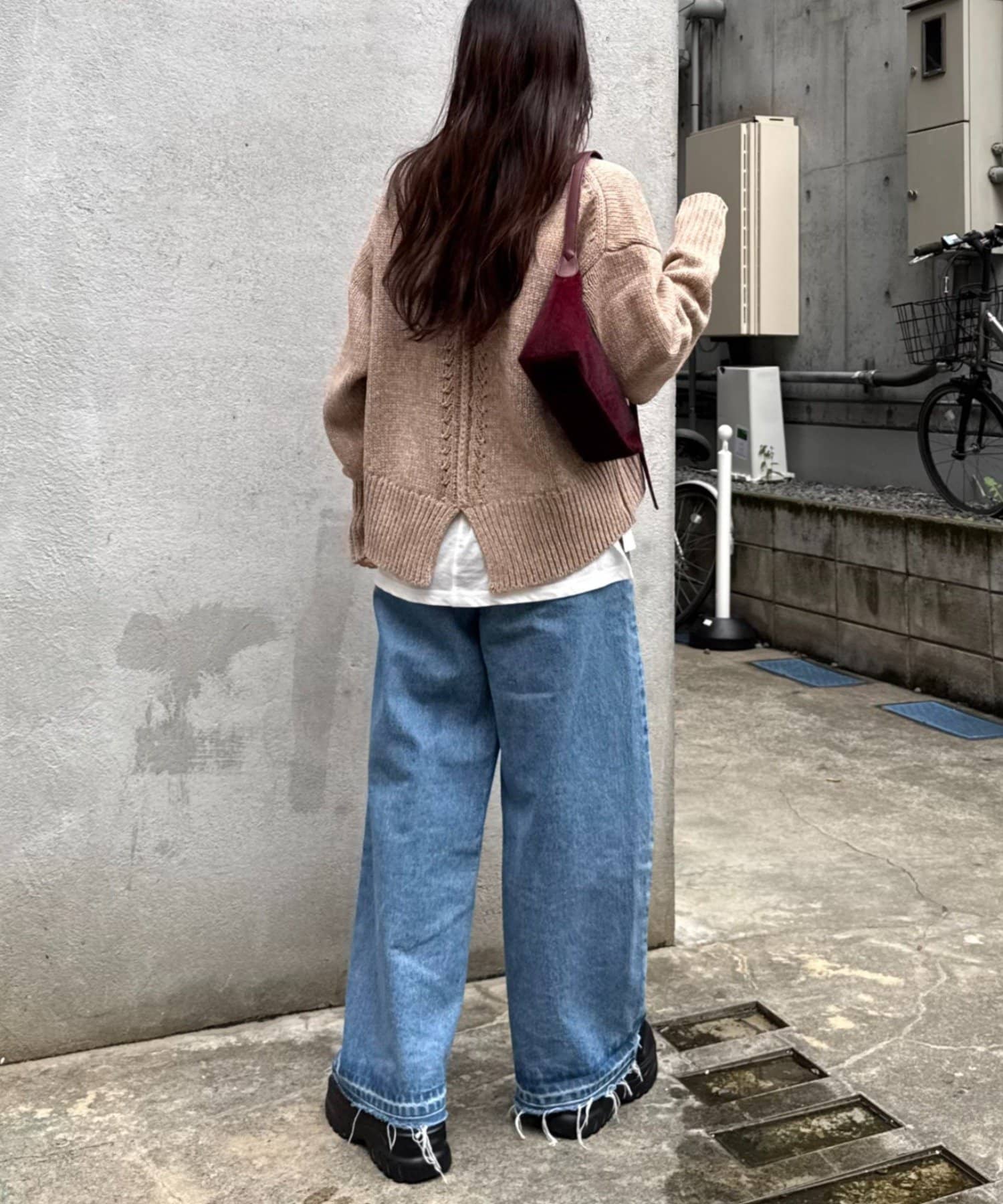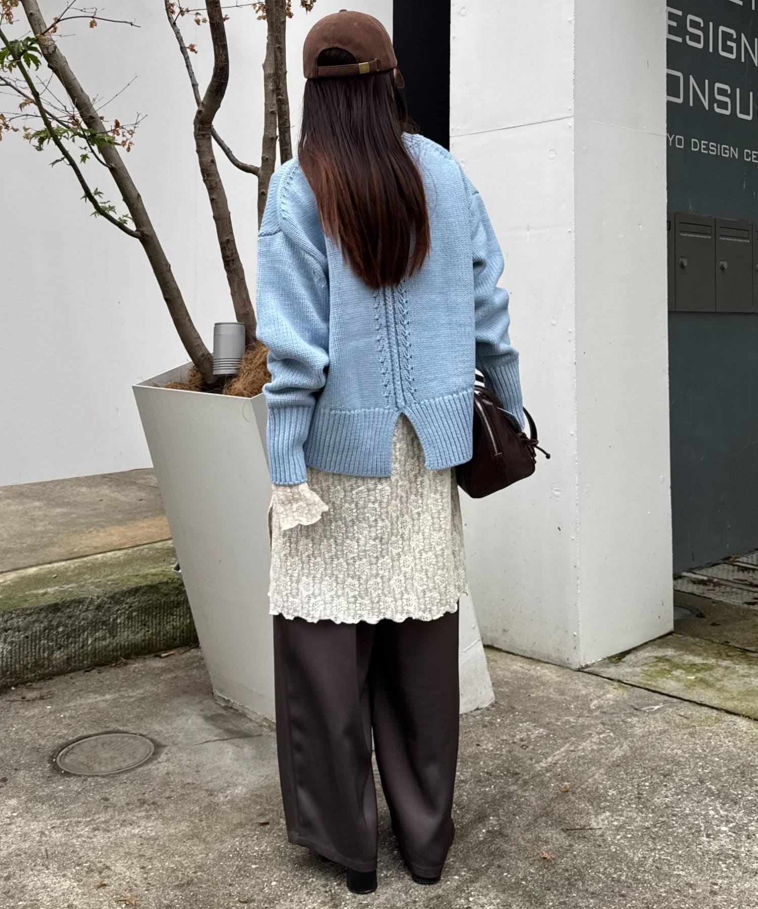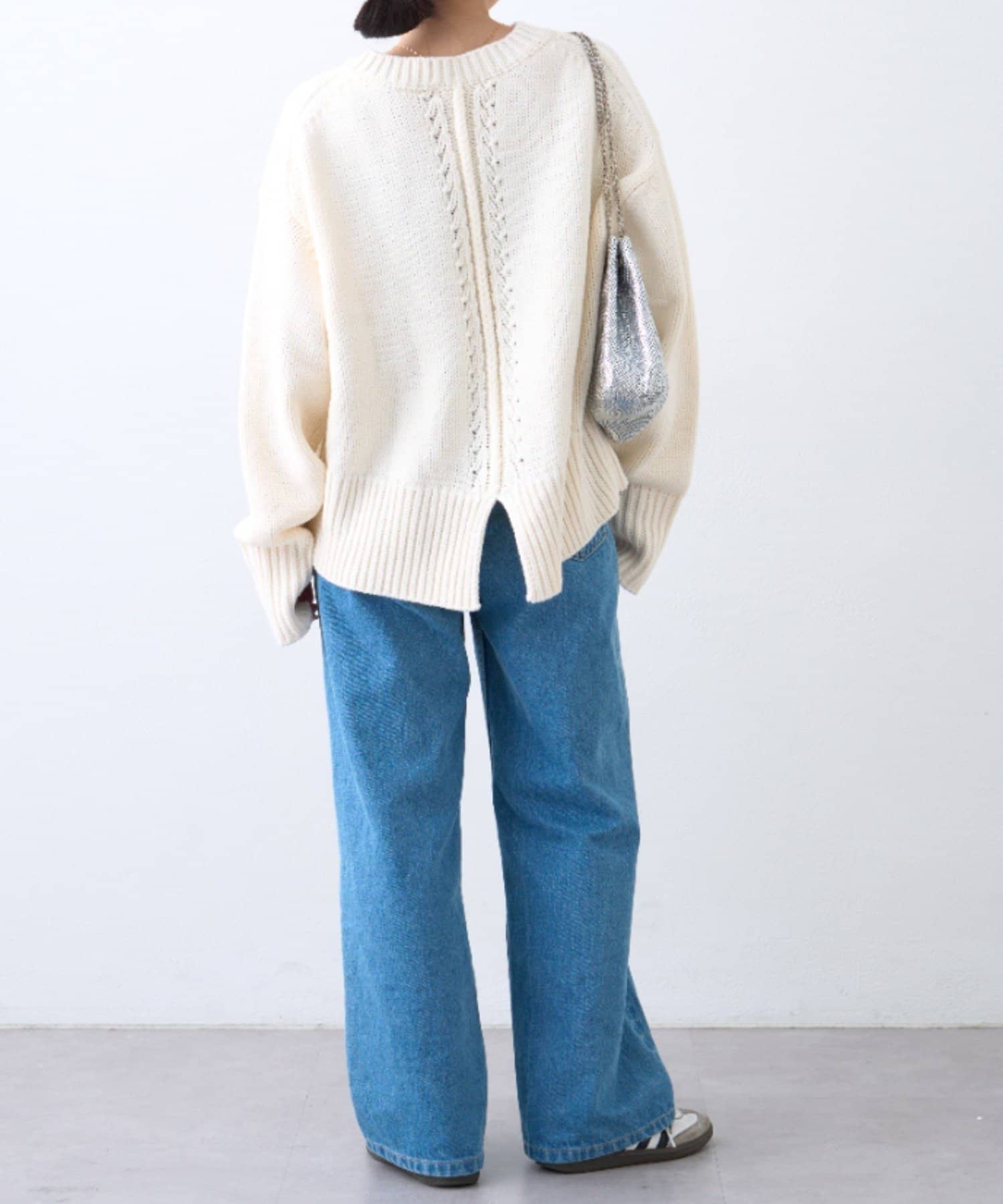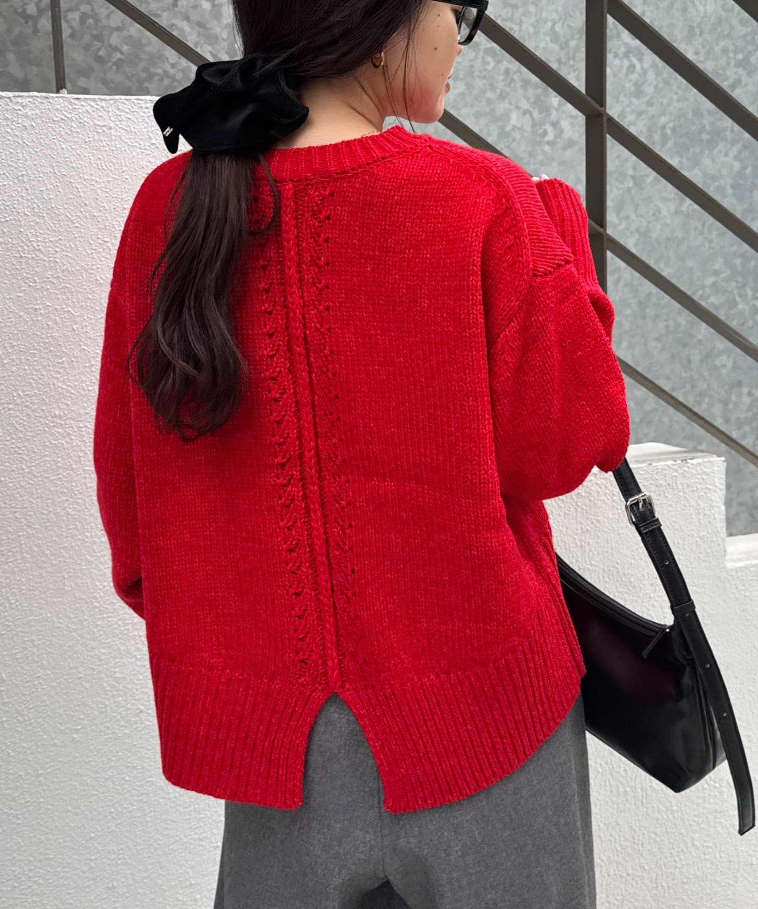 バックスリットとデザイン性ある編み目など細かいところまでこだわったディテール!