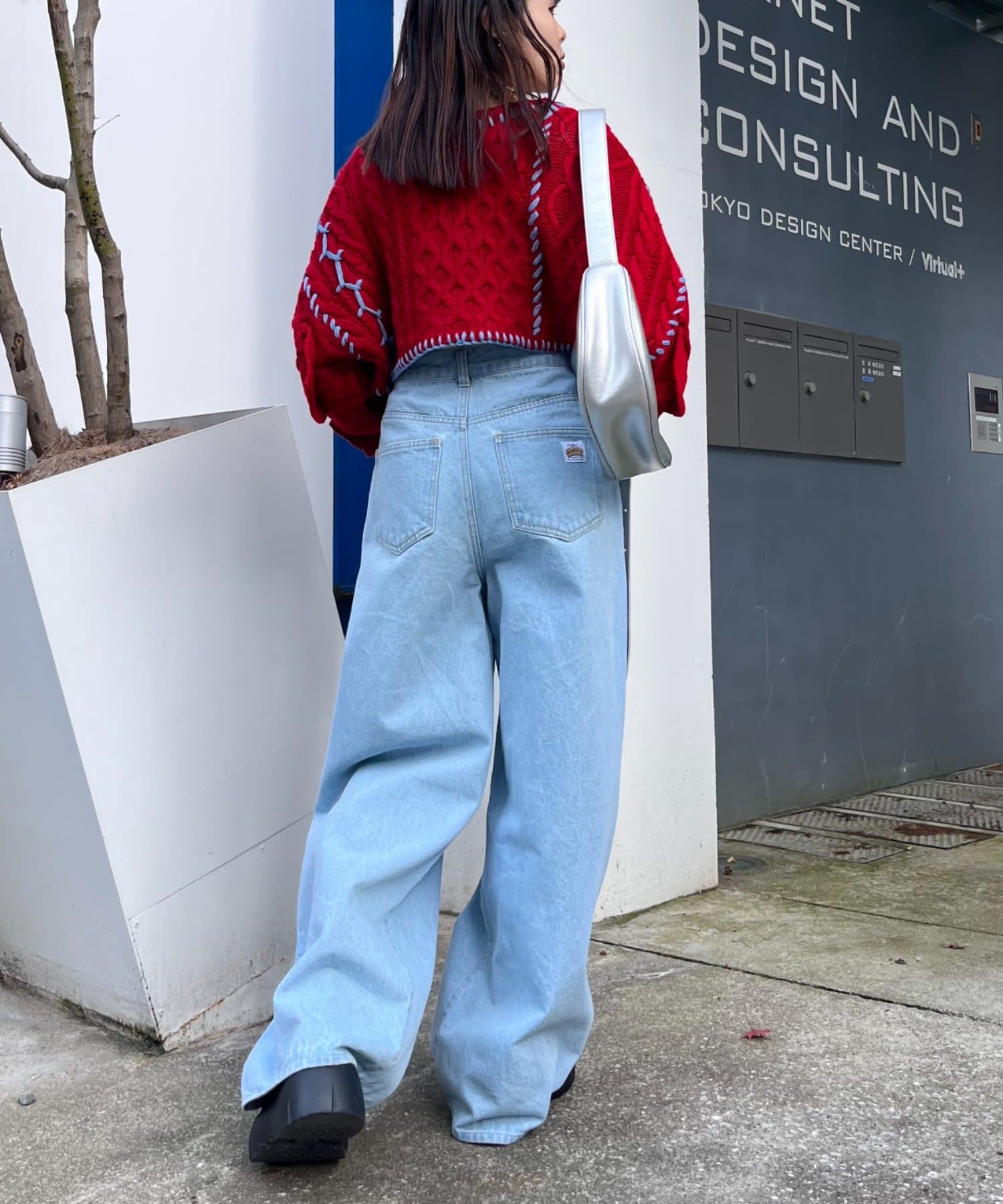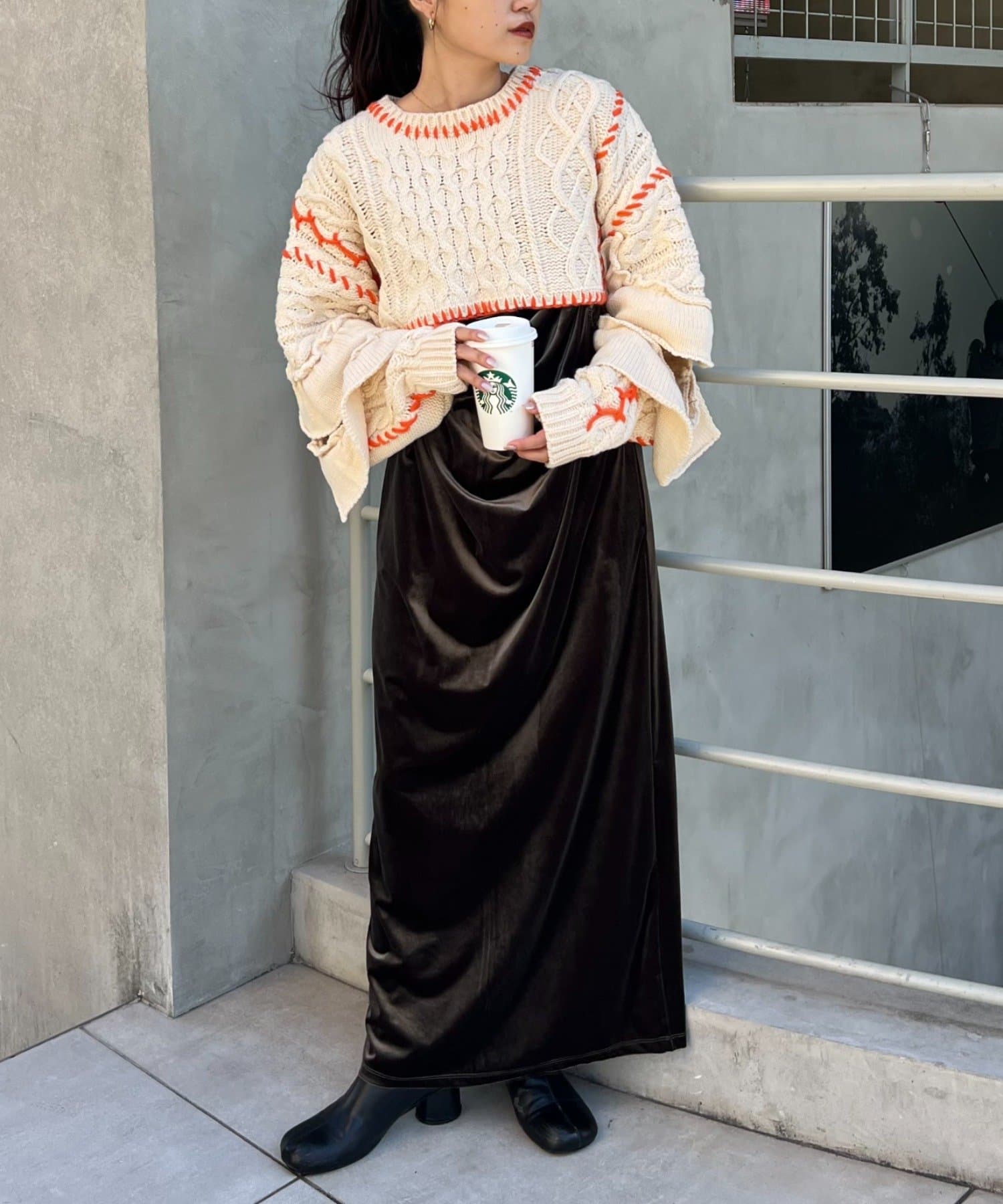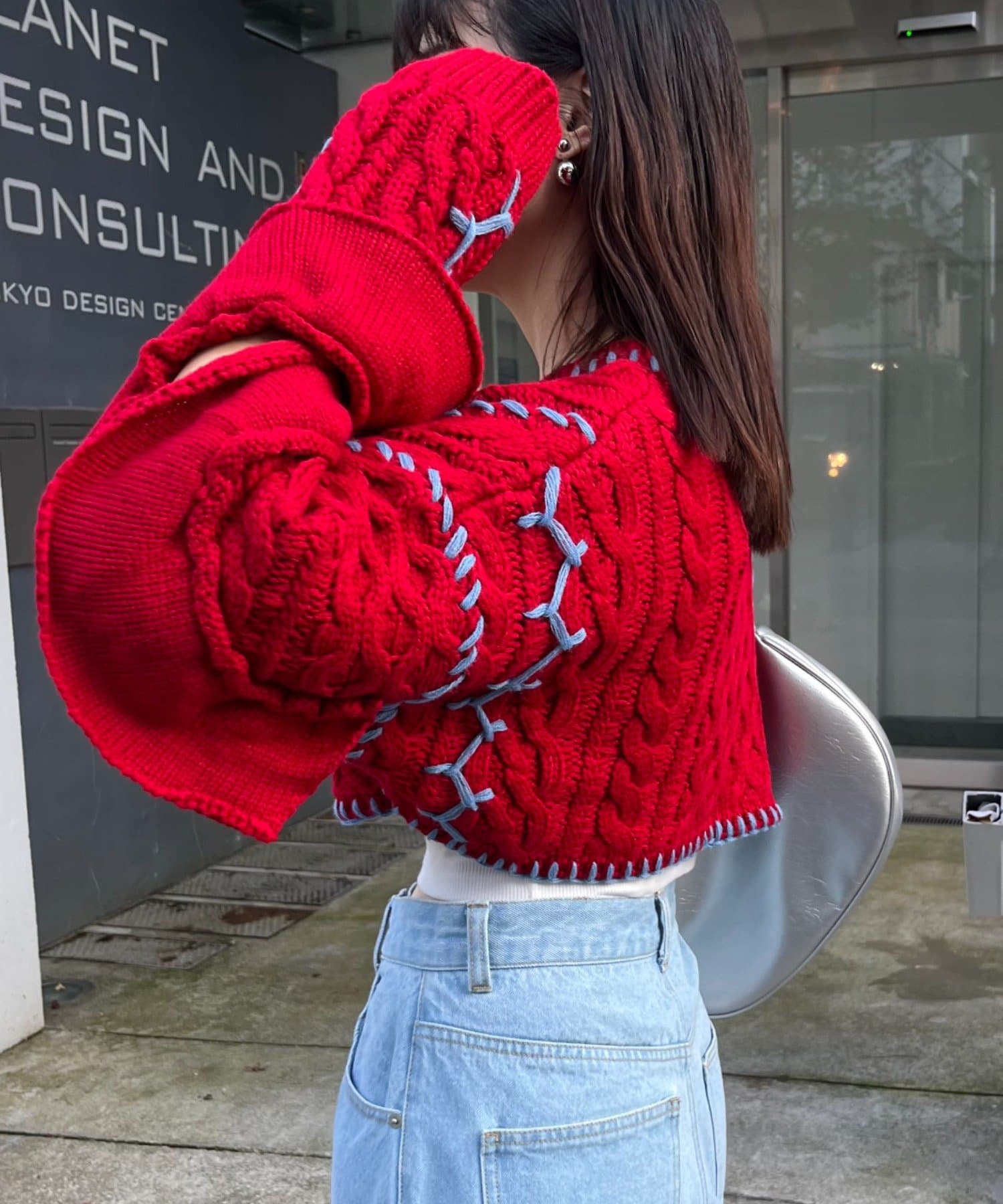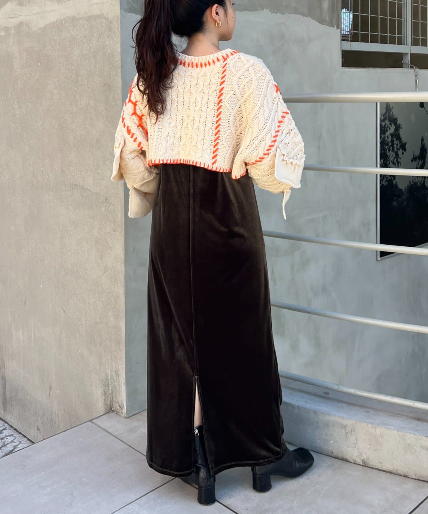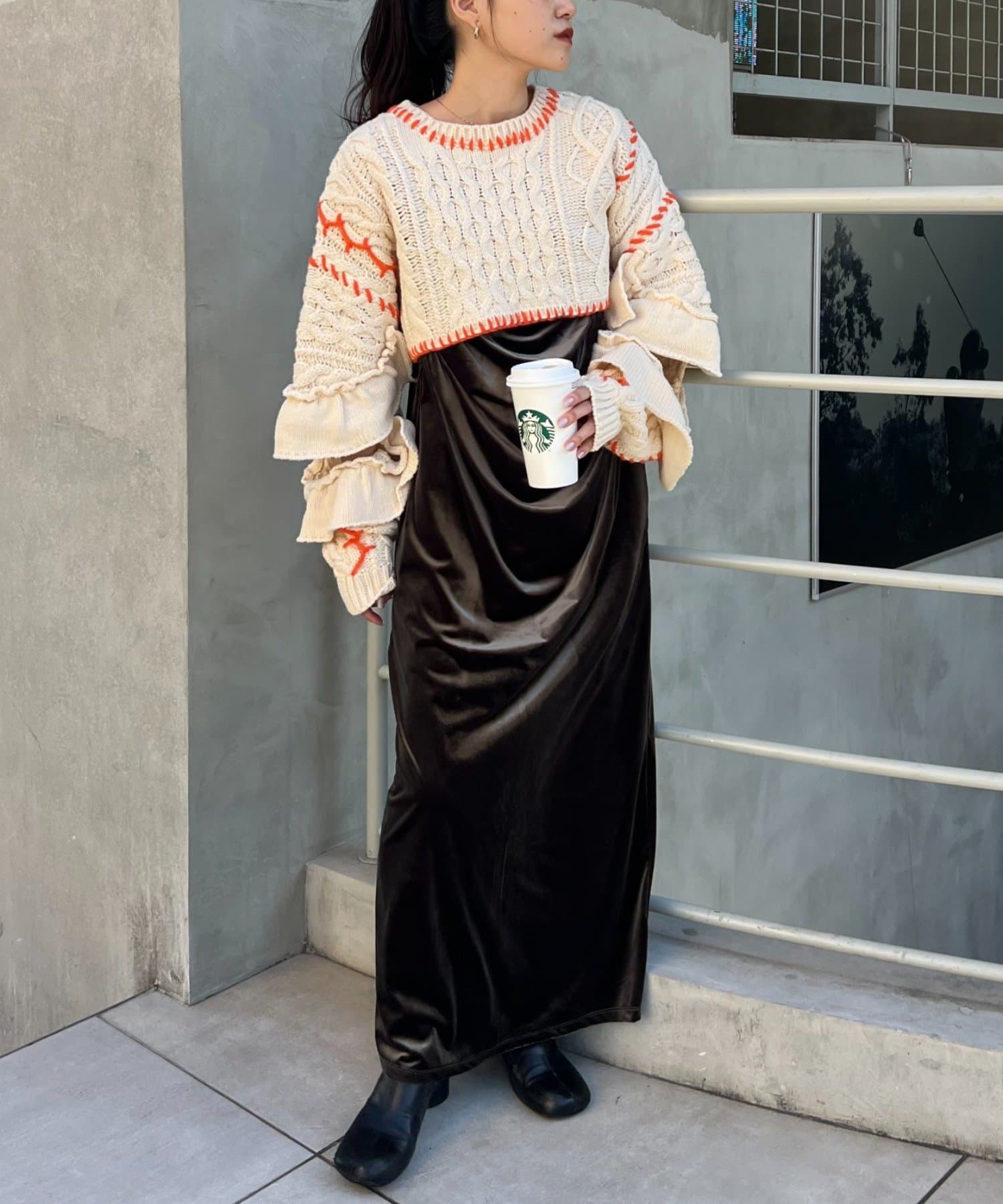 ショート丈のケーブルニットにフリルとハンドステッチを施したトレンドライクな1枚。