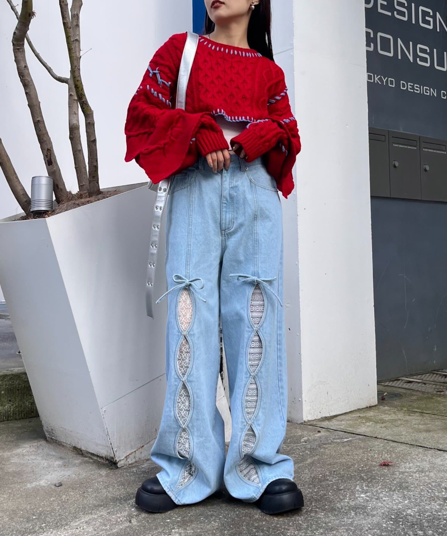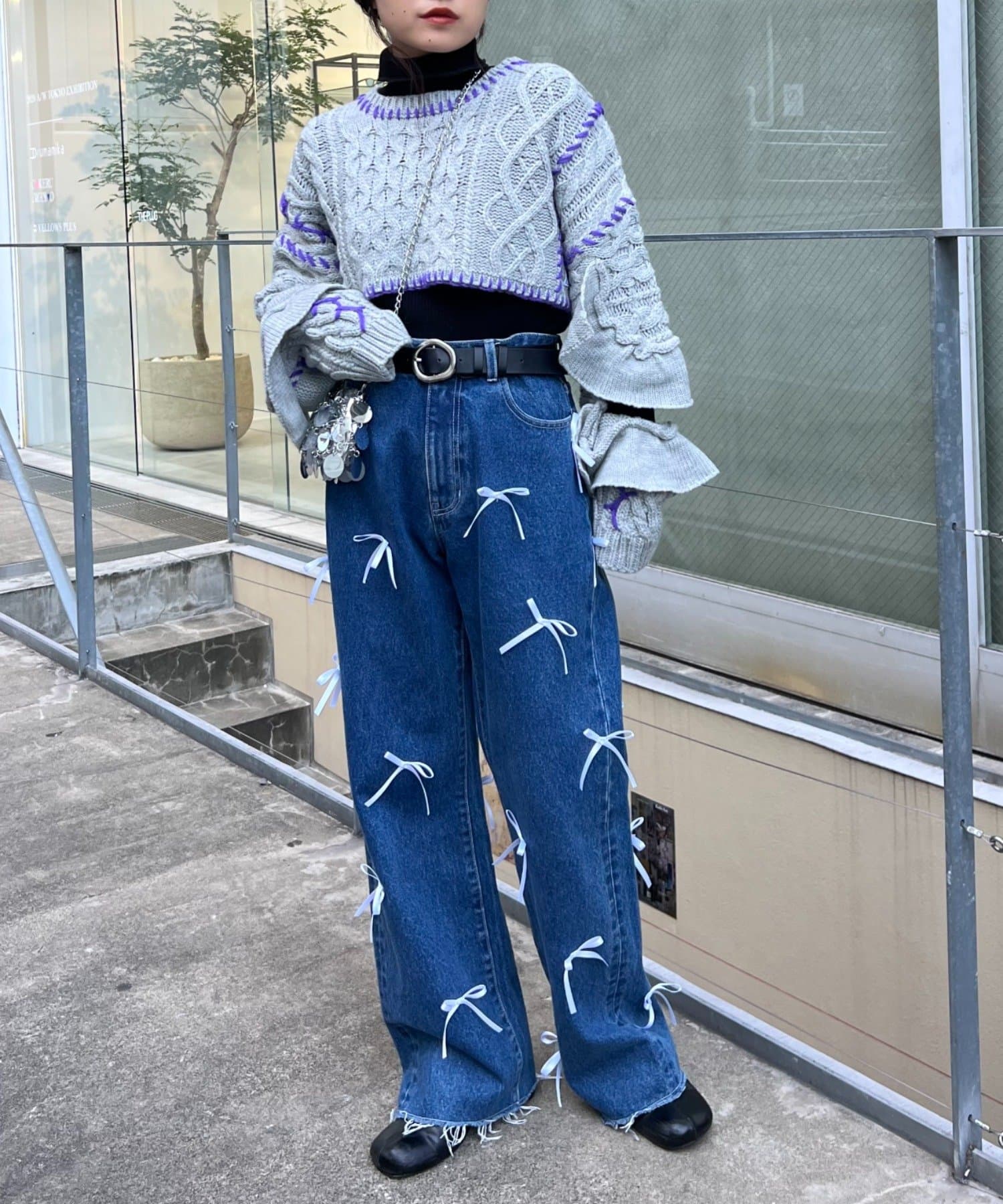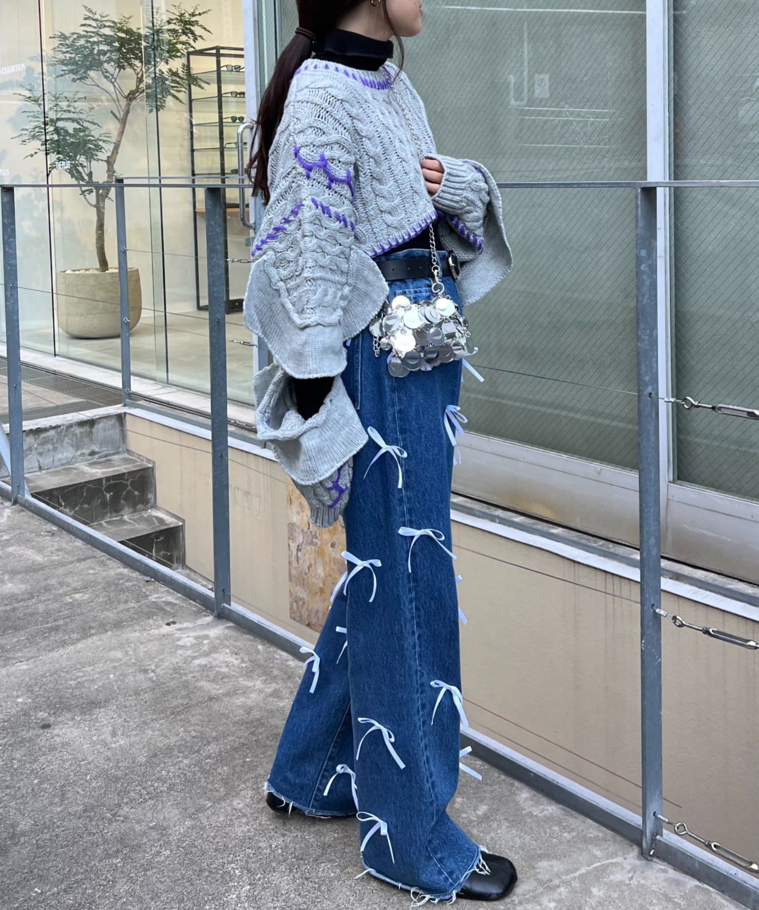 【HELLO.SANFRANCISCO】ハンドステッチカットフリルケーブルニット