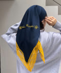 アクセントカラーの刺繍を贅沢に施したレーススカーフ。