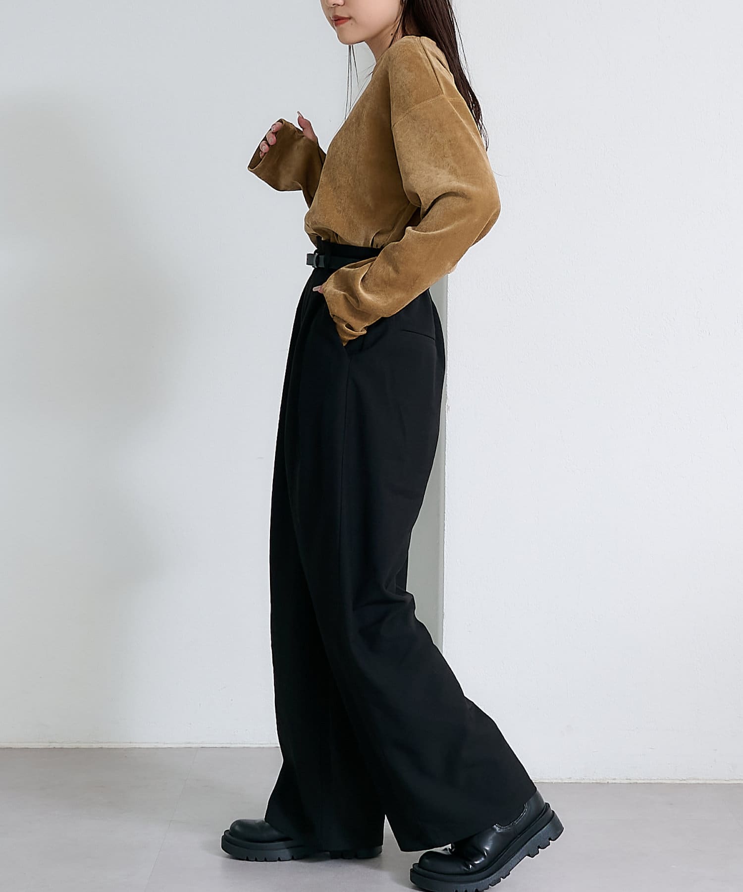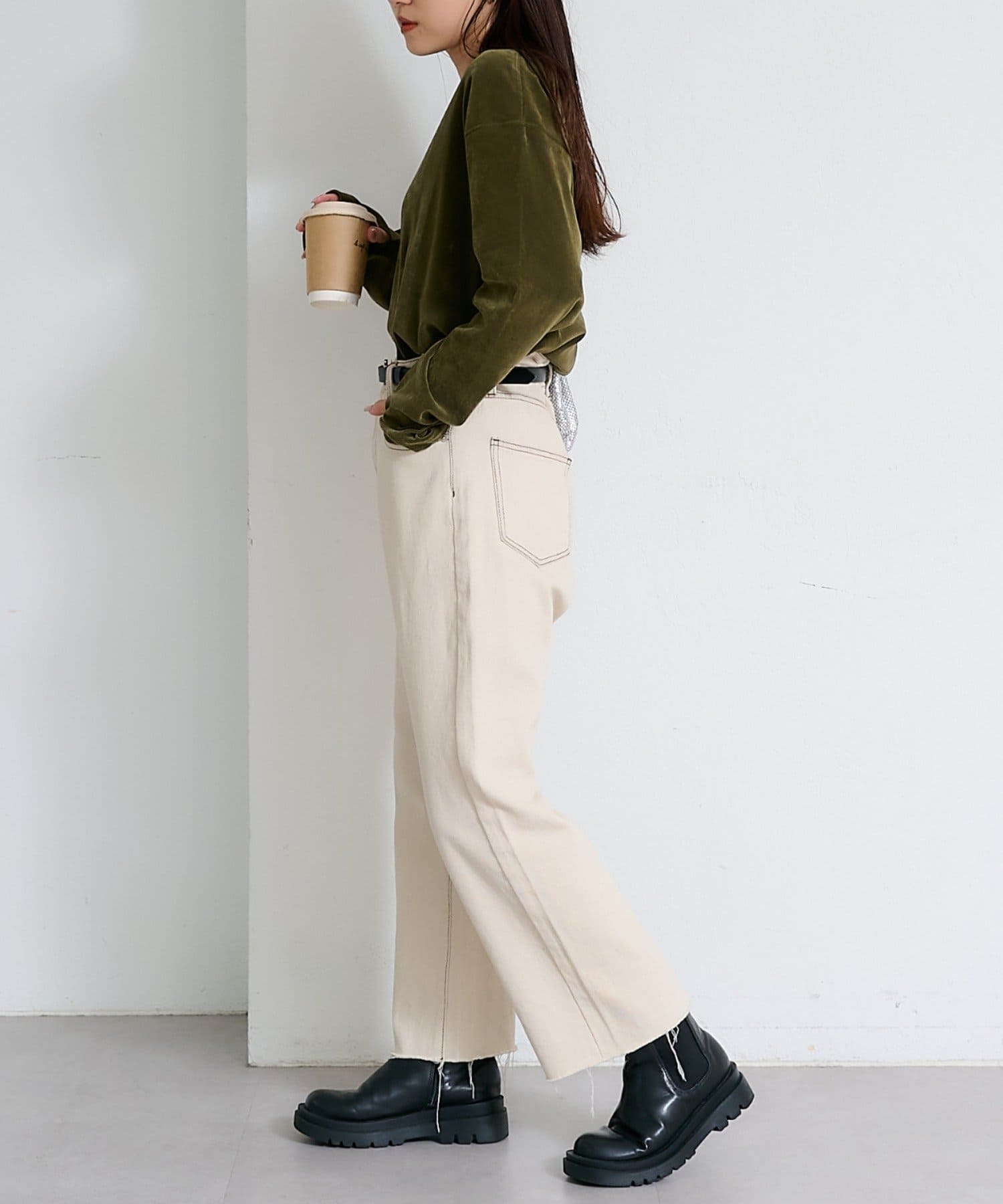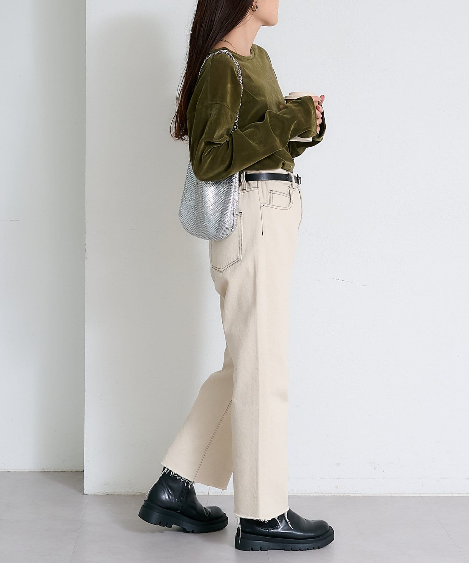 サイドにスリットが入っているので抜け感のある印象に。