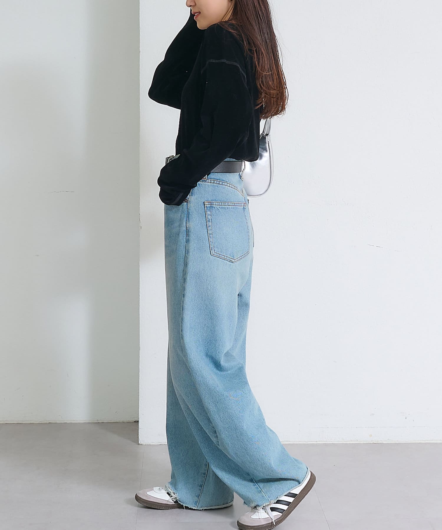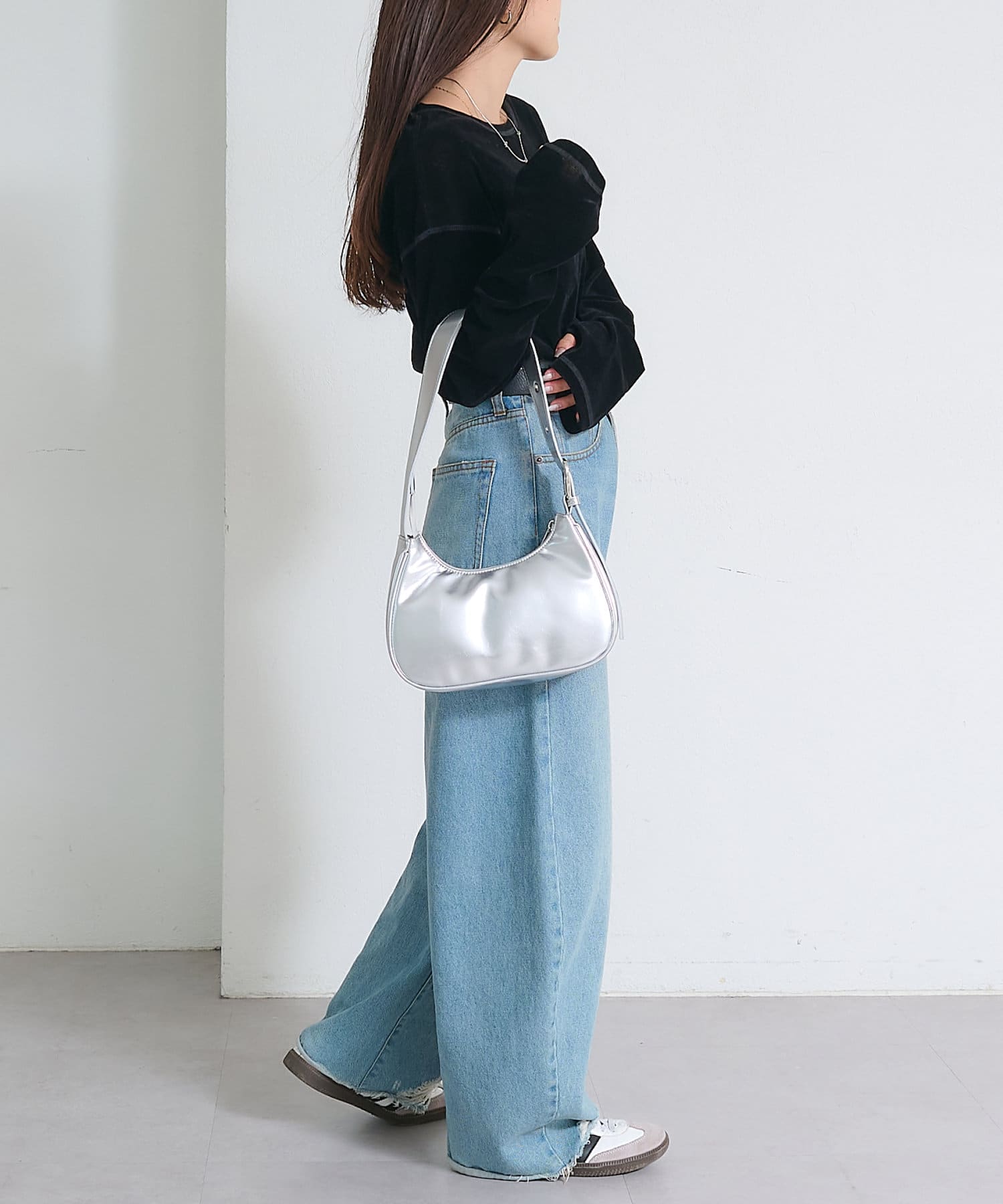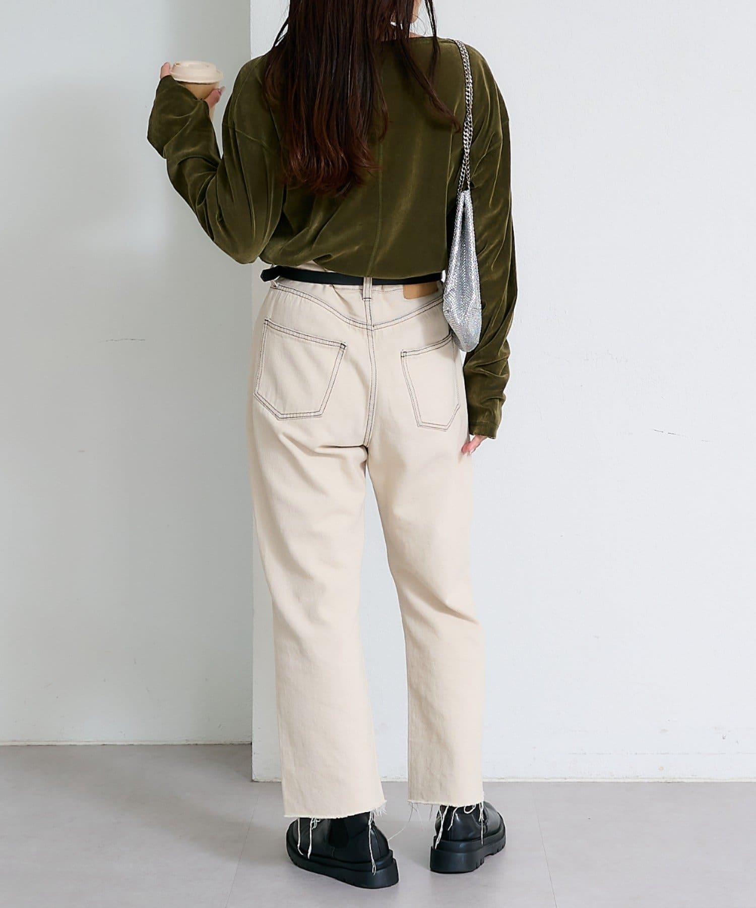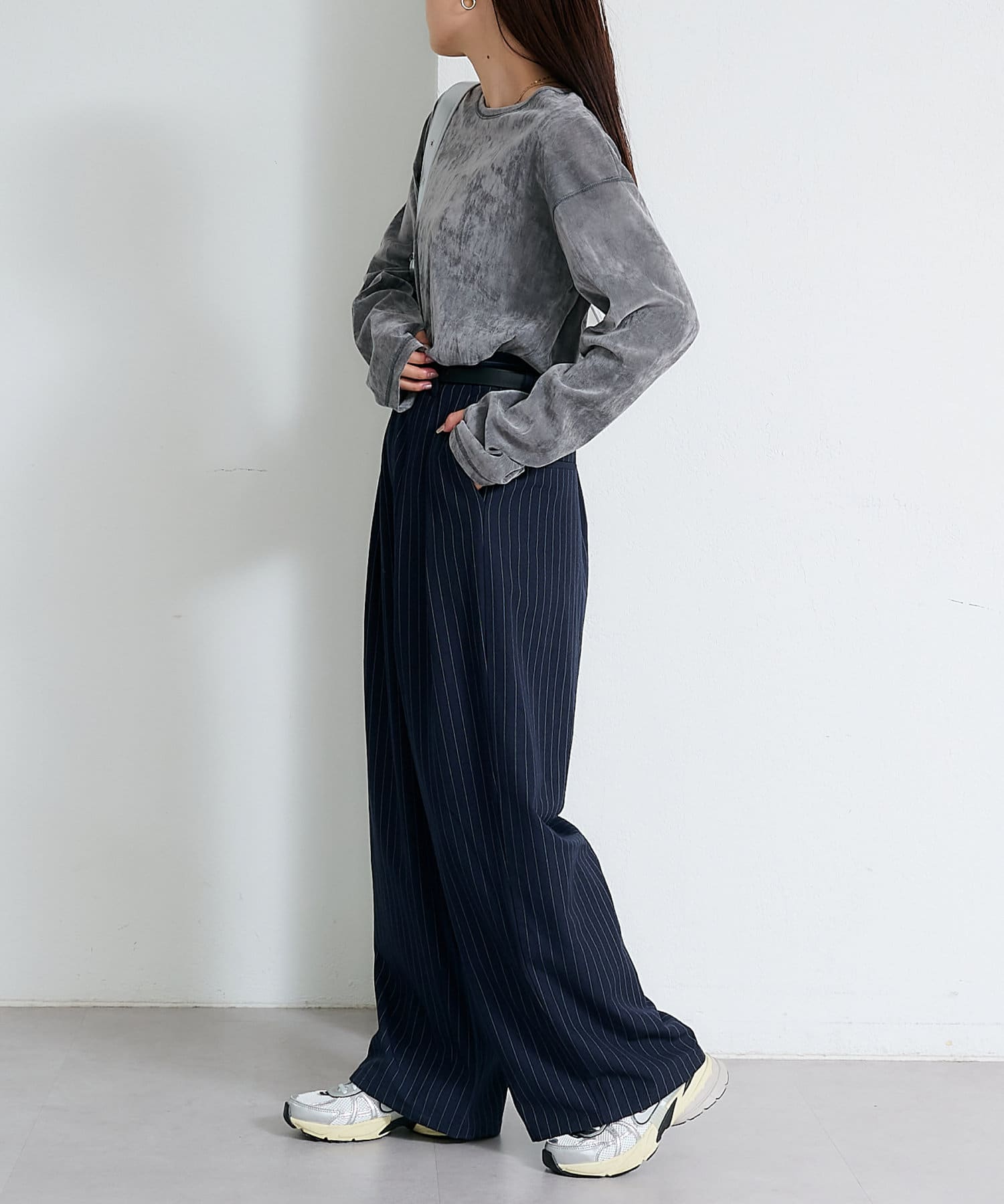 サイドにスリットが入っているので抜け感のある印象に。