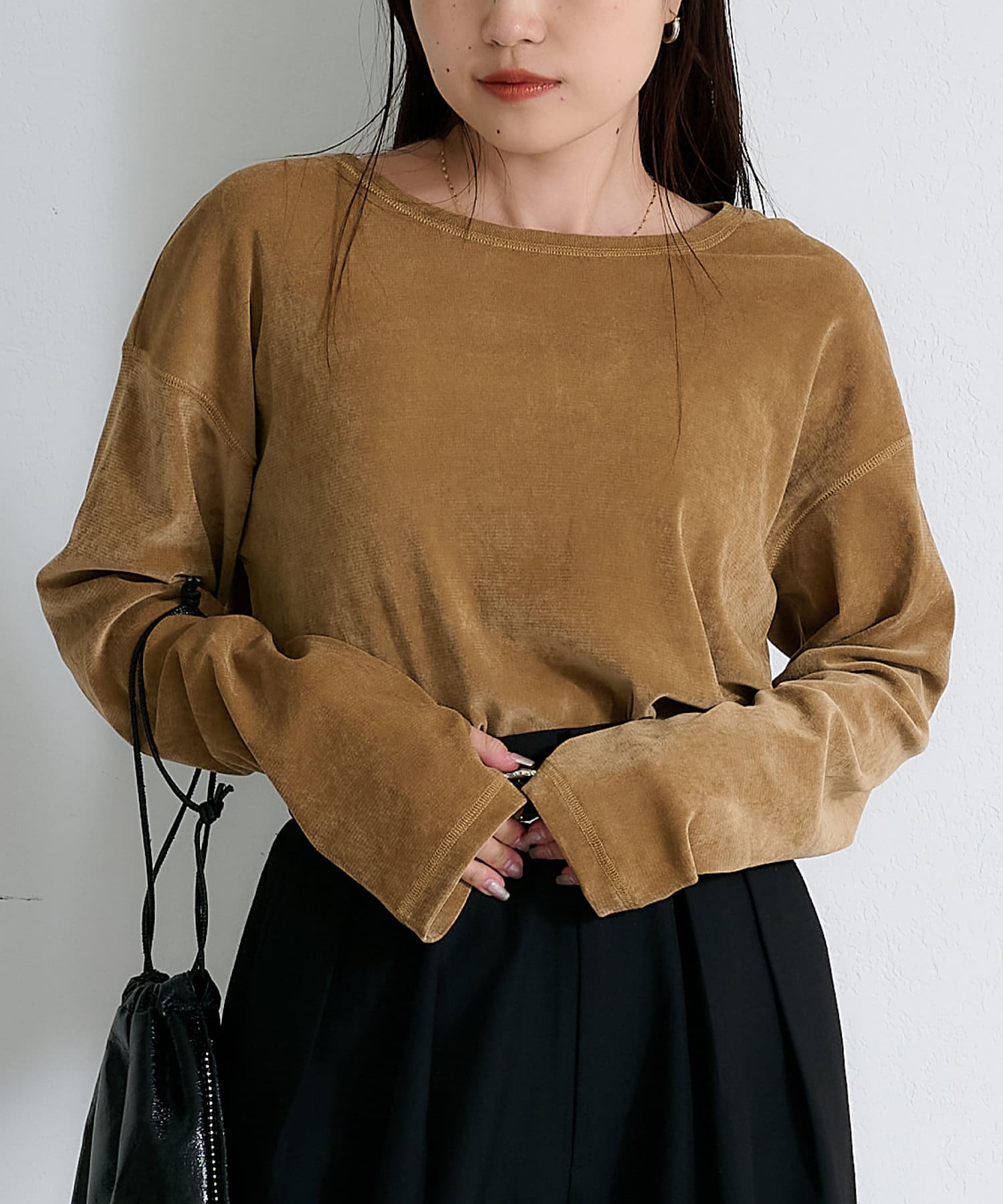 大人気のフロッキー加工のベロア見えトップスに新型が登場