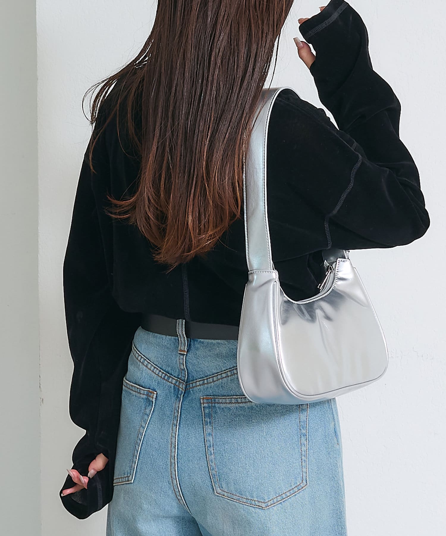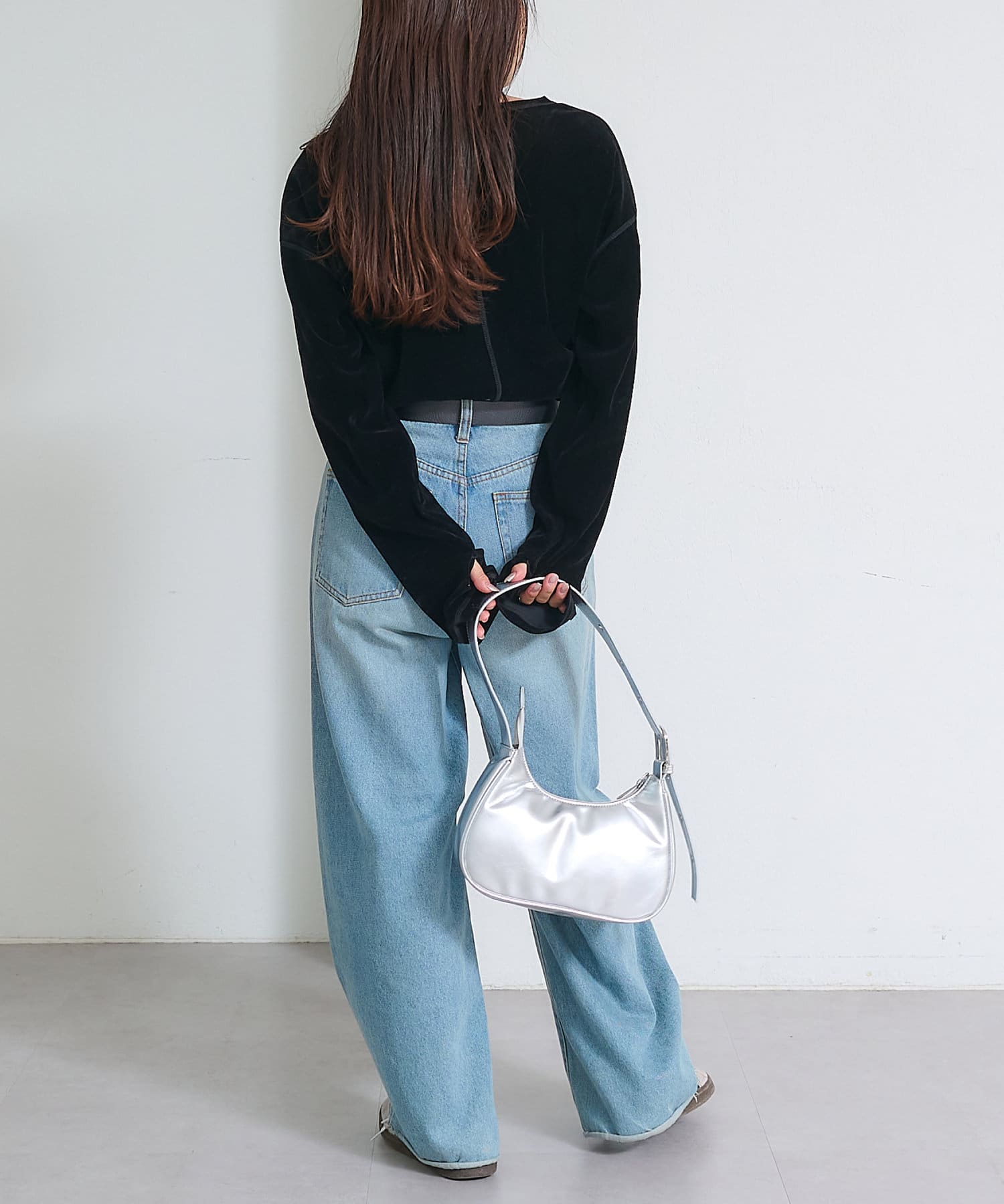 袖口には指穴に通して袖をクシュっとさせるのも◎