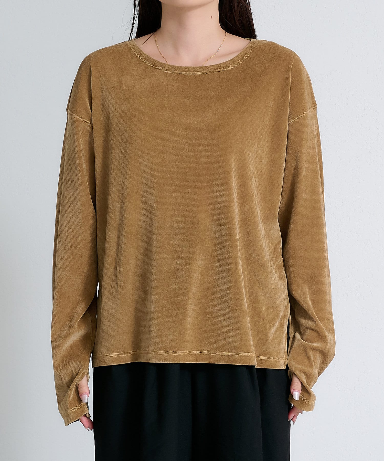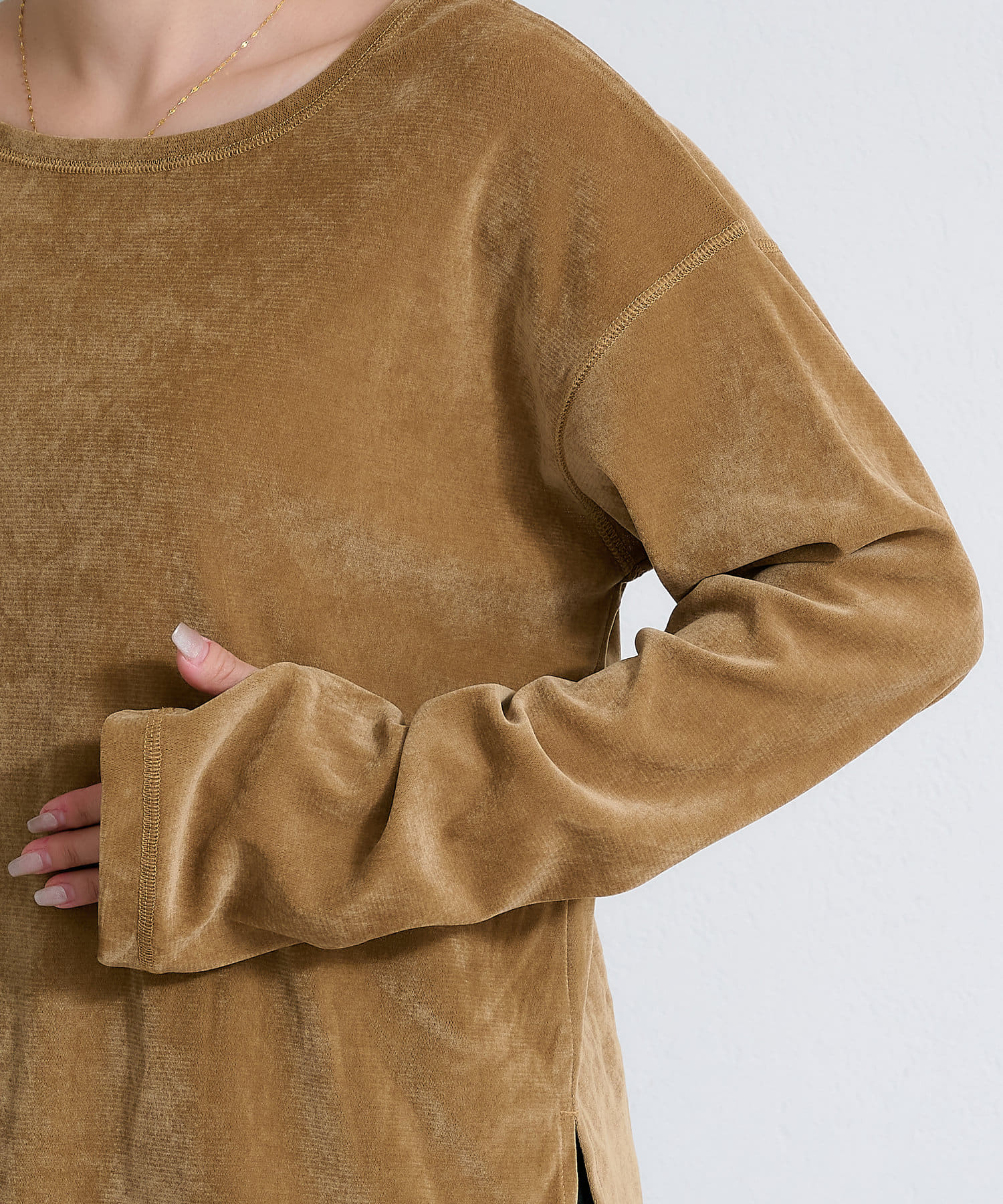 サイドスリットシアーフロッキーベロア見えトップス
