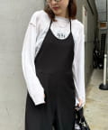 ショート丈のカーディガンを羽織ってもサマになるのでおすすめです。足元はサイドゴアブーツやローファーがマッチします◎