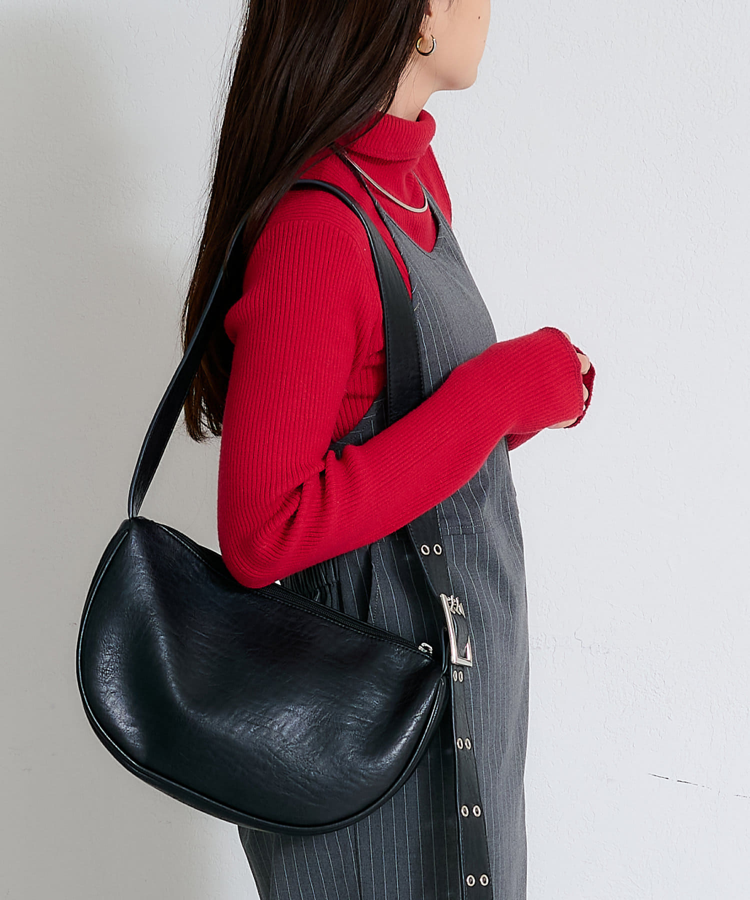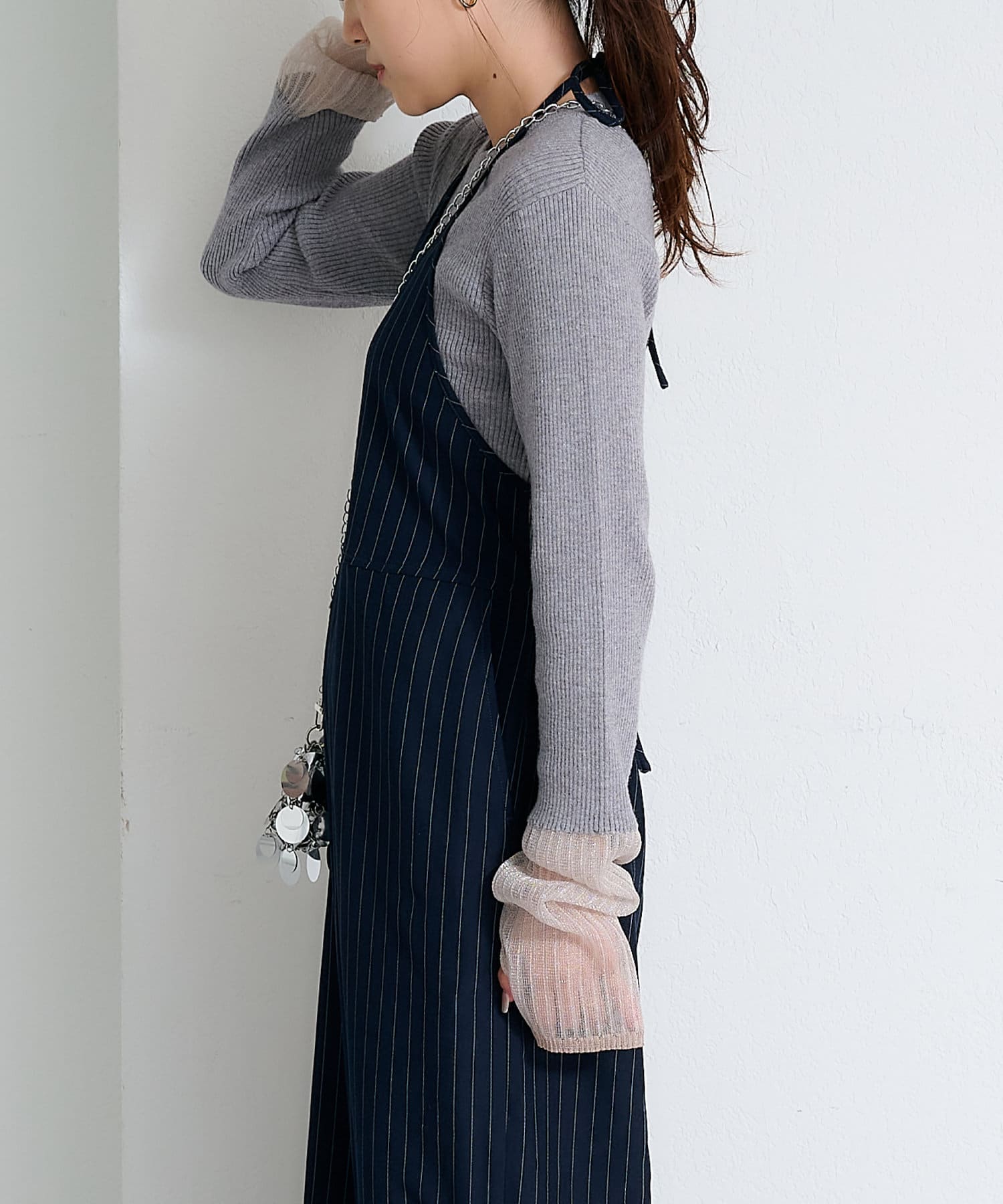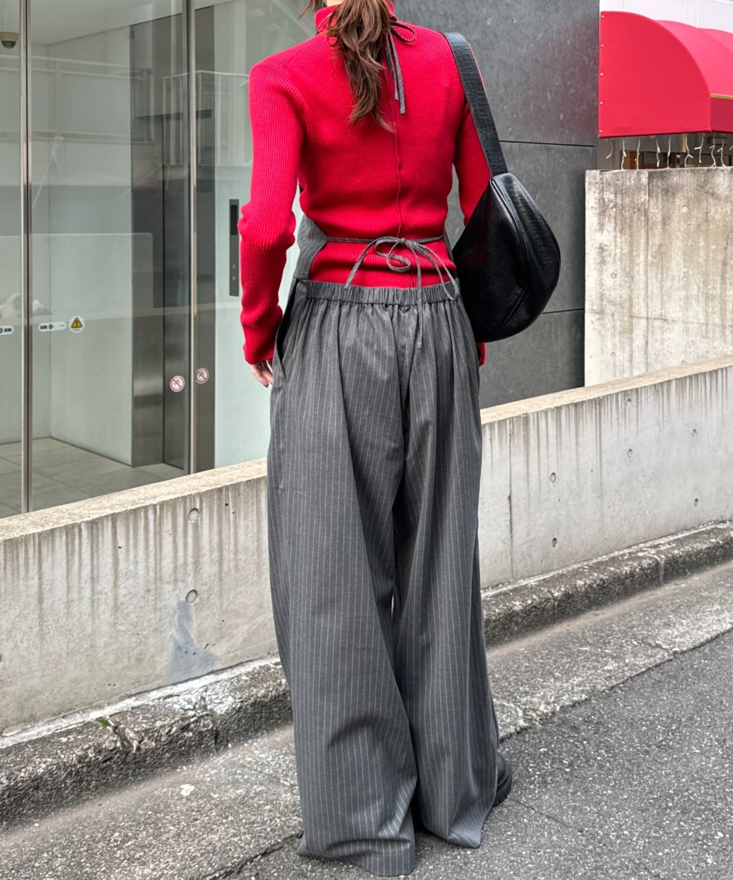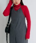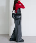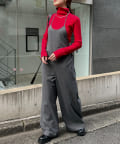 すっきりとしたシアートップスやハイネックニットを合わせるとバランス良く仕上がります。