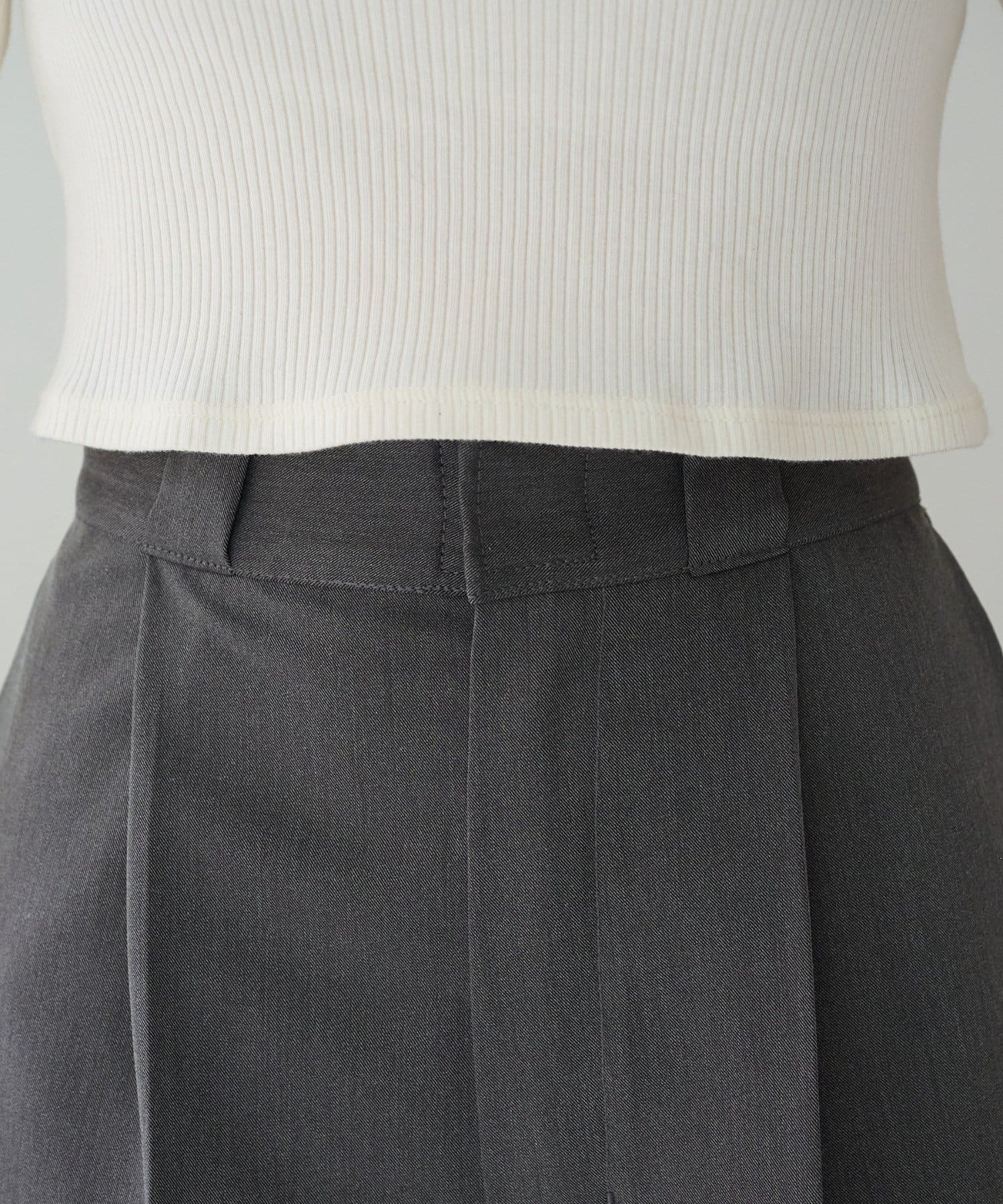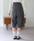 ウエストにはベルトループとタックで、バミューダパンツながらきちんと感のある印象に。